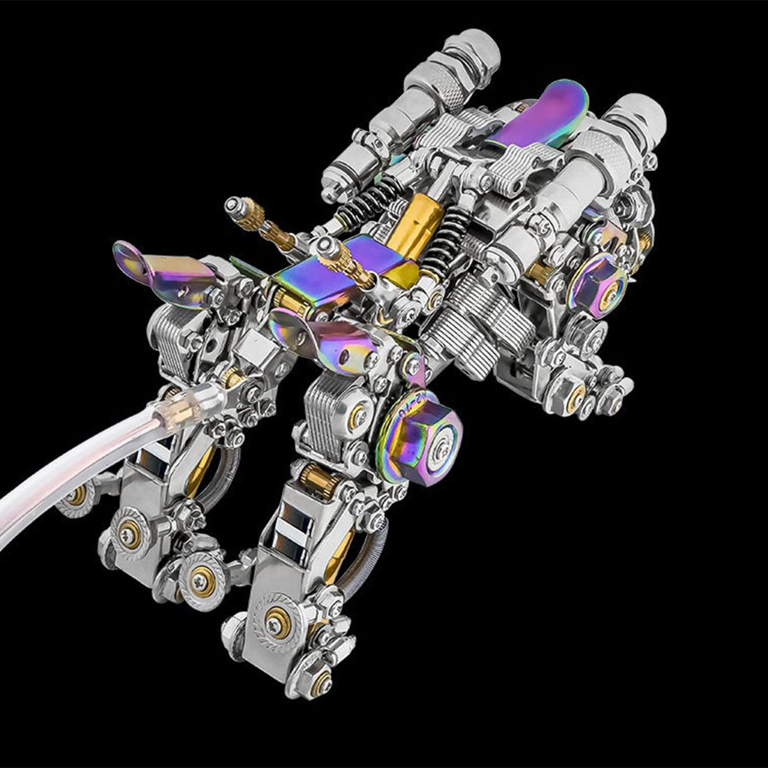 .Colored-Plating Metal And Red Blue Light: The mechanical tiger is made of many colored-plating metal parts for chromatic color and equipped with blued and red light bulbs, which look like two armored assault cannon barrels mounted on the shoulders. The upturned tail indicates that it is ready to attack the enemy at any time.