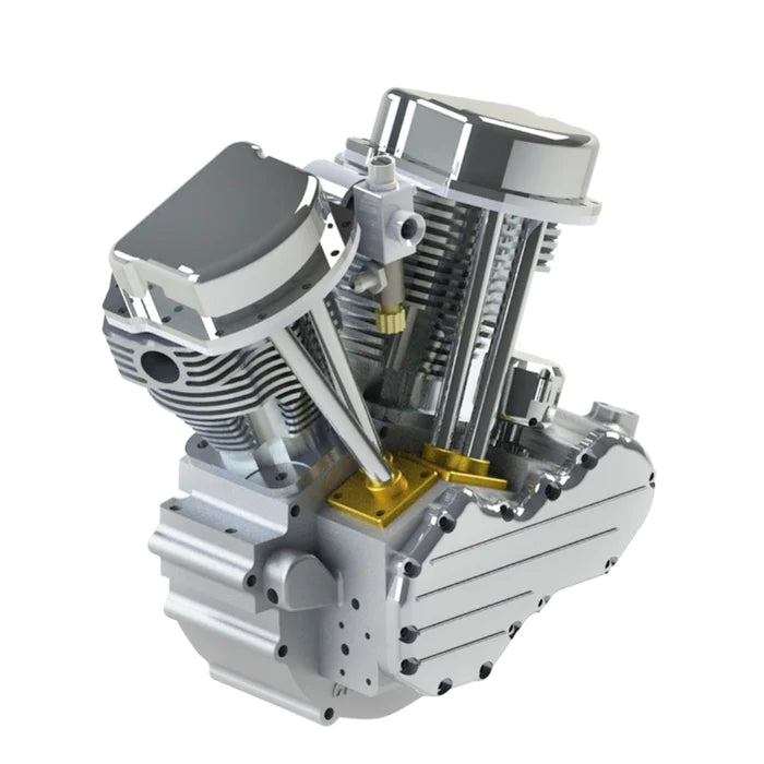 - In terms of fine machining, the cylinder block is made of aluminum alloy with CNC precision machining, and the two copper exhaust elbows are unique. The anodized finish gives the block a polished surface, while the chrome plating makes the rocker covers even more eye-catching. The engine is both a visually pleasing work of art and will remain polished for a long time.