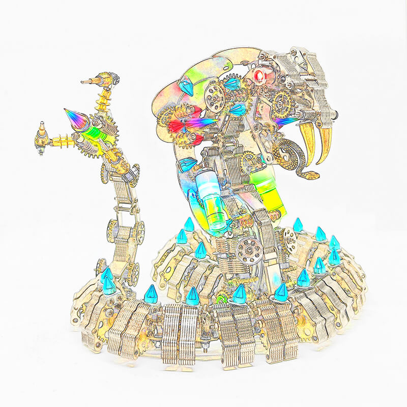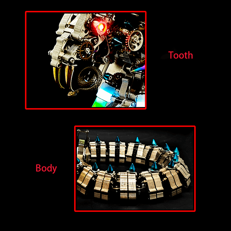 - Accurate restoration: We have studied every detail of the King Cobra in depth to ensure a high degree of model restoration. From its classic shape to its complex structure, every part has been precisely crafted so that you can experience the unique charm of the King Cobra for yourself. We have also added other elements such as its venom, teeth, and tail design, perfectly combining the creature with metal art.