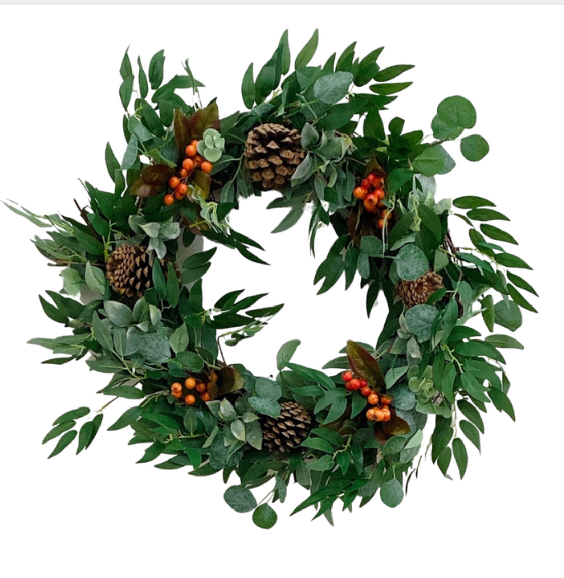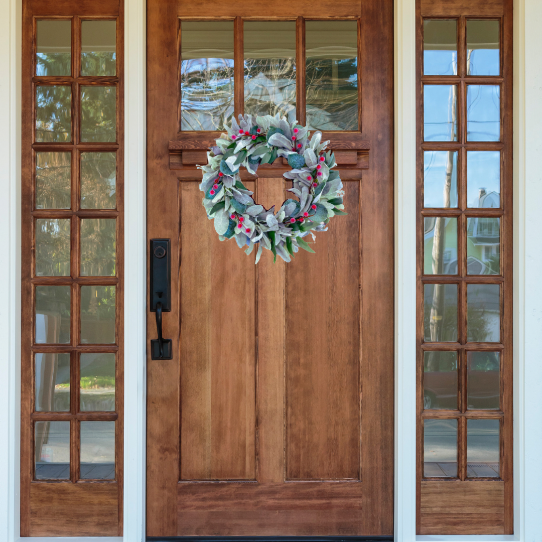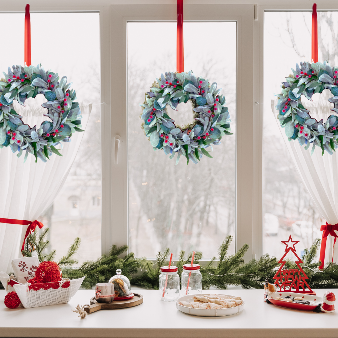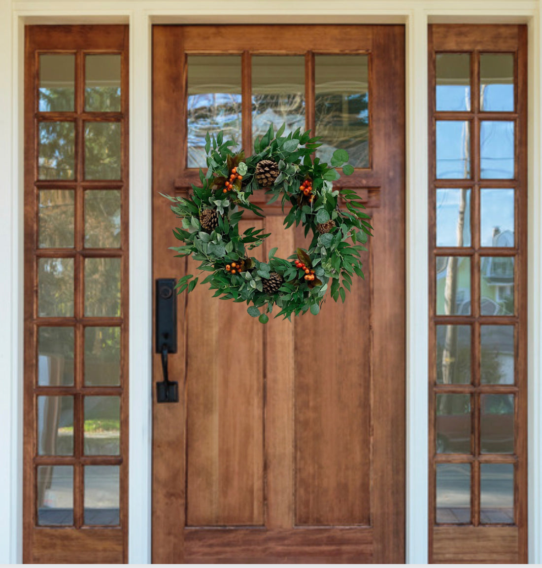 Christmas Mini Cabinet Wreaths with Ribbon, Mini Cedar Cabinet Wreaths, Cabinet Wreath with Buffalo Plaid Bow, Farmhouse Christmas Decor
