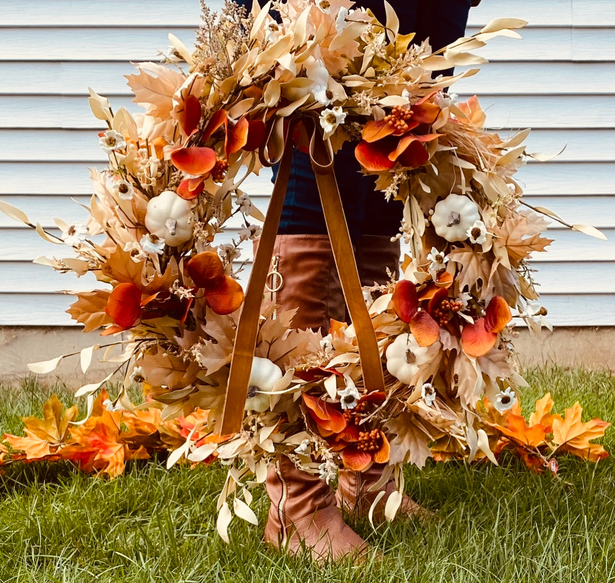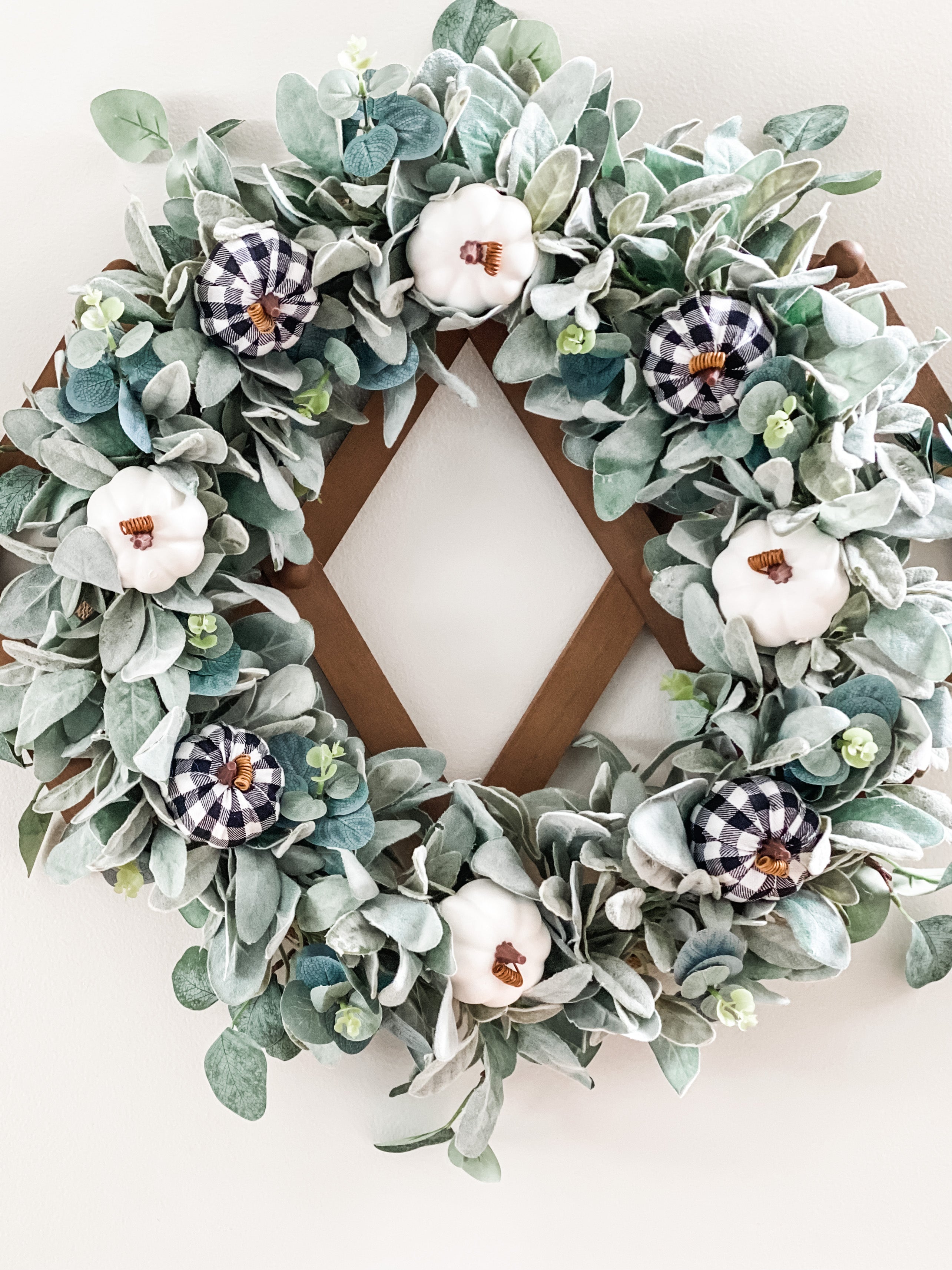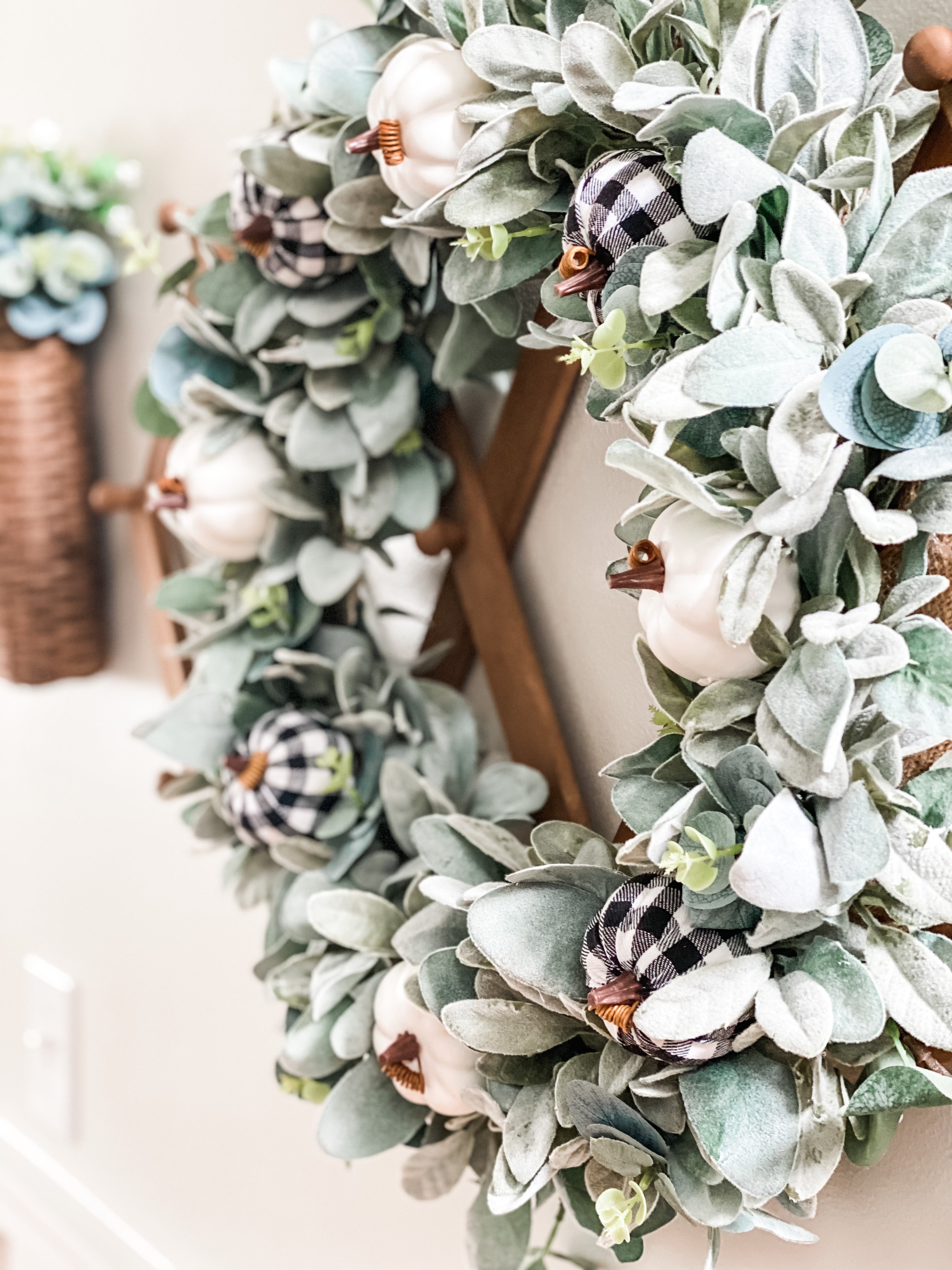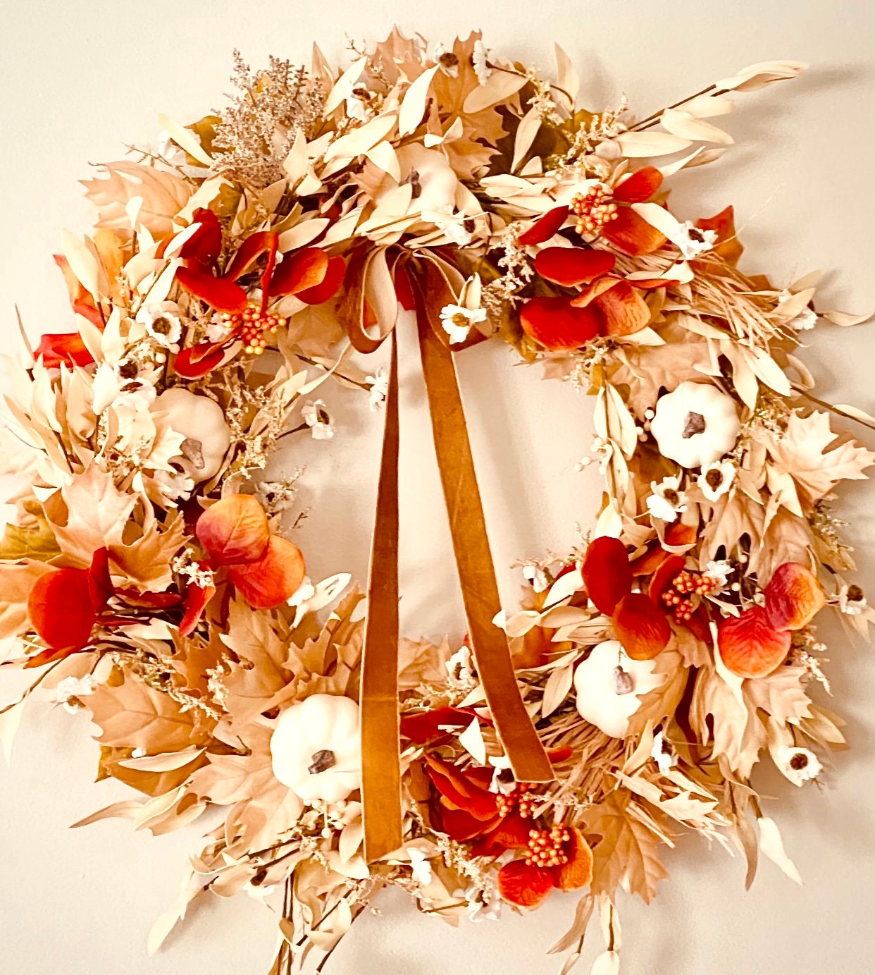 Neutral Fall Harvest Door Wreath with Pumpkins, Fall Front Door Wreath, Farmhouse Pumpkin Door Hanger, Autumn Porch Decor, Fall Mantle Decor