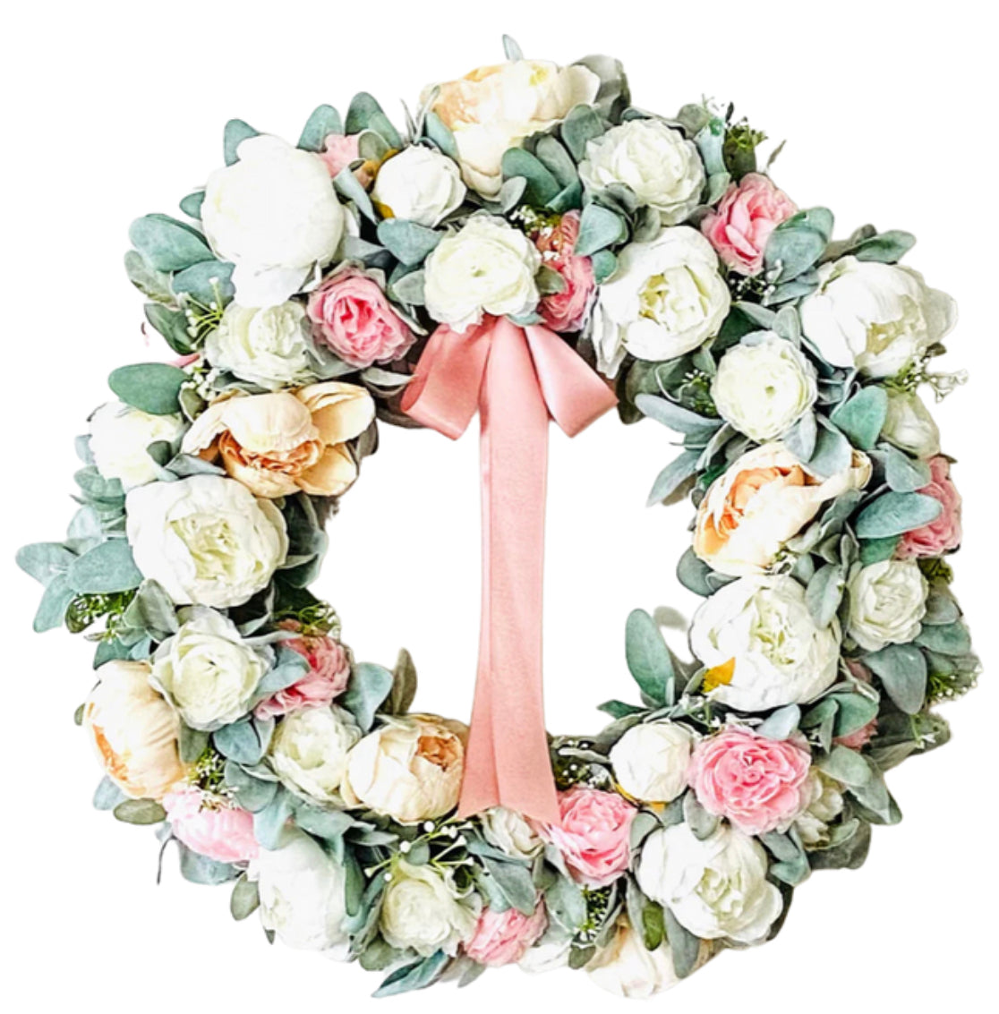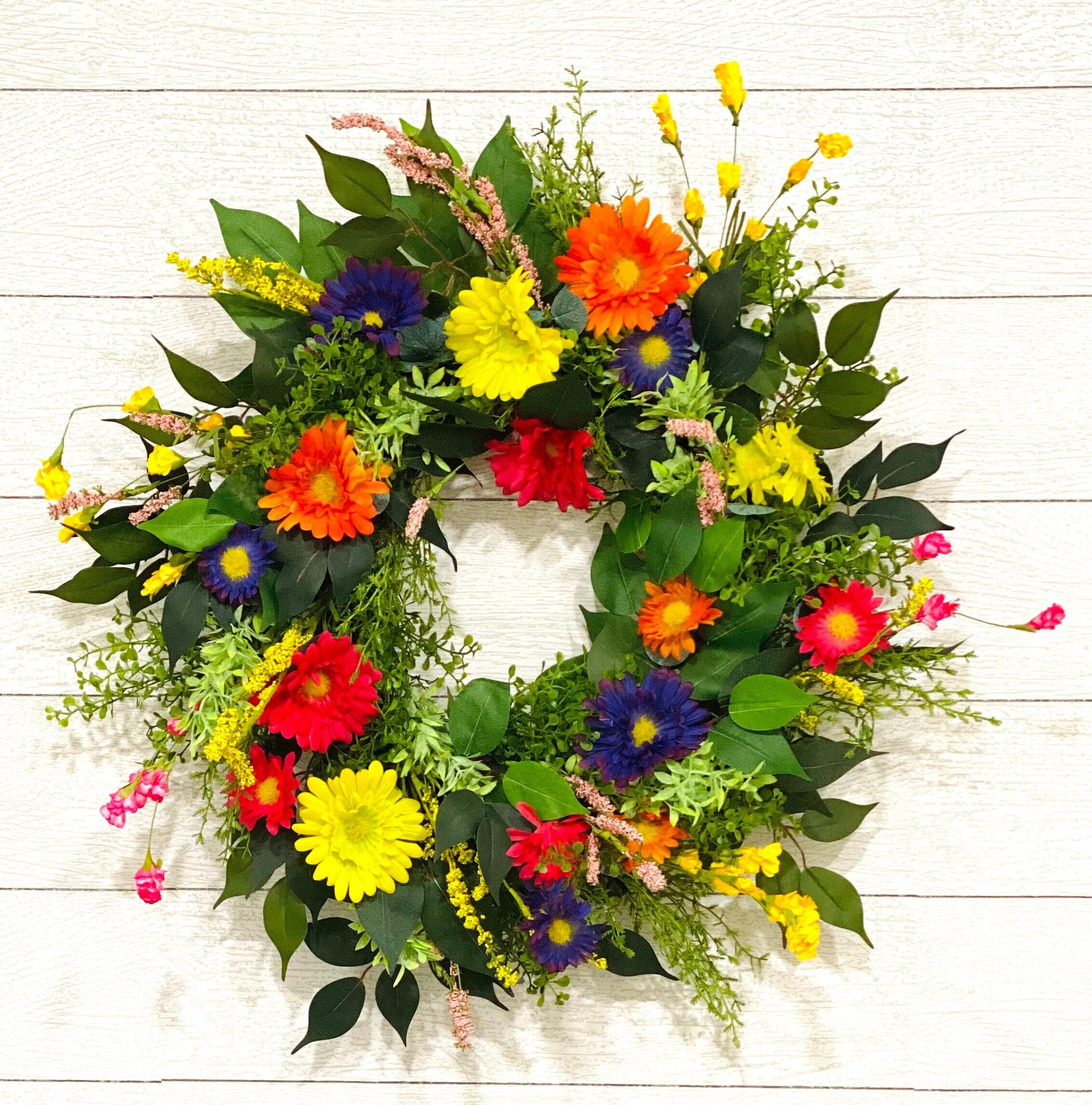 Colorful Spring Wildflower Front Door Wreath, Pink and Yellow Daisy Summer Wreath, Country Cottage Wreath, Unique Gift for Mom