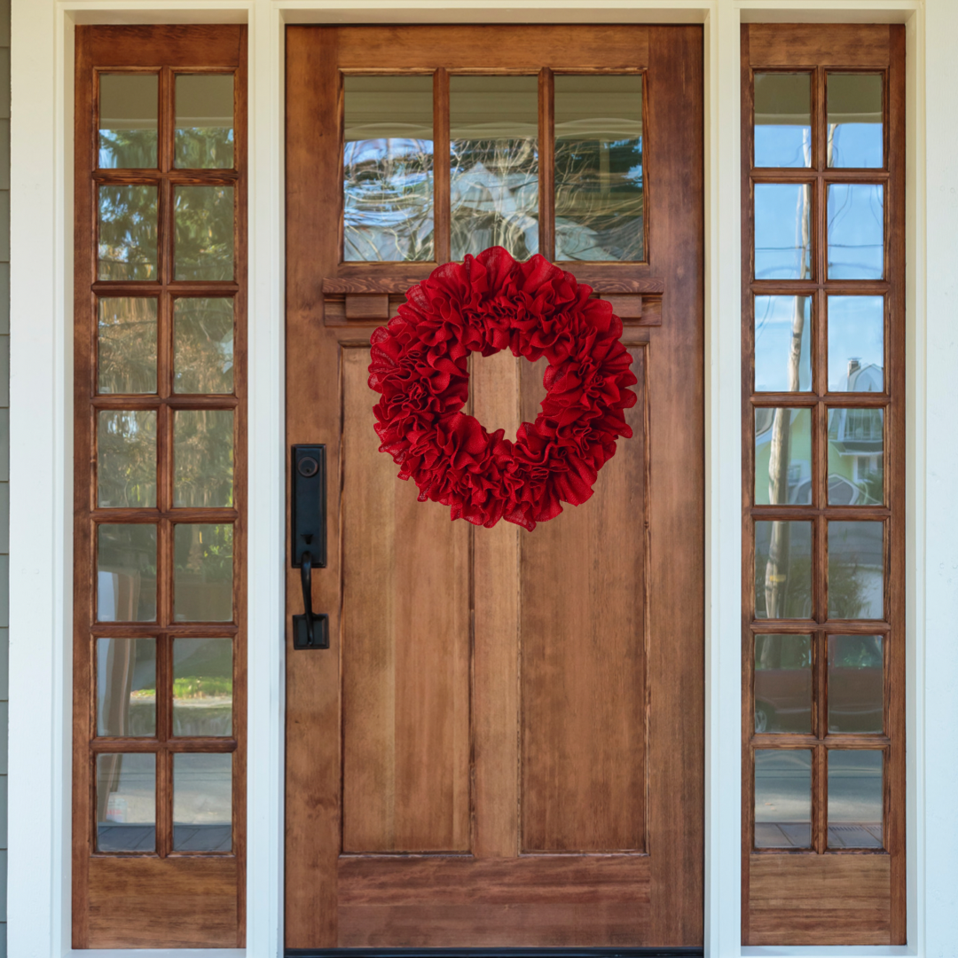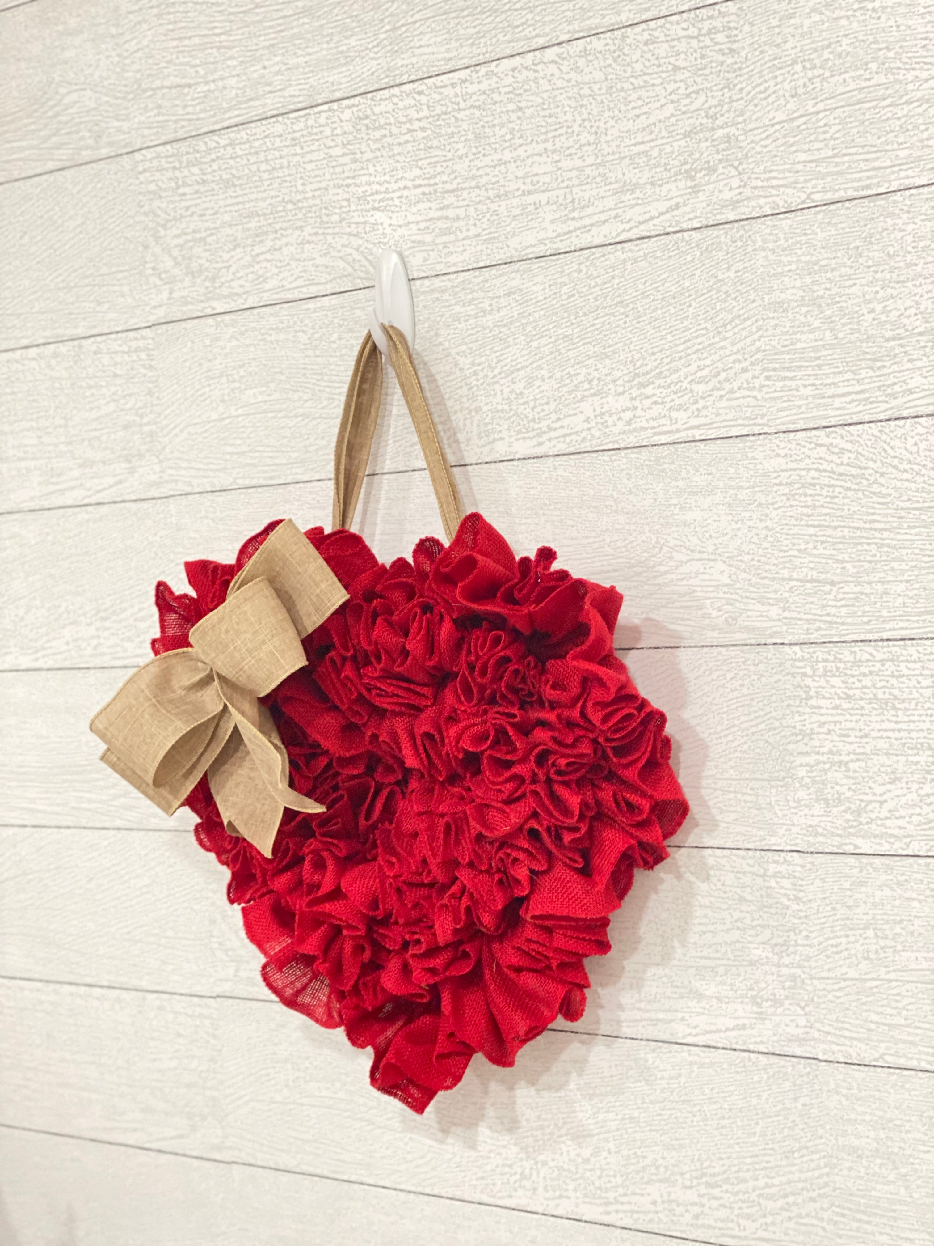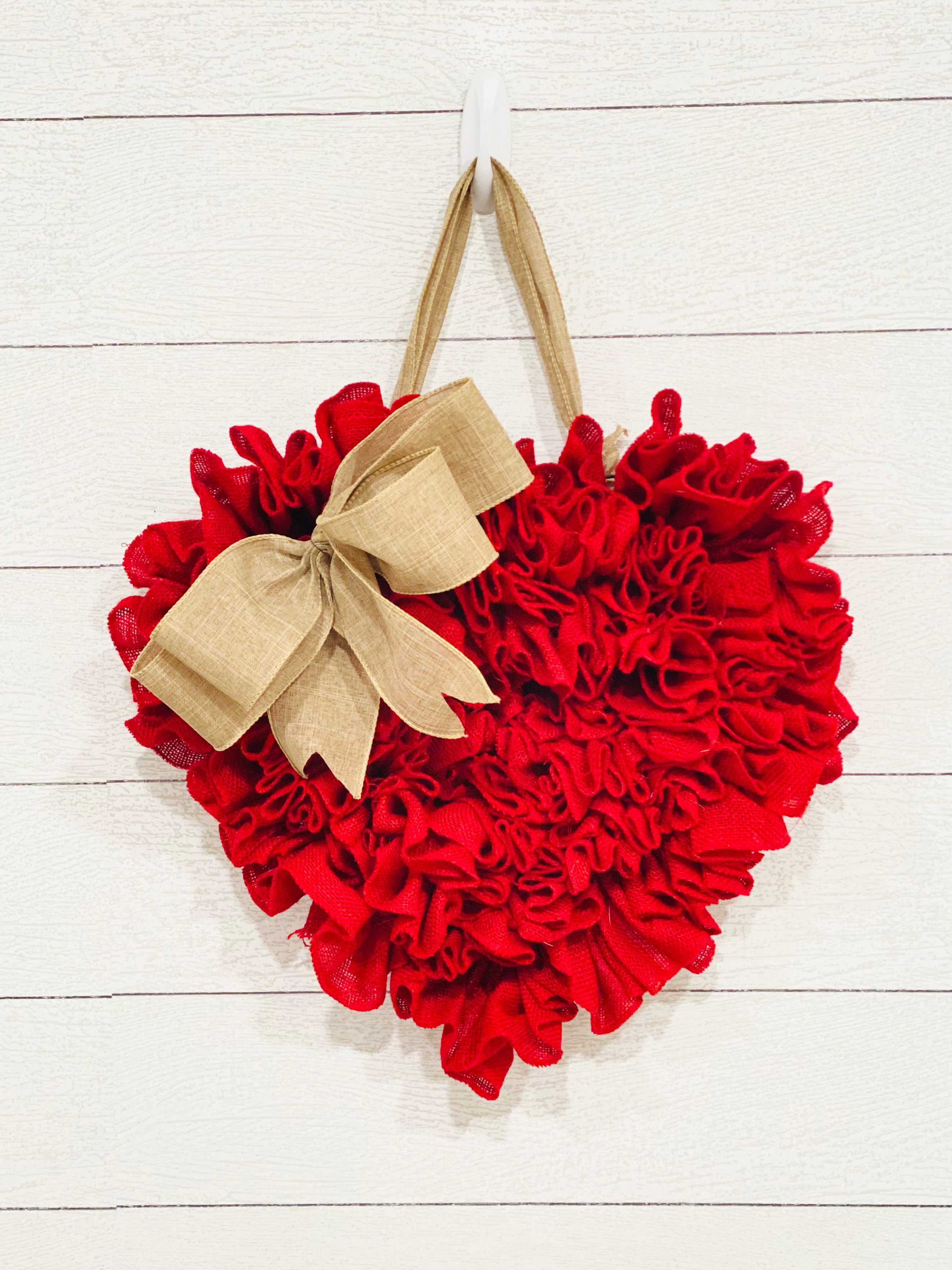 Valentines Wreath, Burlap Heart Wreath, Valentine Door Decor, Front Door Decor, Red Burlap Heart Wreath, Wreath with Burlap Bow