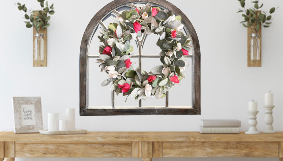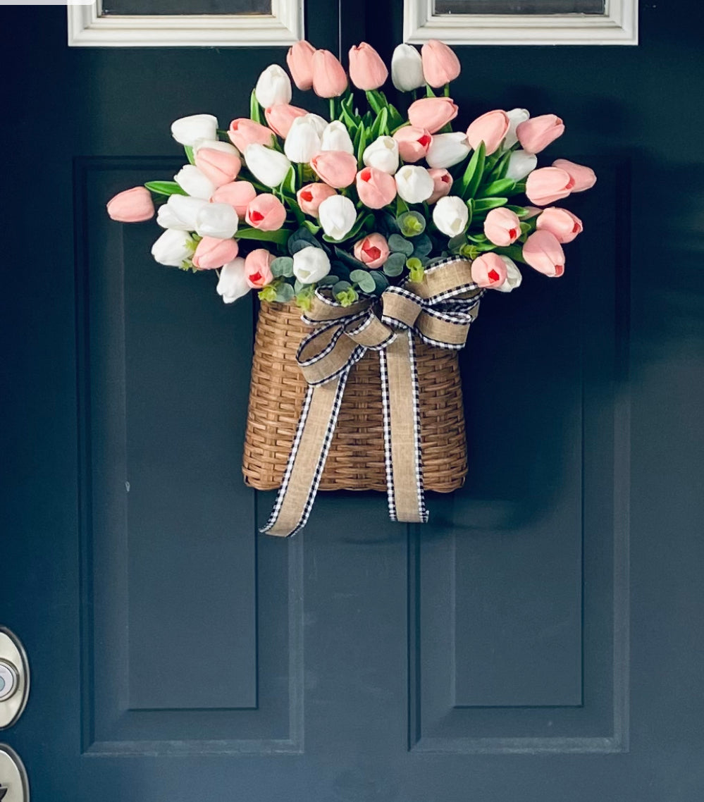 Tulip Door Basket, Summer and Spring Door Hanger, Valentines Day Wall Decor, Farmhouse Tulip Wreath, French Country, Unique Gift for Mom