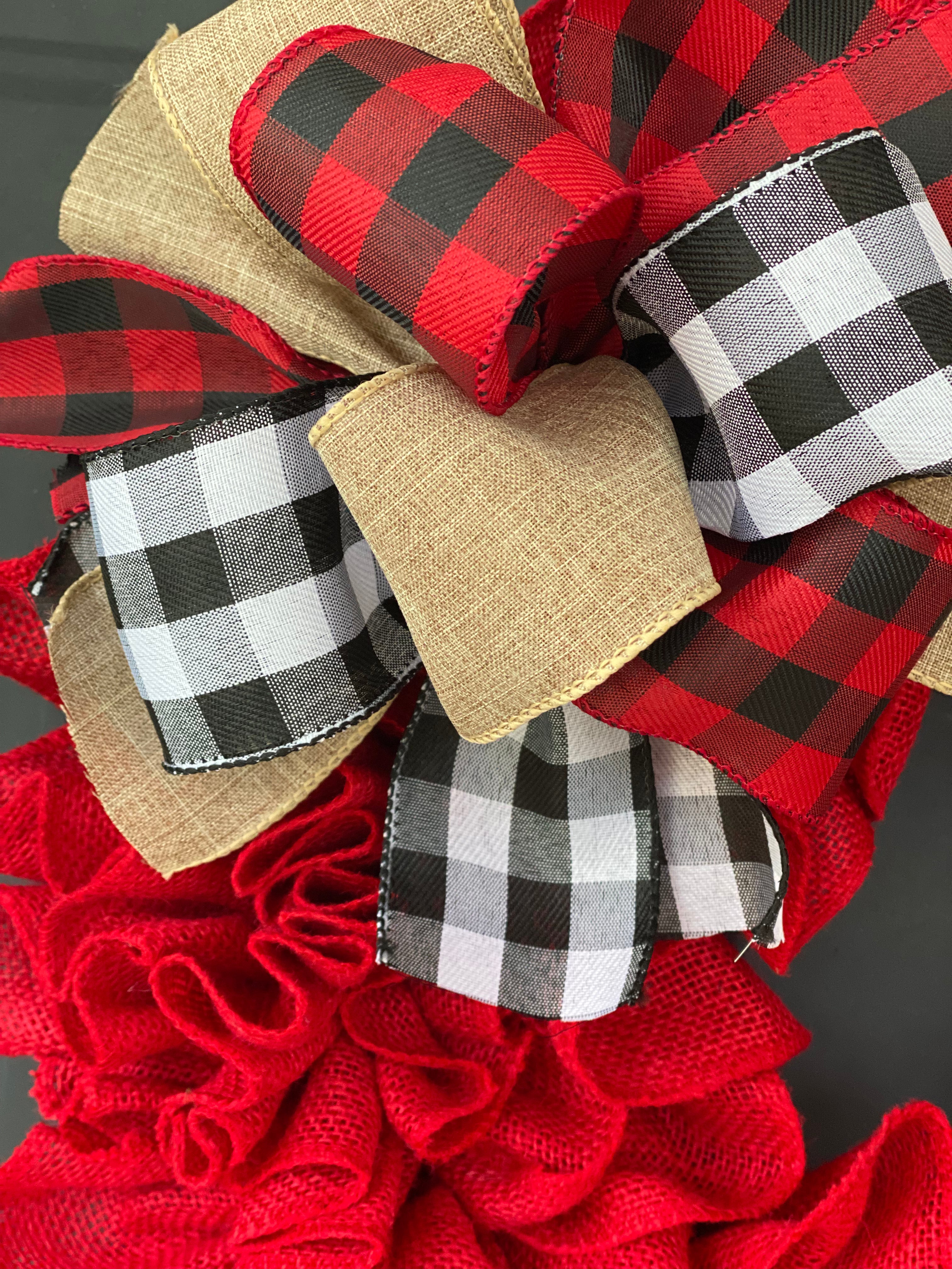 Buffalo plaid Bows, Red Christmas Bows for Mini Cabinet Wreaths, Mini Wreath hanger, Ribbon with Bow, Farmhouse Christmas Bow