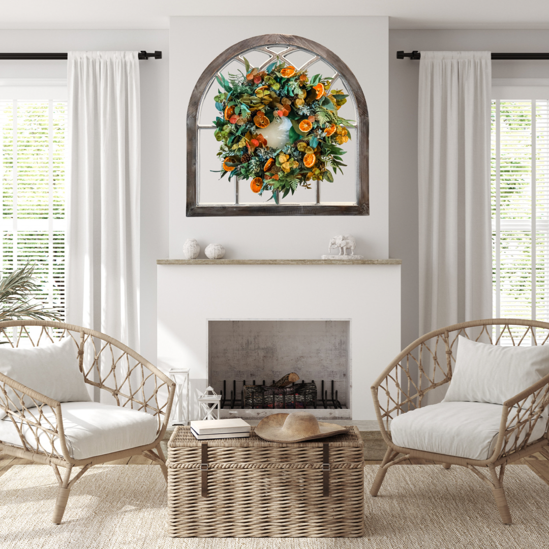 This fall wreath will make a statement on your front door measuring approximately 22”-23” in diameter. Will all of the fall foliages it resembles and it beautifully dried oranges for an extra pop of auntie color, this door wreath a great way to welcome Autumn and add a pop of color to your front door decor or wall decor.