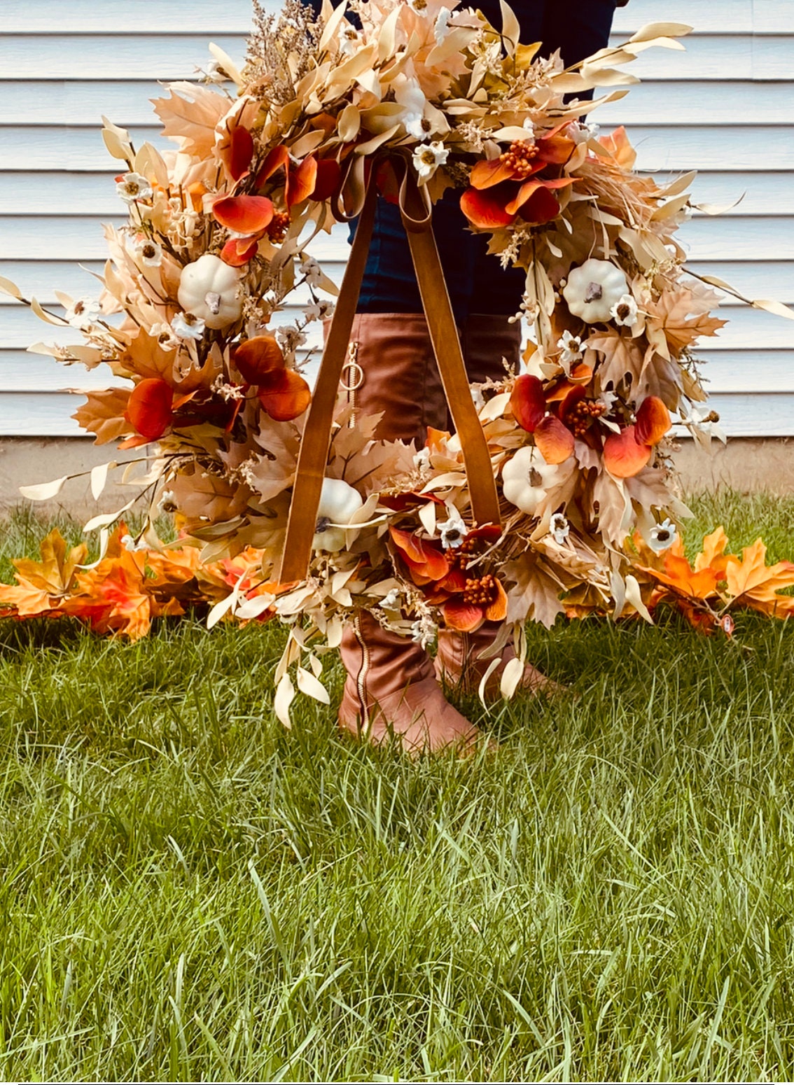 It measures approximately 24 inches in diameter and has a protective fabric back, this Neutral wreath will be the perfect addition to your cozy home.