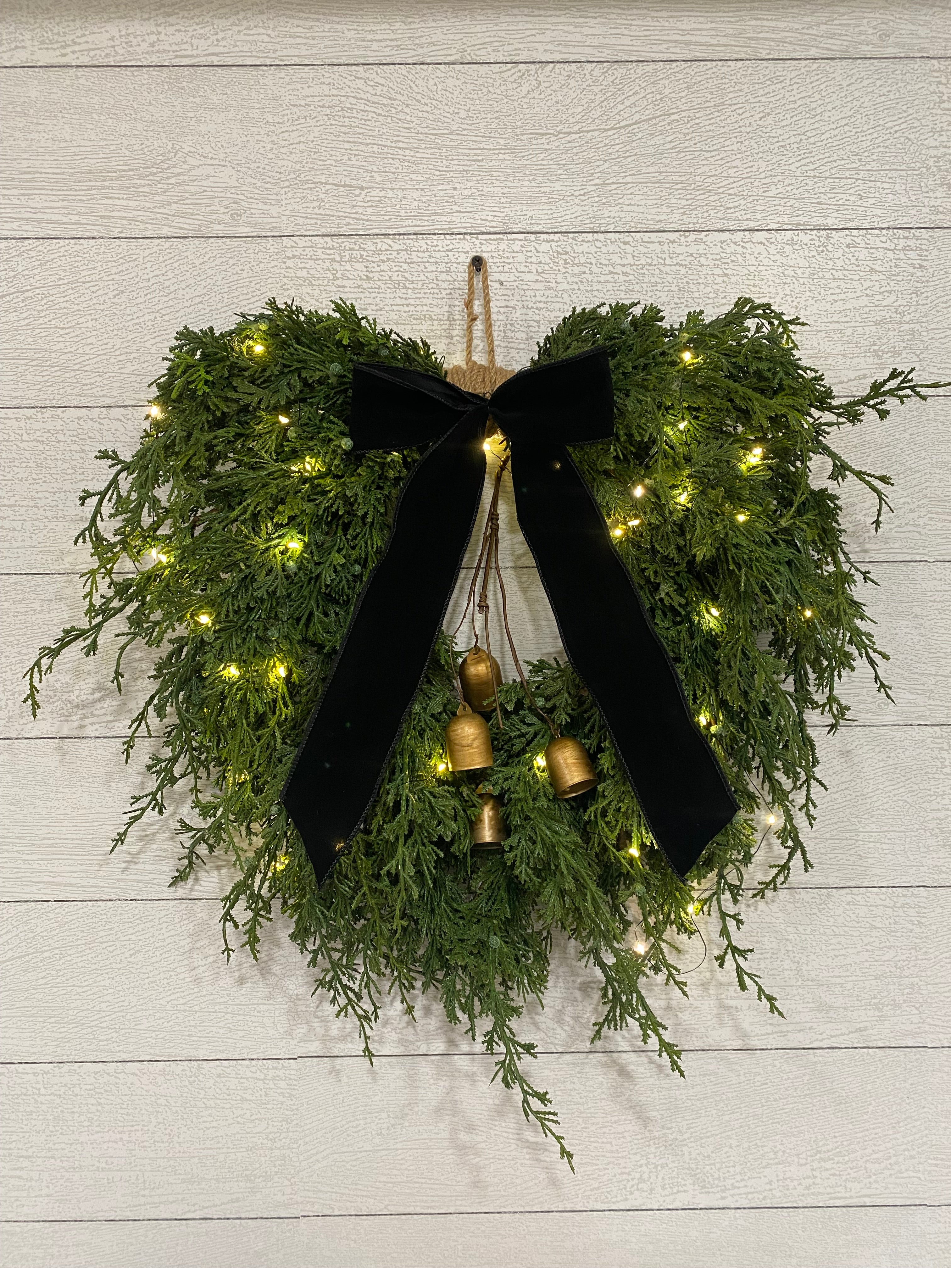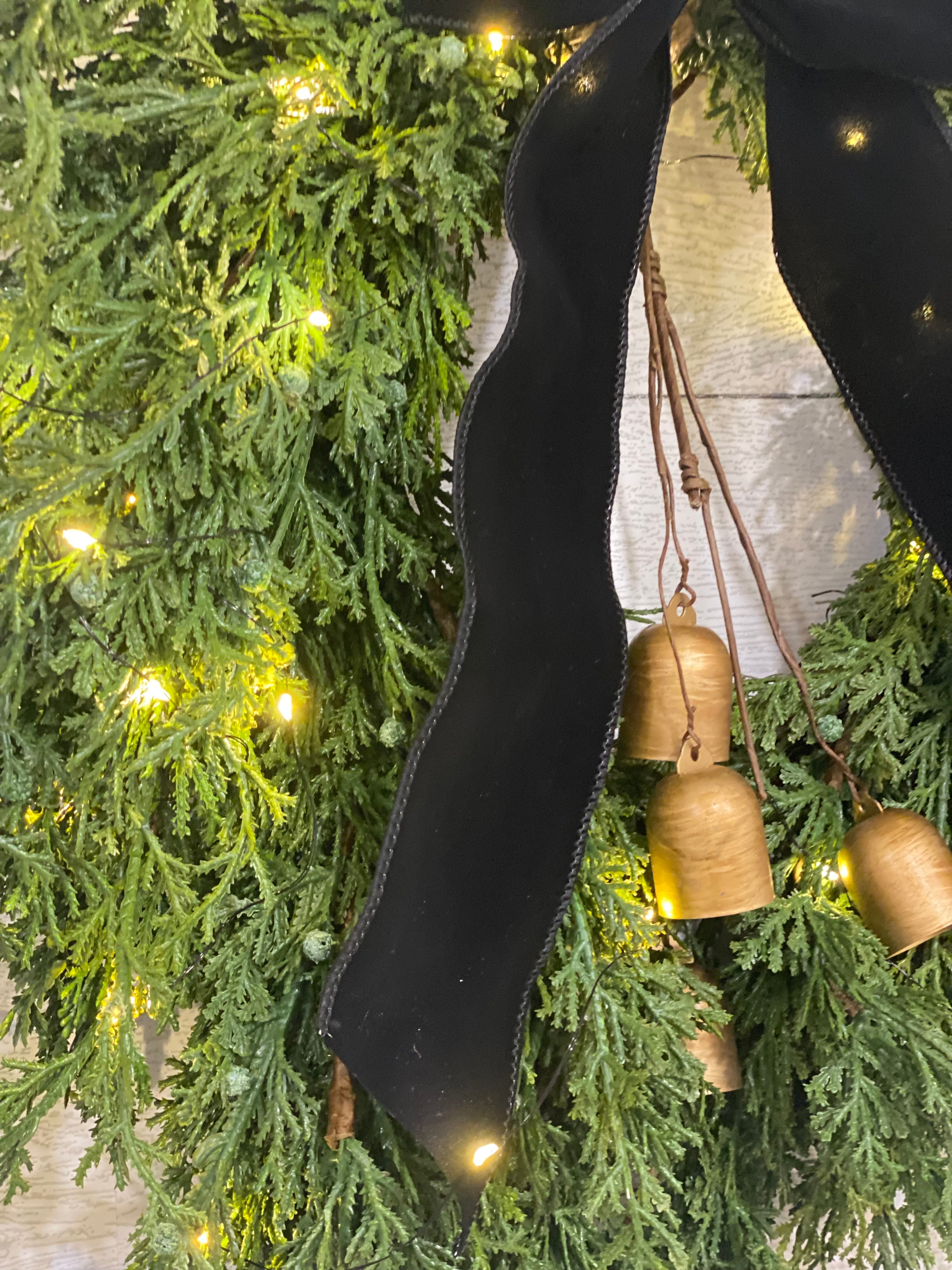 PreLit Cascading Juniper and Cedar Wreath with Bells