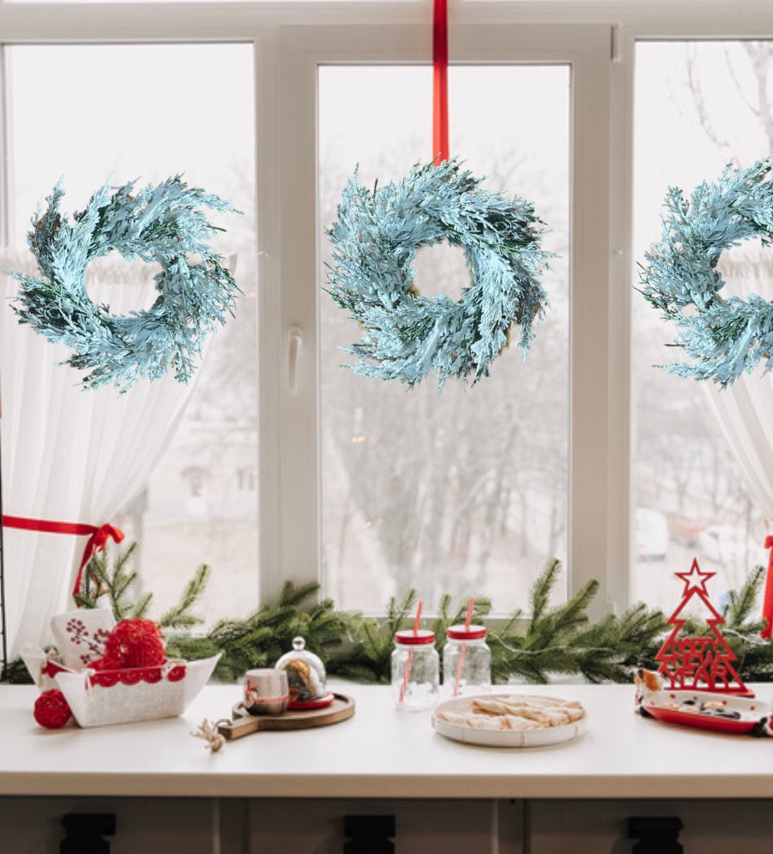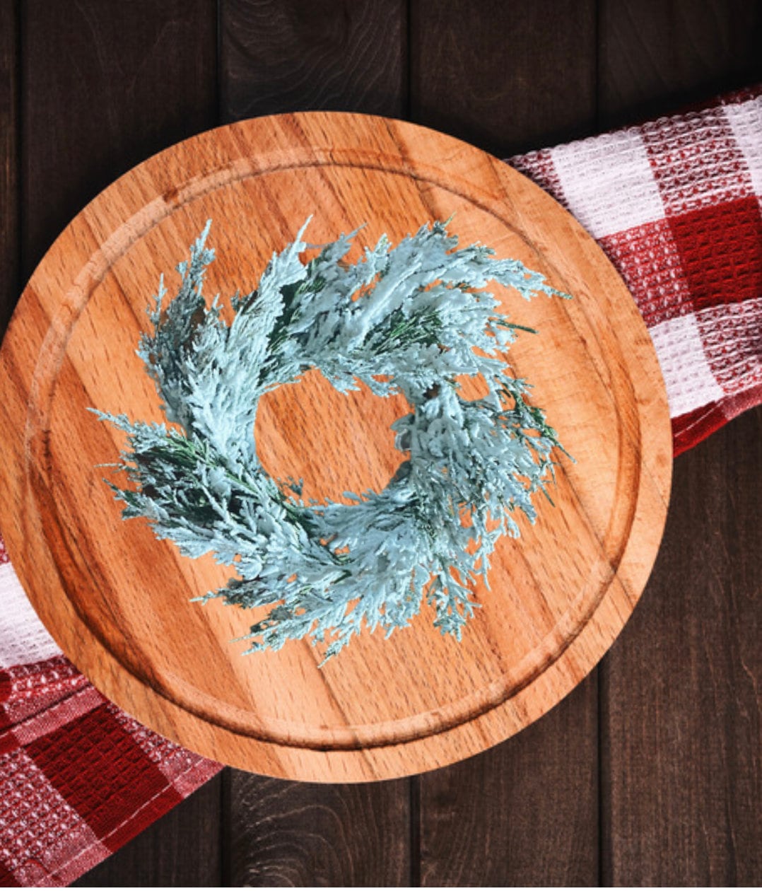 Flocked Mini Cabinet Wreaths for Christmas, Mini Cedar Cabinet Wreaths, Cabinet Wreath with Snow, Farmhouse winter Decor, mini window wreath