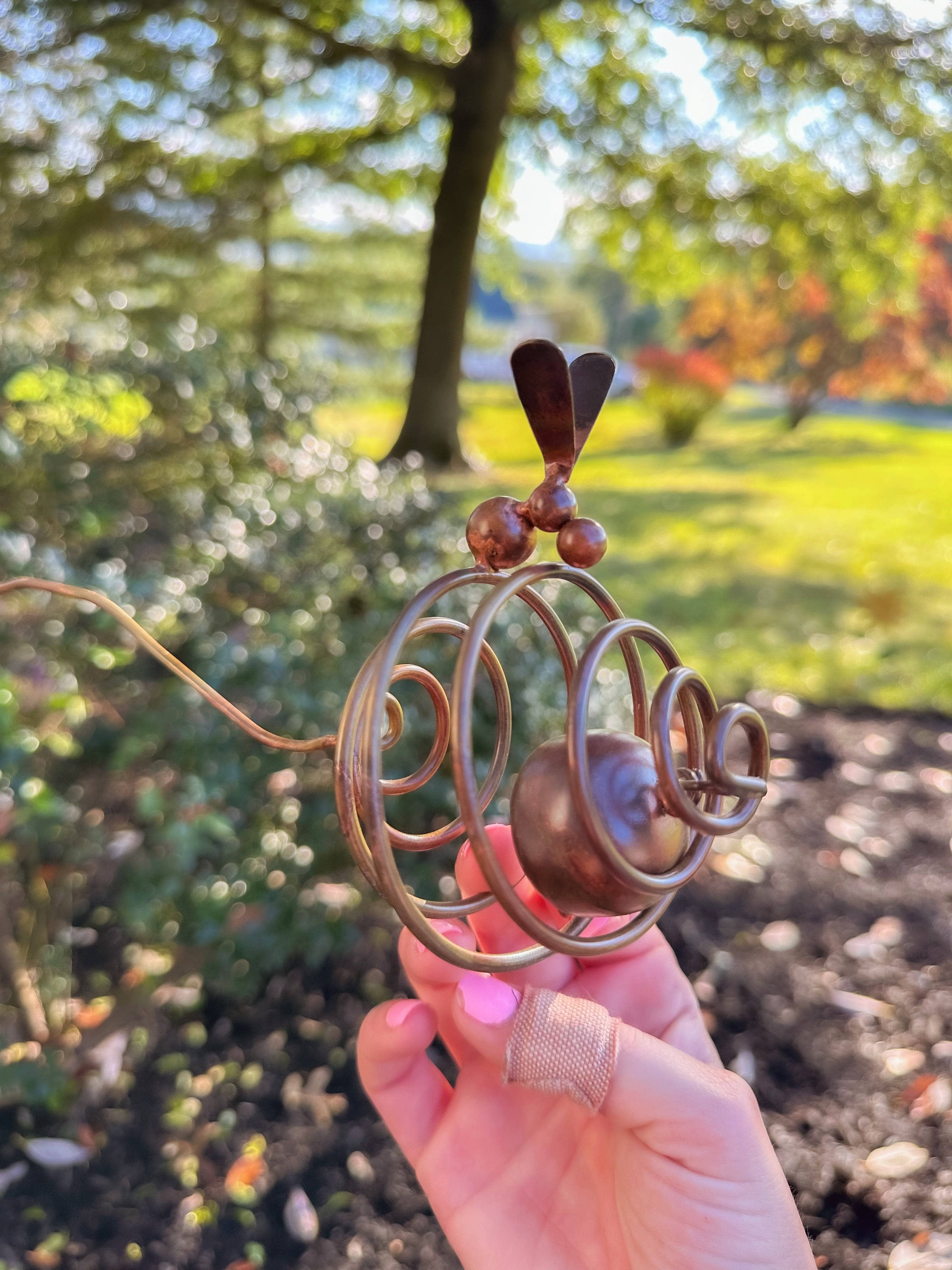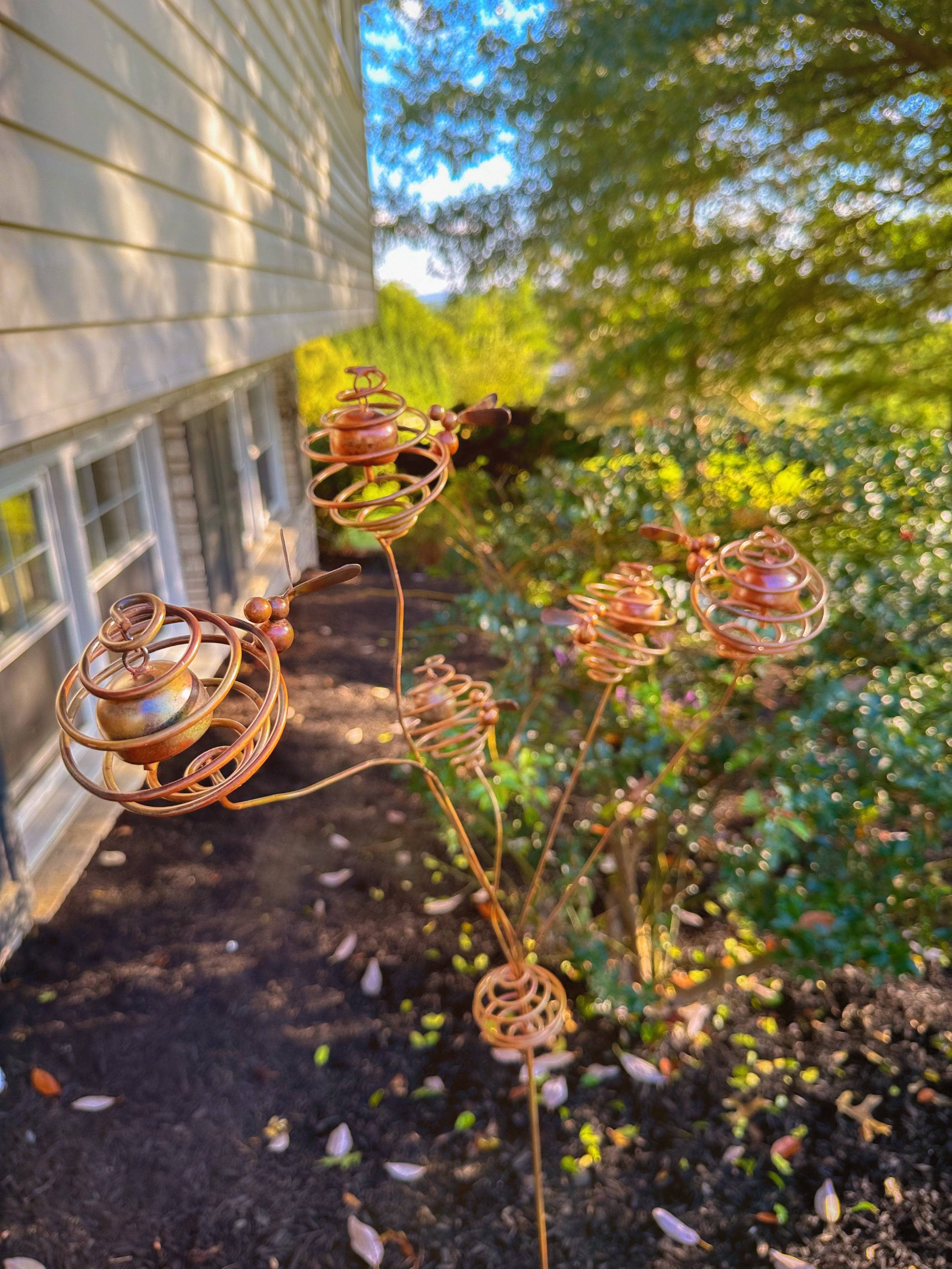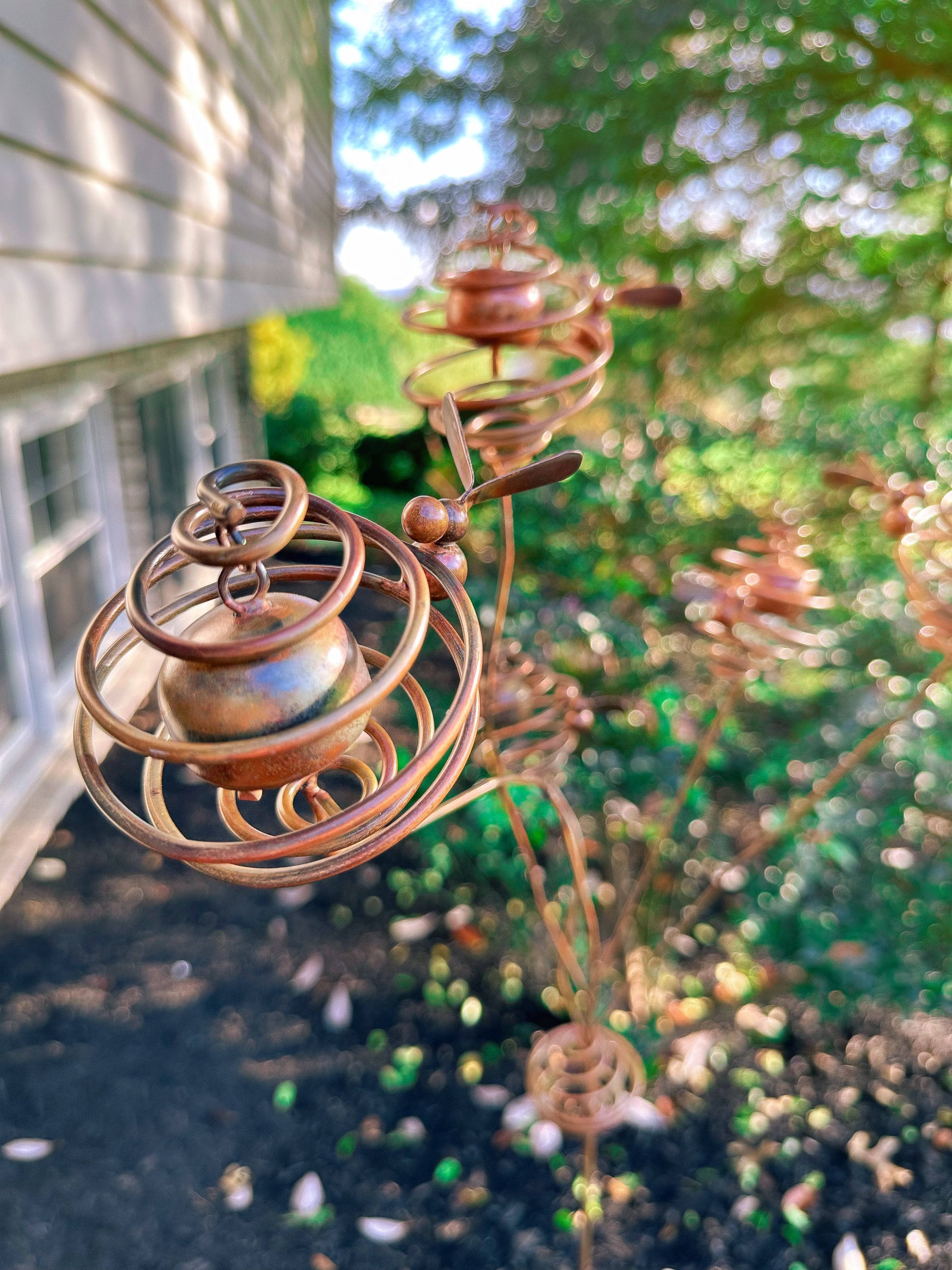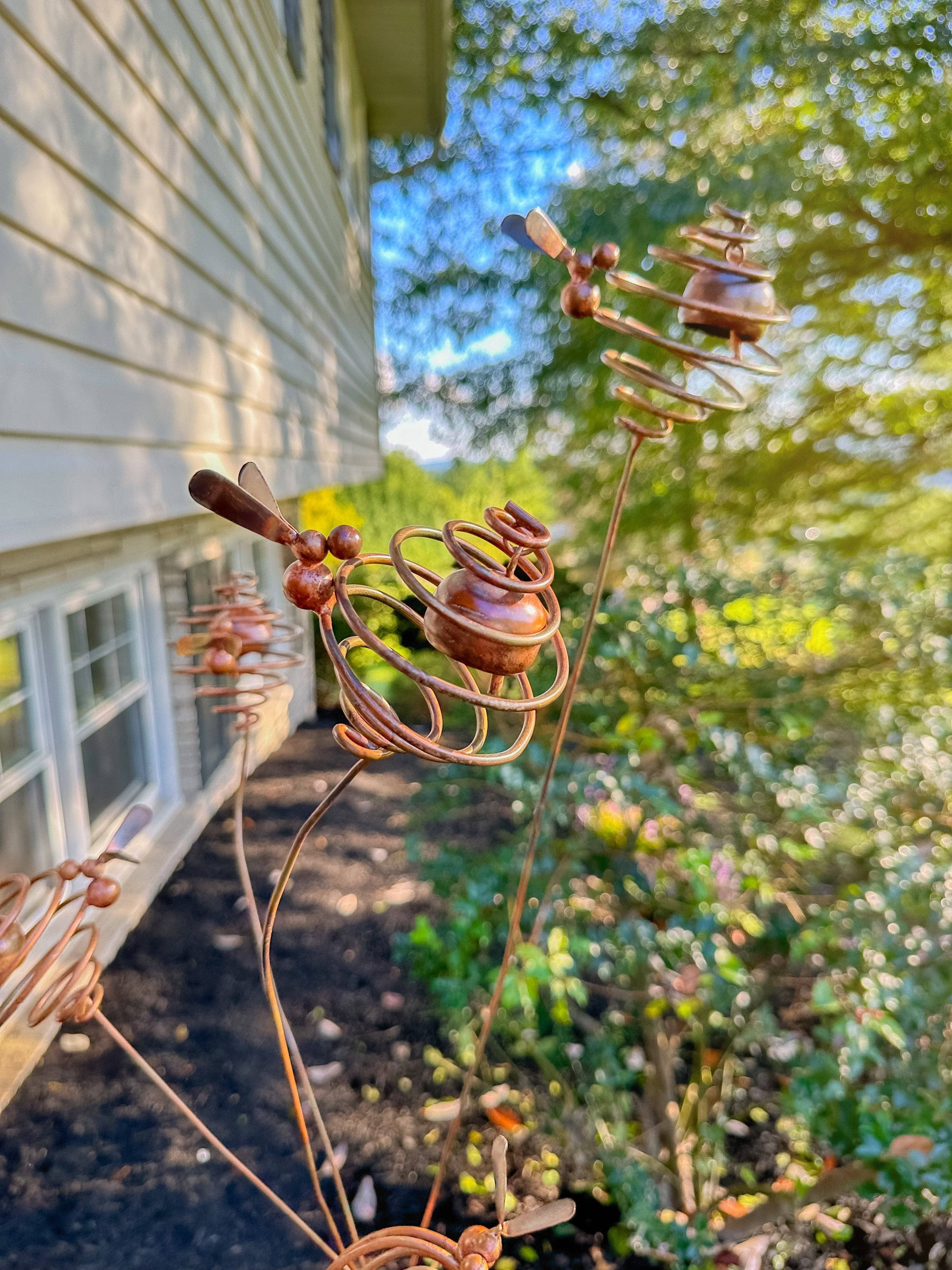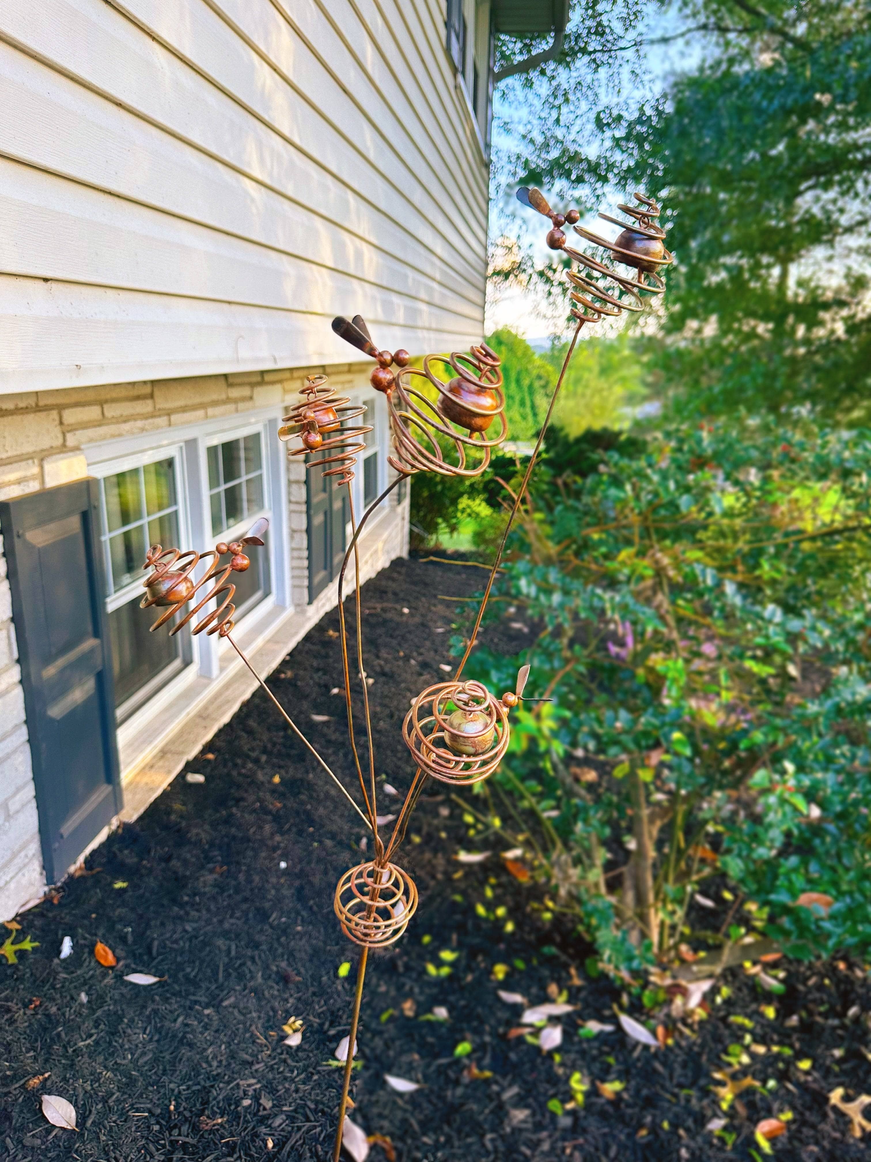 Add a touch of whimsy to your landscape! Our Bee Spiral Garden Stake features six busy pollinators, each encased in a swirl of its own. The flamed finish provides a gentle hint of color, readily complementing a variety of backgrounds, and the shape is ideal for decorating a favorite shrub or flowerbed. Like other Garden's stakes, this one has been individually handcrafted, and will bring lasting beauty to your lawn or garden.