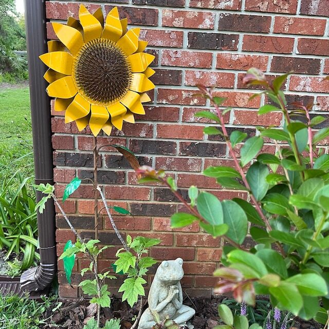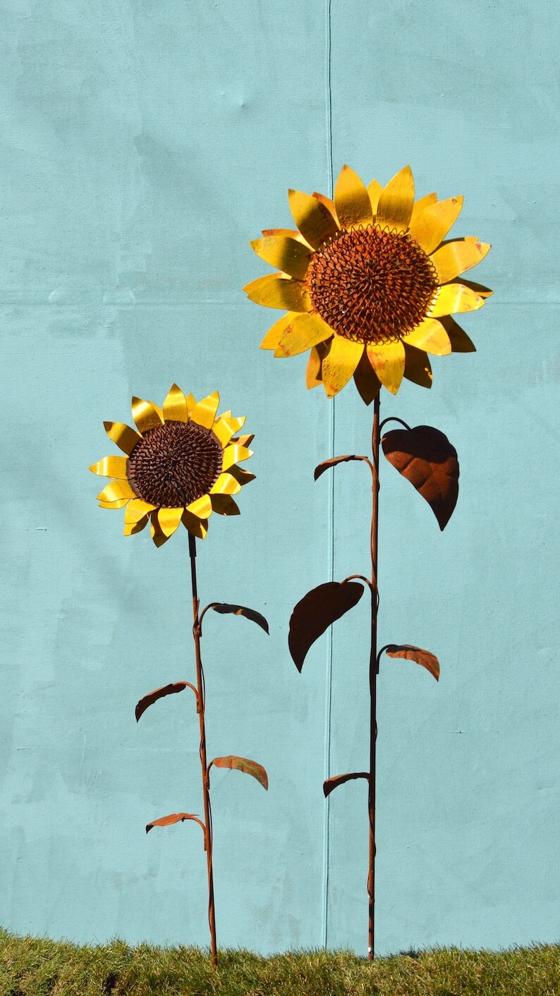 The Sunflower Stake Large is a metal garden art piece that will add a rustic touch to your outdoor space. Made from sturdy metal, it features a beautiful sunflower design that adds a vibrant and cheerful vibe to any garden. The metal has a rusty finish, giving it an antique and weathered look that adds character and charm.