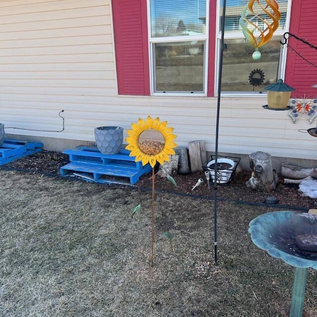 The Sunflower Stake Large measures 55 inches in height and 18 inches in width, making it a striking and eye-catching centerpiece for your garden. It's a perfect addition for bird lovers, as it attracts birds and adds a delightful element of nature to your surroundings.