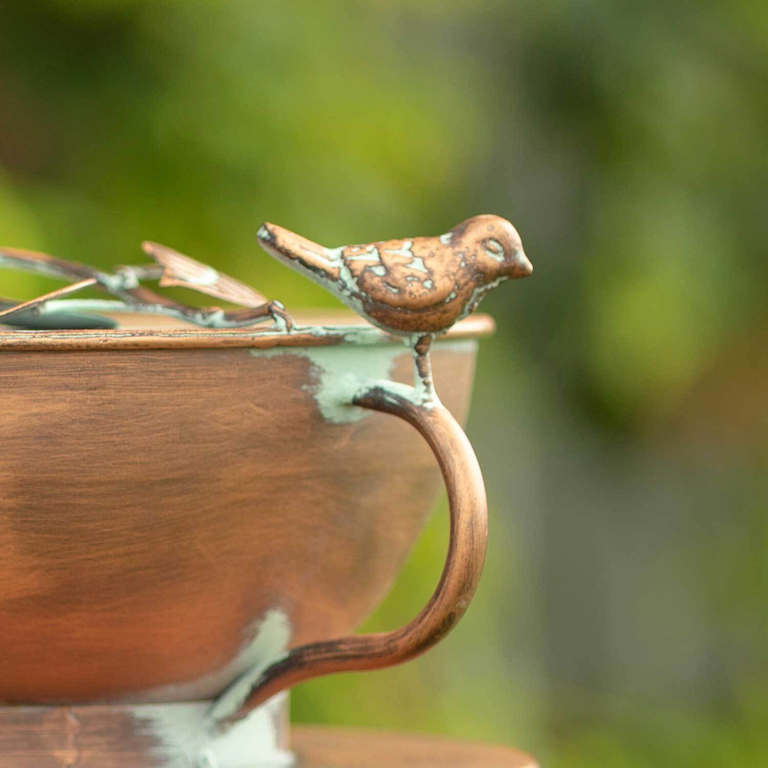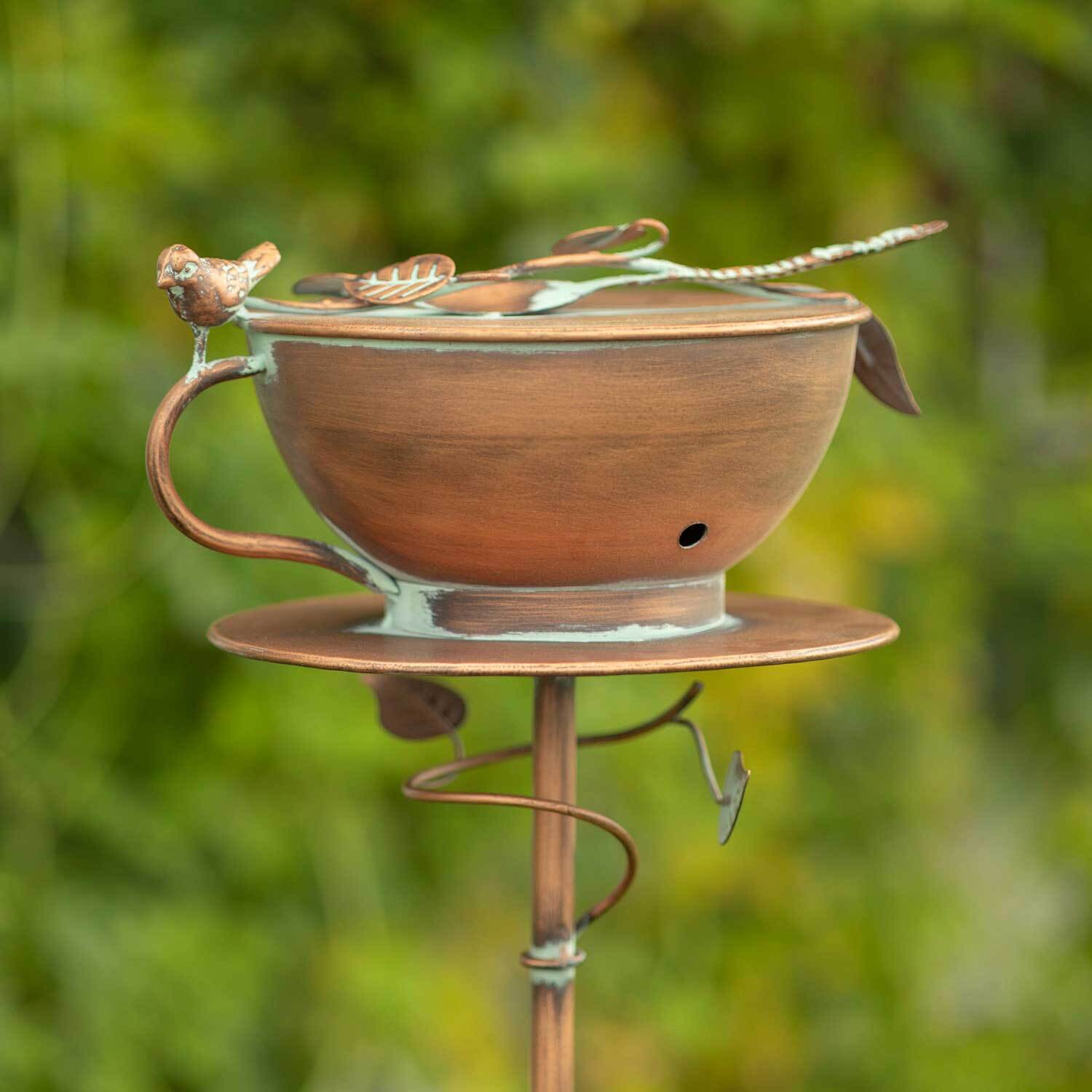 This style features an oversized teacup, stirring spoon, and gorgeous flower, vine, and bird details throughout.