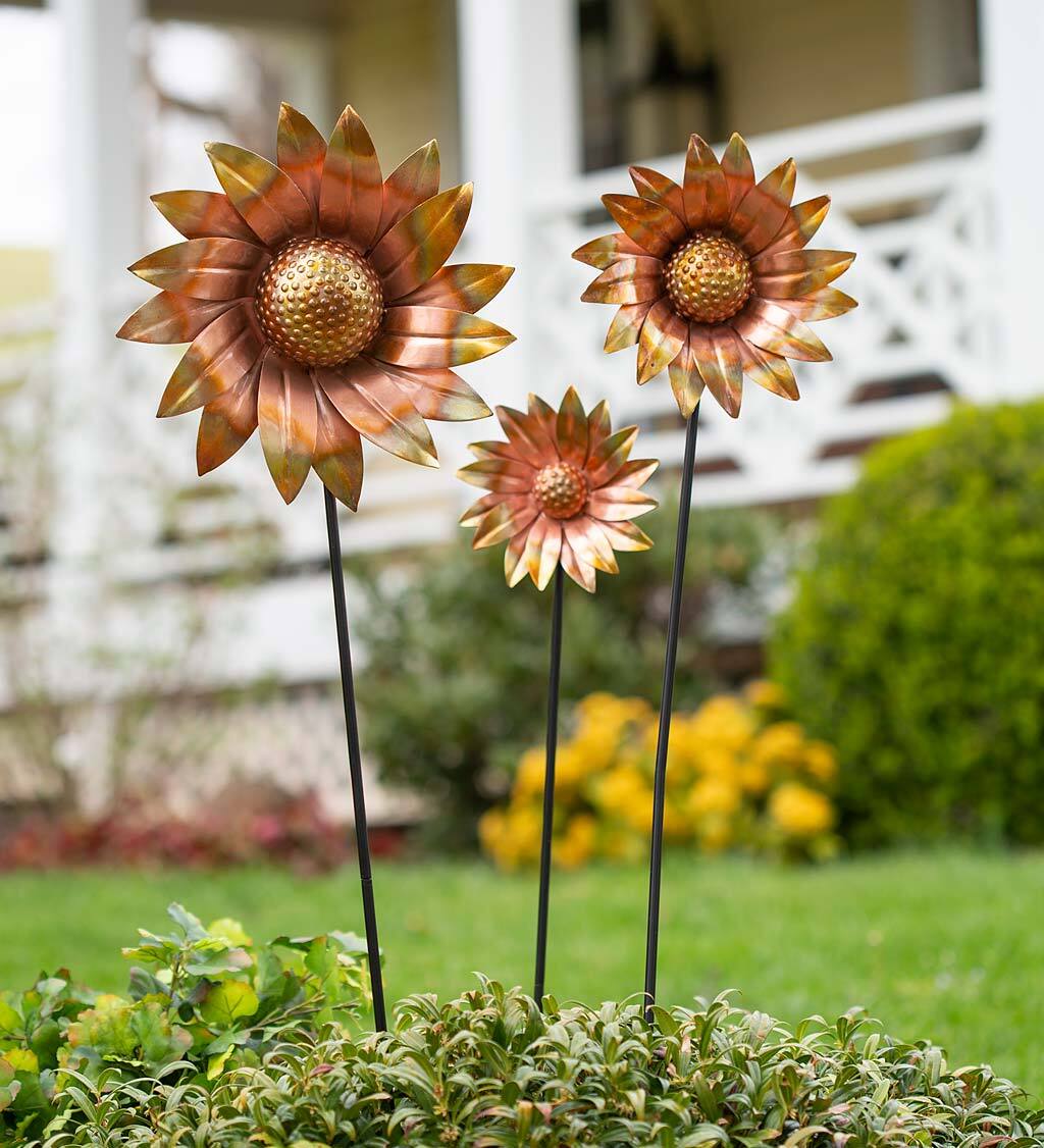 Bronze Flower Garden Stakes, Set of 3