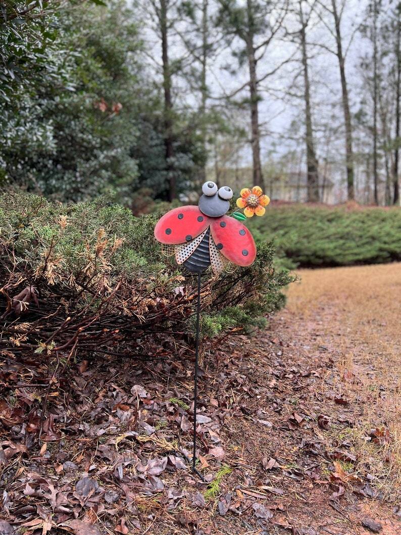 Ladybug Garden Stake Decorative Ladybug Yard Stake, Metal Insect Yard Art Decor for Patio Porch Lawn Pathway