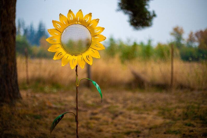 Sunflower Bird Feeder Stake | Rusted Metal Yard Art | Garden Gifts | Metal Garden Art | Garden Bed Decor|