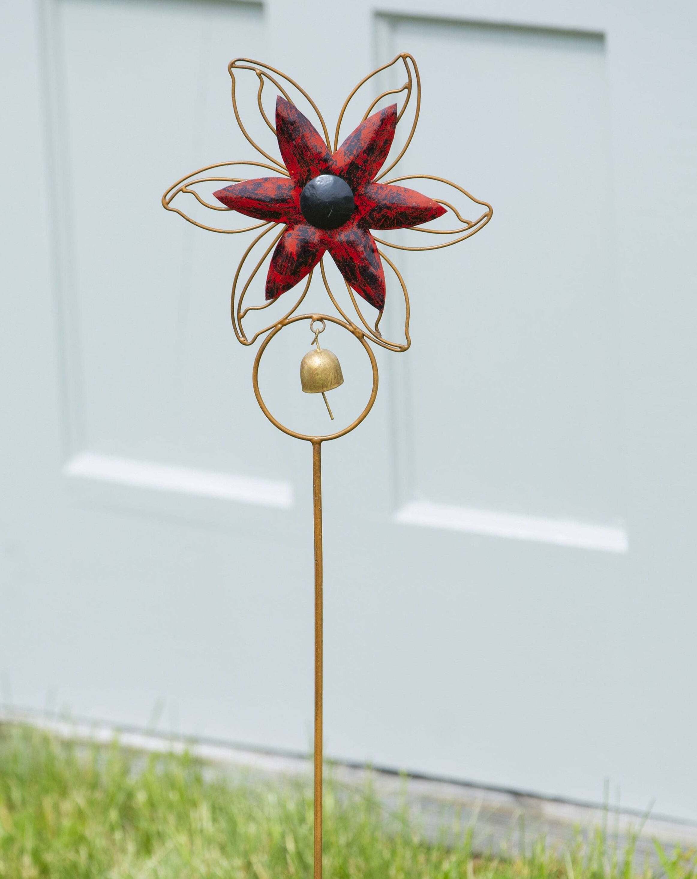 Open Petal Flower Garden Stake, Red