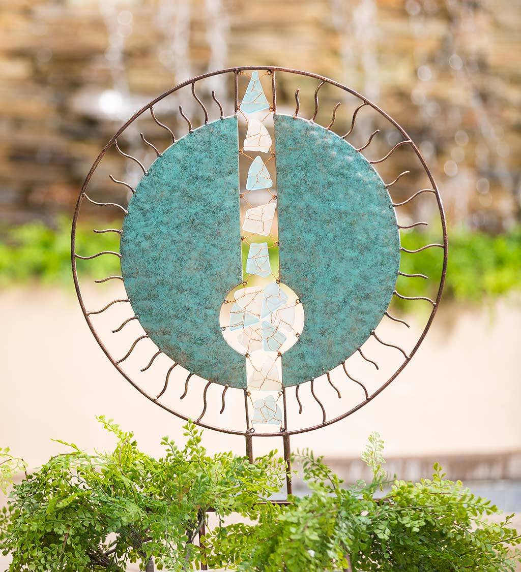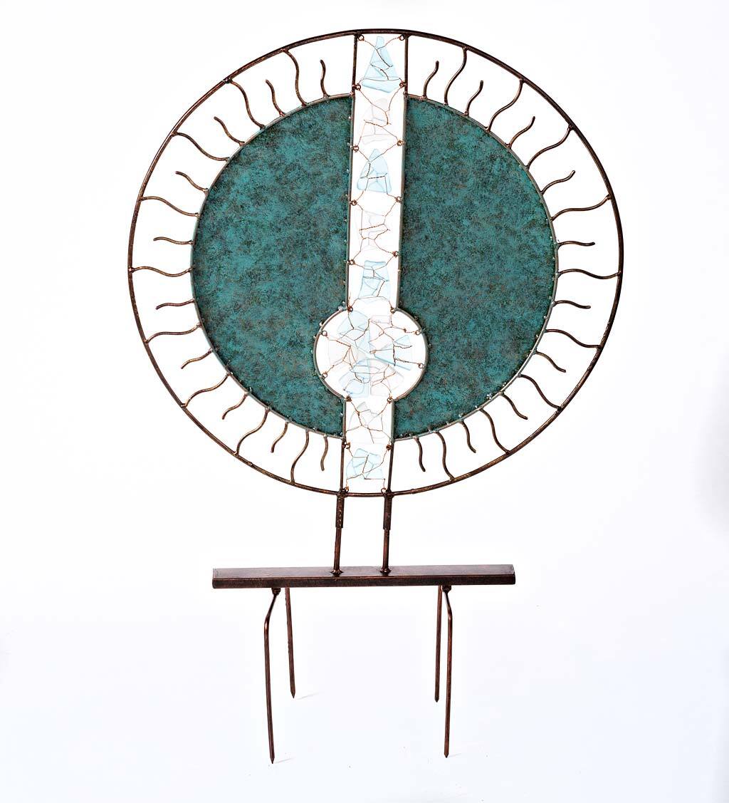 Handcrafted Round Metal and Glass Garden Sculpture