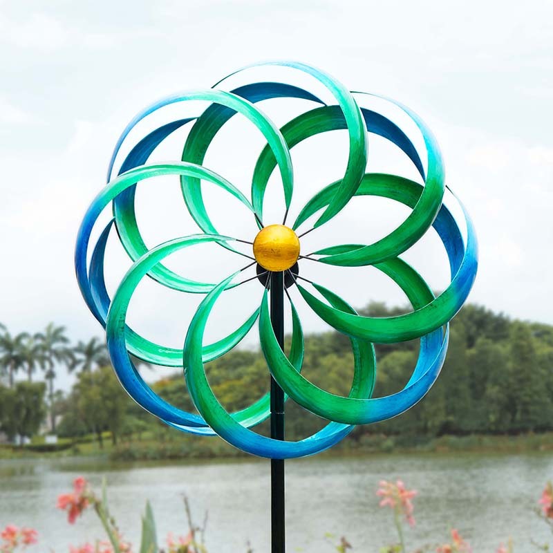 Green and Blue Flower Yard Wind Spinner