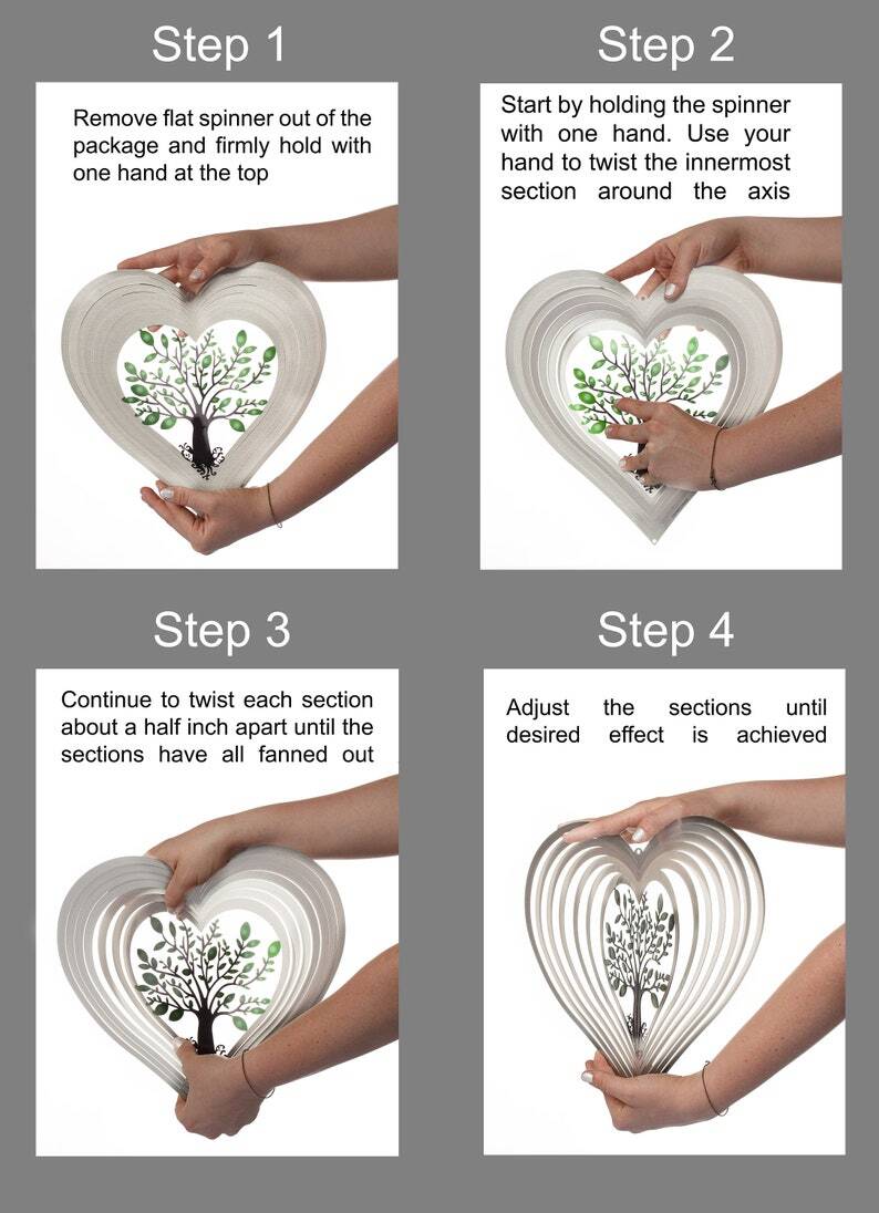 Everyone wants to decorate their garden. If you are searching for an aesthetic hanging wind spinner for your garden decoration, check out and buy our spinner ornaments. The silver heart tree spinner is perfect for outdoor decoration. The wind spinner has made with a beautiful design. When someone enters your garden, this spinner wind inspires others and increases the beauty of the garden.