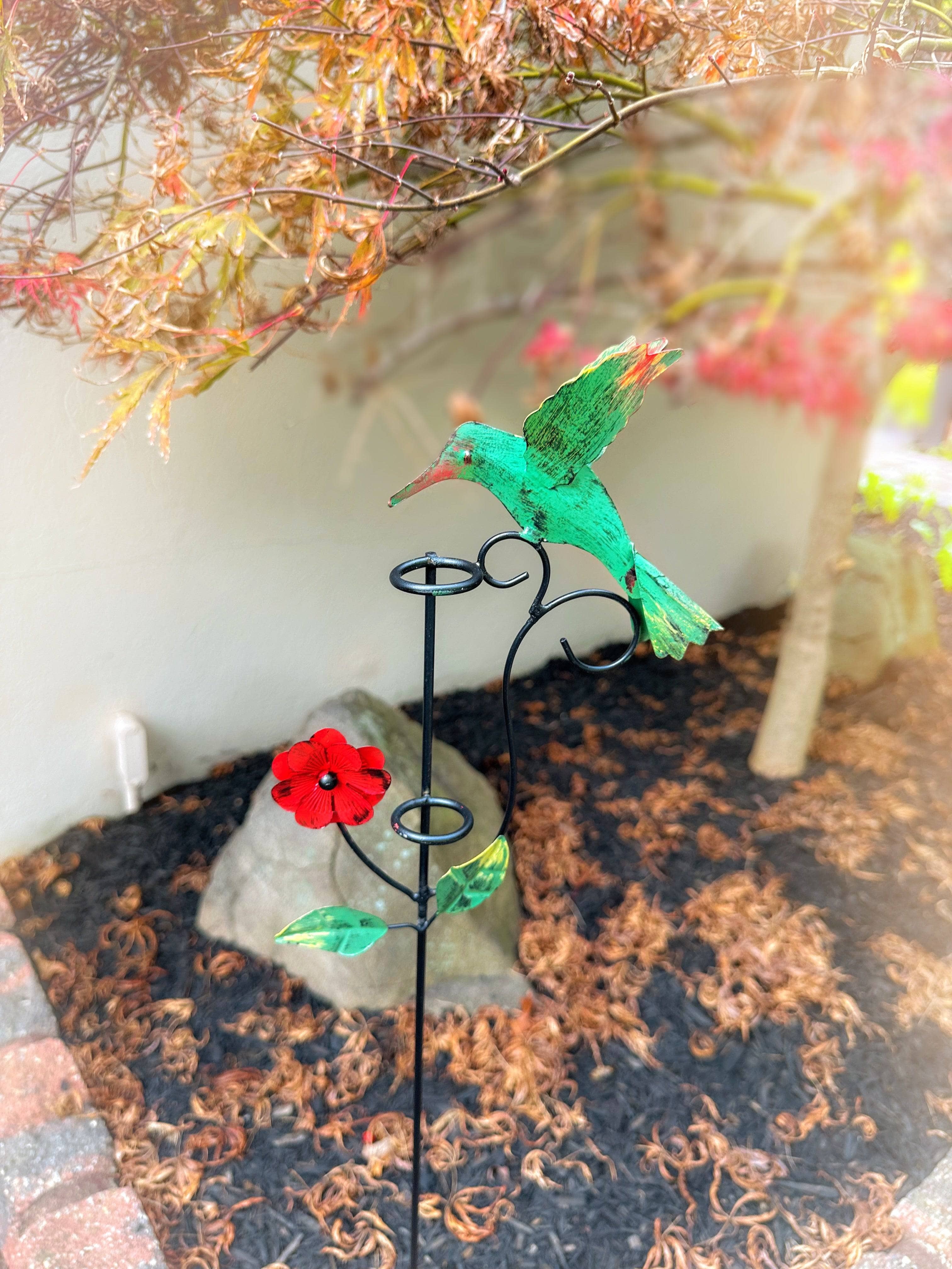 Tired of your boring old rain gauge? We don't blame you. With this colorful piece, you can get all the function you need, plus tons of charm and cheer. A handcrafted hummingbird adds additional texture and loveliness to the piece.