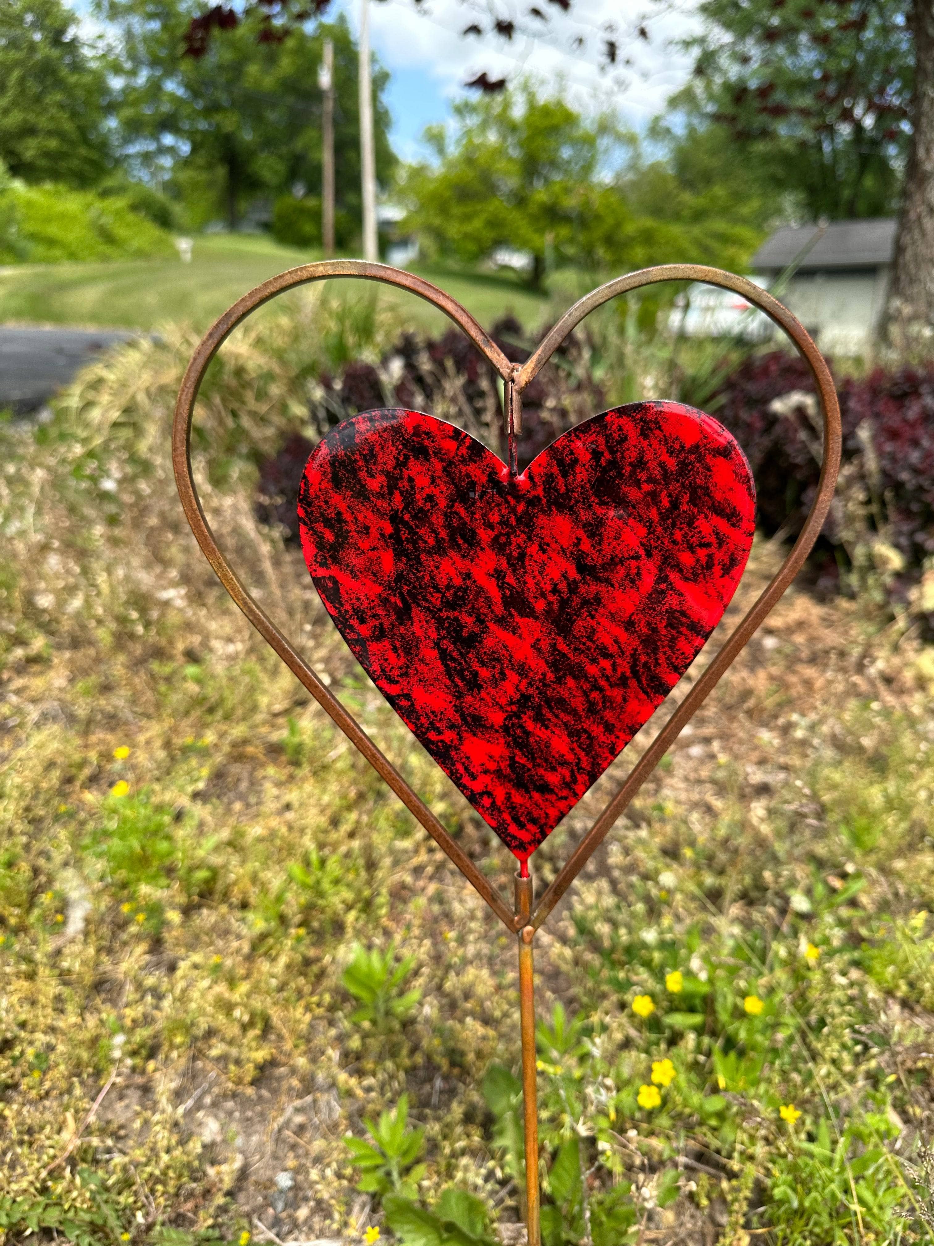 Charming, bold and sweet, our Red Heart Disc Garden Stake will bring a touch of romance and love to your favorite flower bed, walkway or rock garden. This handcrafted, unique garden stake can also be featured in potted plants or add a punch of color to areas where there is only greenery. Like all garden stakes we feature here, this one has been crafted by hand and will make an impression for years to come.