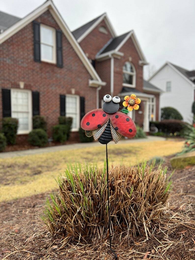 Ladybug Garden Stake Decorative Ladybug Yard Stake, Metal Insect Yard Art Decor for Patio Porch Lawn Pathway