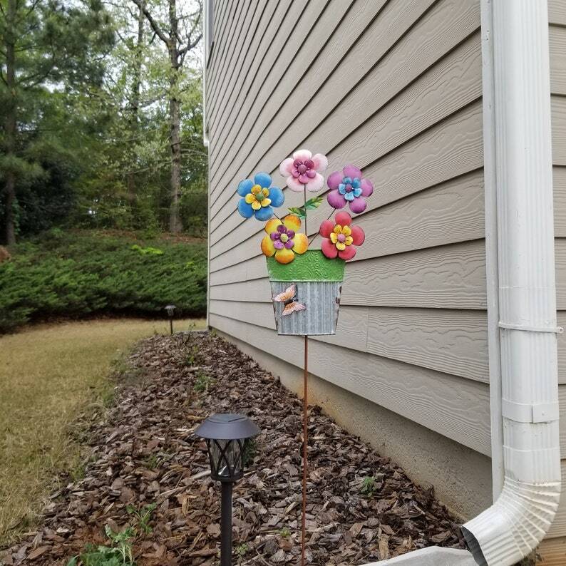 Flower Garden Stake Decorative Flower Yard Stake, Colorful Flower Pot Yard Art Decor Outdoor Garden Decoration for Patio Porch Pathway