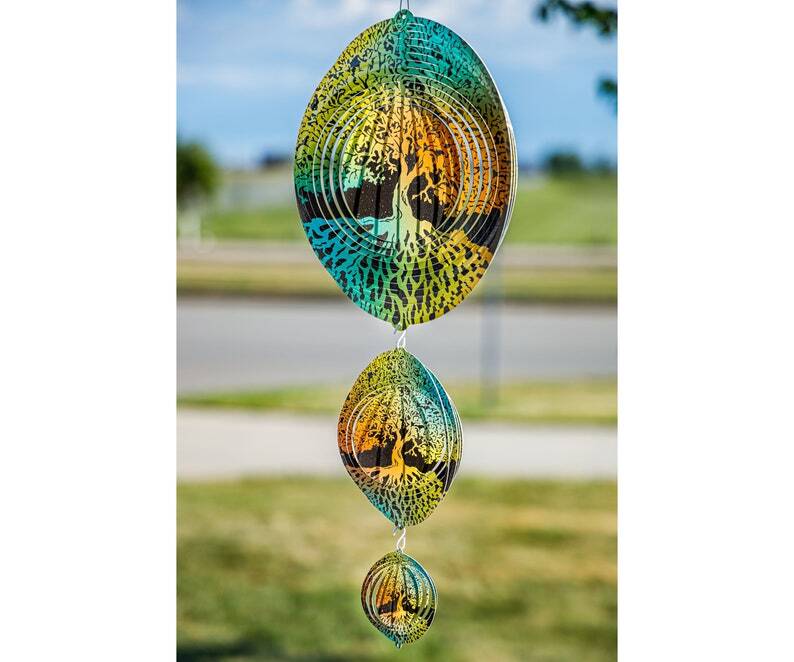 Handcrafted Wavy Metal and Glass Garden Sculpture