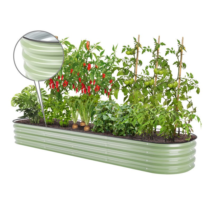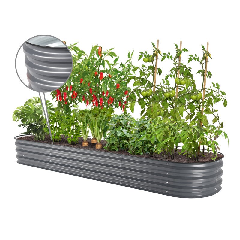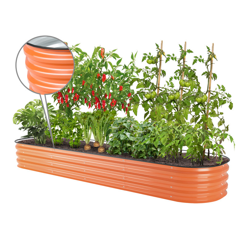 The corrugated metal flower beds are made of high-quality materials, Zn-Al-Mg steel. The tough steel-made flower beds are effective in handling harsh weather conditions. This durable design ensures that the bed is not prone to rust. This means gardeners can replace their beds infrequently, reducing maintenance costs and hassles.