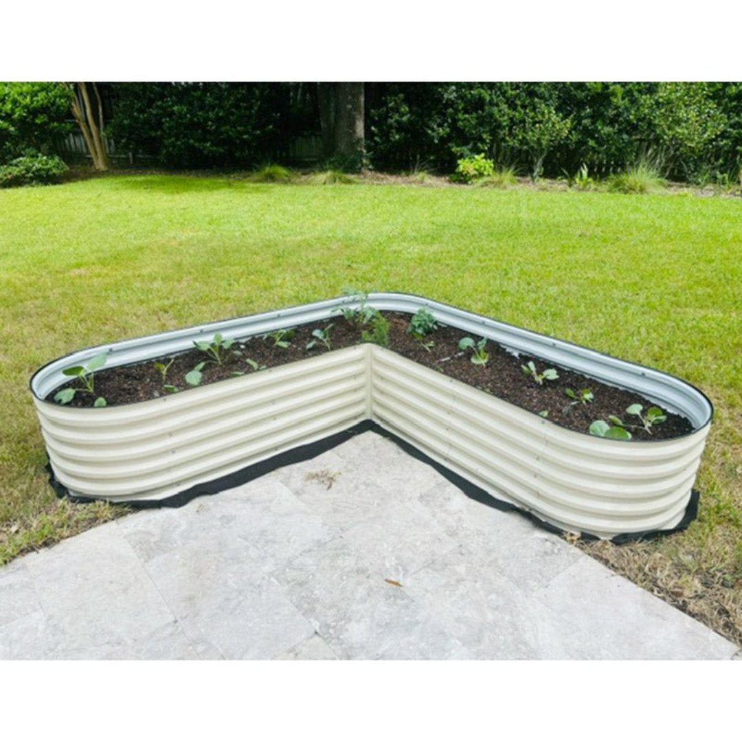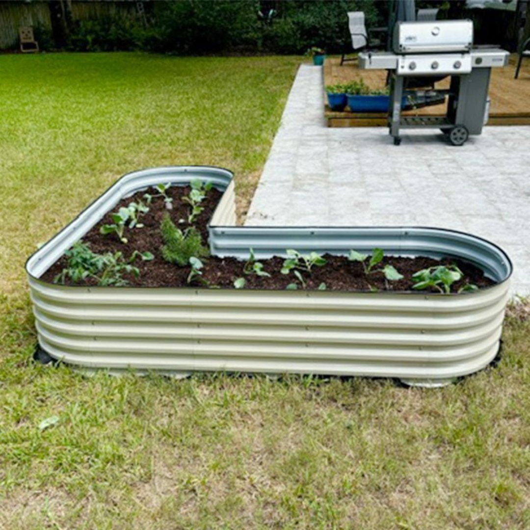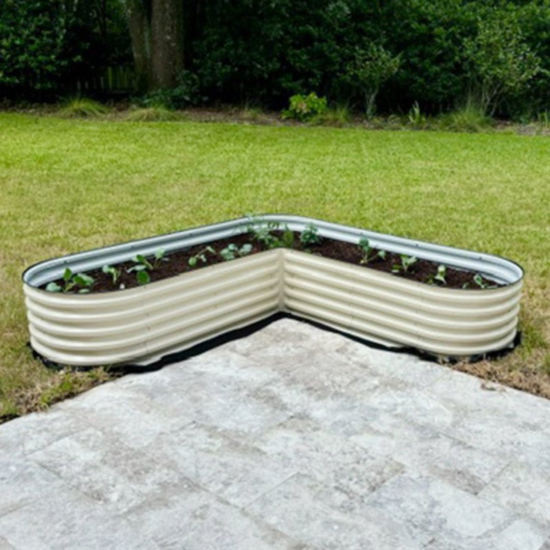 The 17' tall L-shaped raised garden beds are made of high-quality materials such as corrosion-resistant metals or strong . The tough steel-made L-shaped garden beds are effective in handling harsh weather conditions. This durable design ensures that the bed is not prone to rust. This means users can replace their beds infrequently, reducing maintenance costs and hassles.