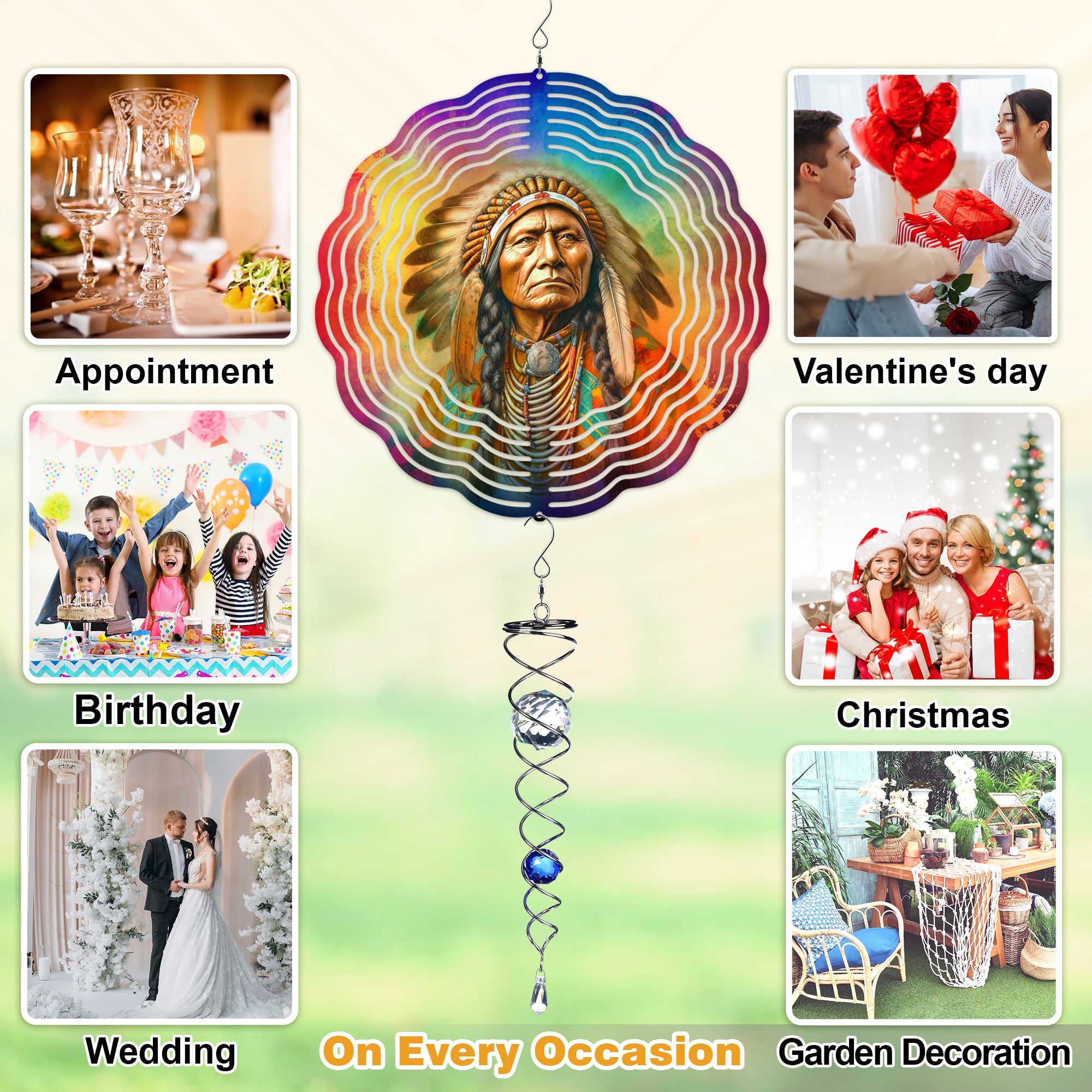 Discover a world of whimsical beauty with wind spinners for your yard and garden. Choose from Headdress Chief Native American wind spinners, Wolf wind spinners, Hummingbirds, and more. Transform your outdoor space with our creative collection. Shop now and let the wind weave its magic!