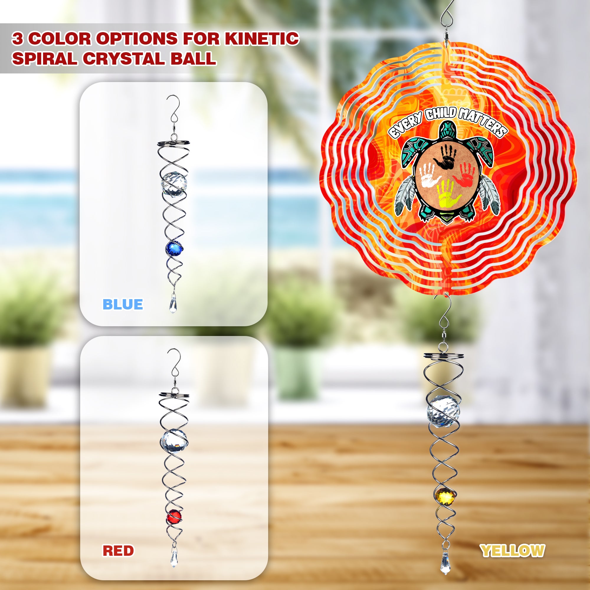 These beautiful spiral tails give the illusion of the crystal ball rising and lowering as it spins.