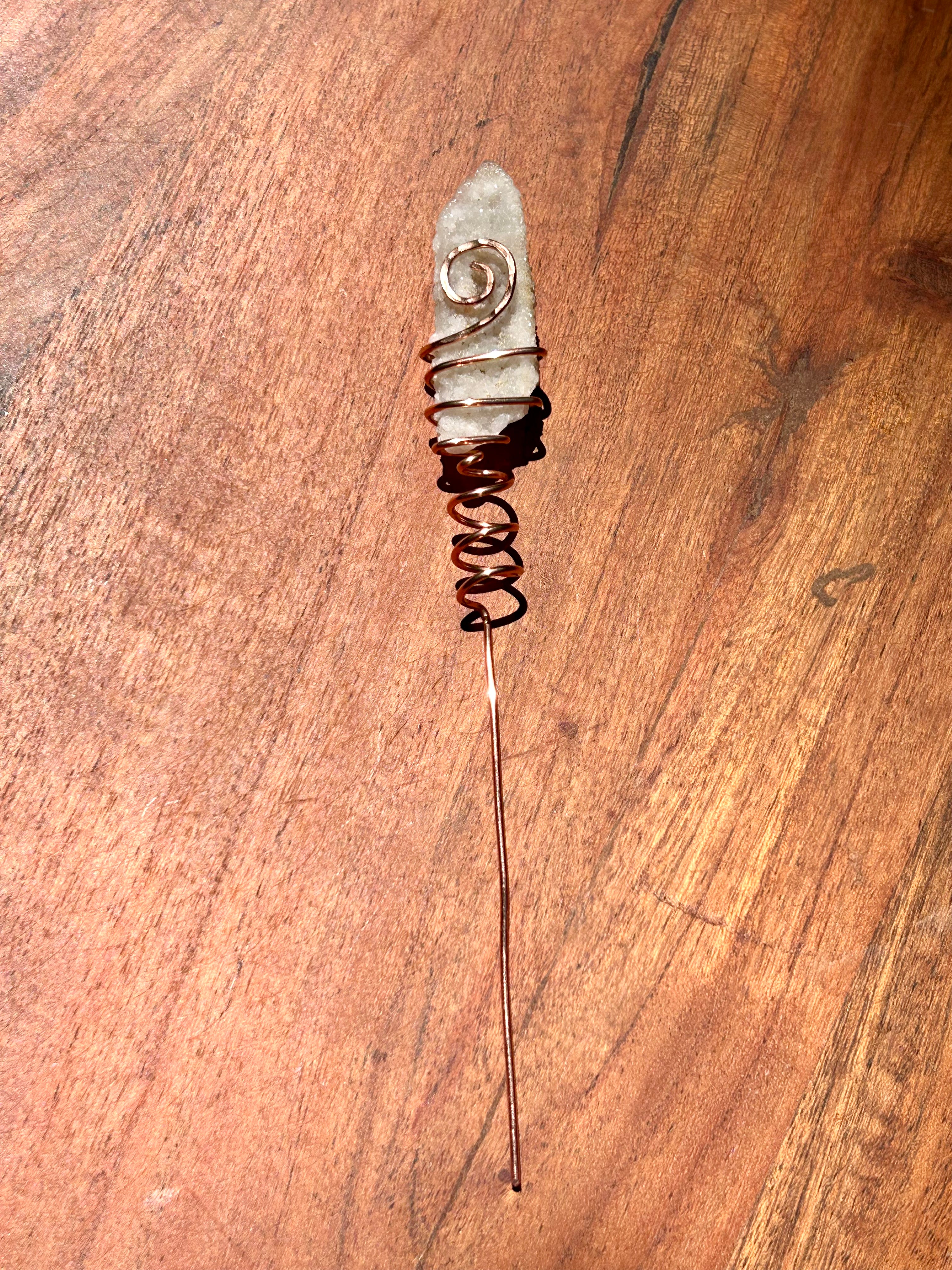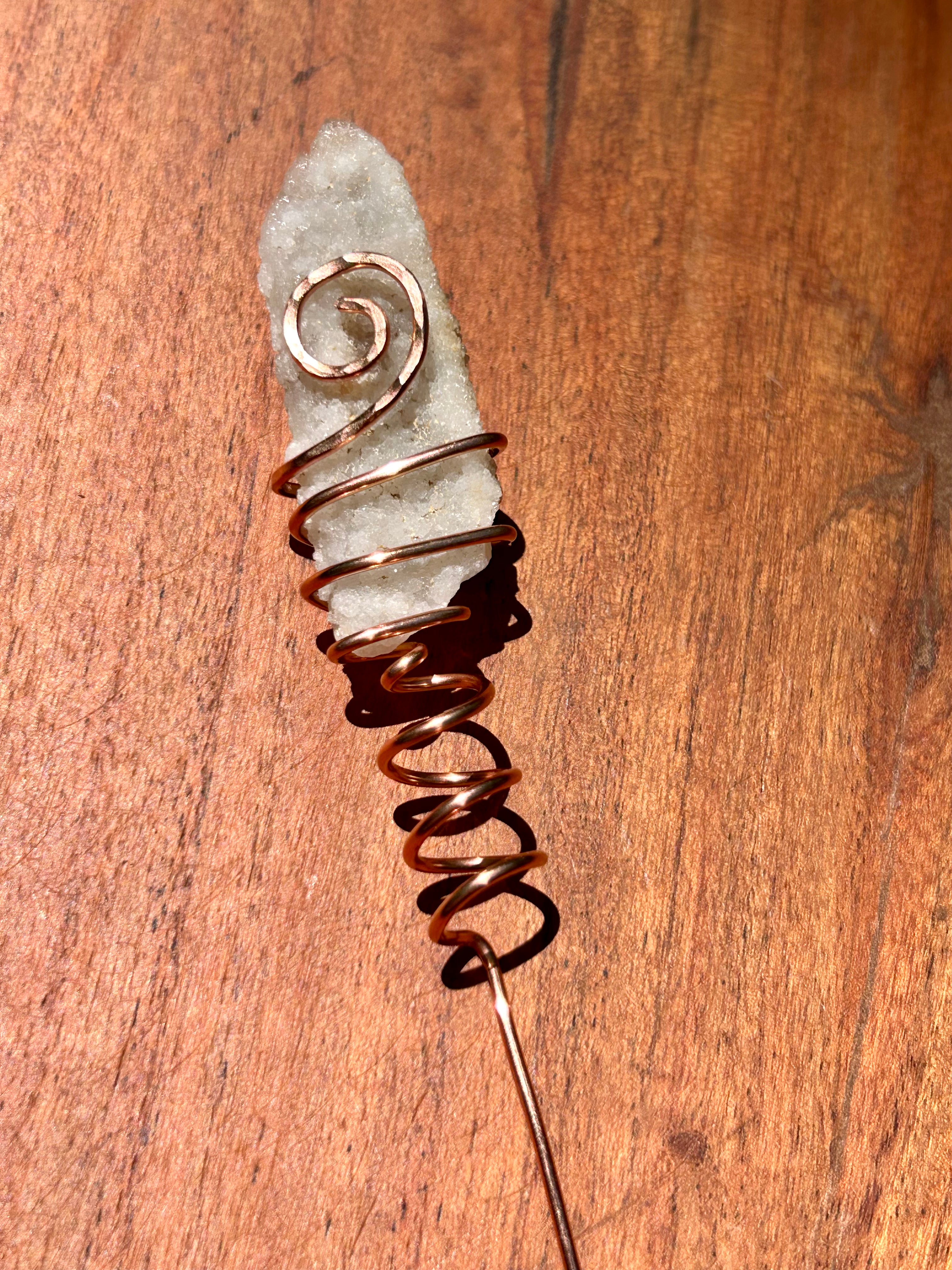 Spirit Quartz Gemstone Wire Wrapped Copper Plant Stake Decor