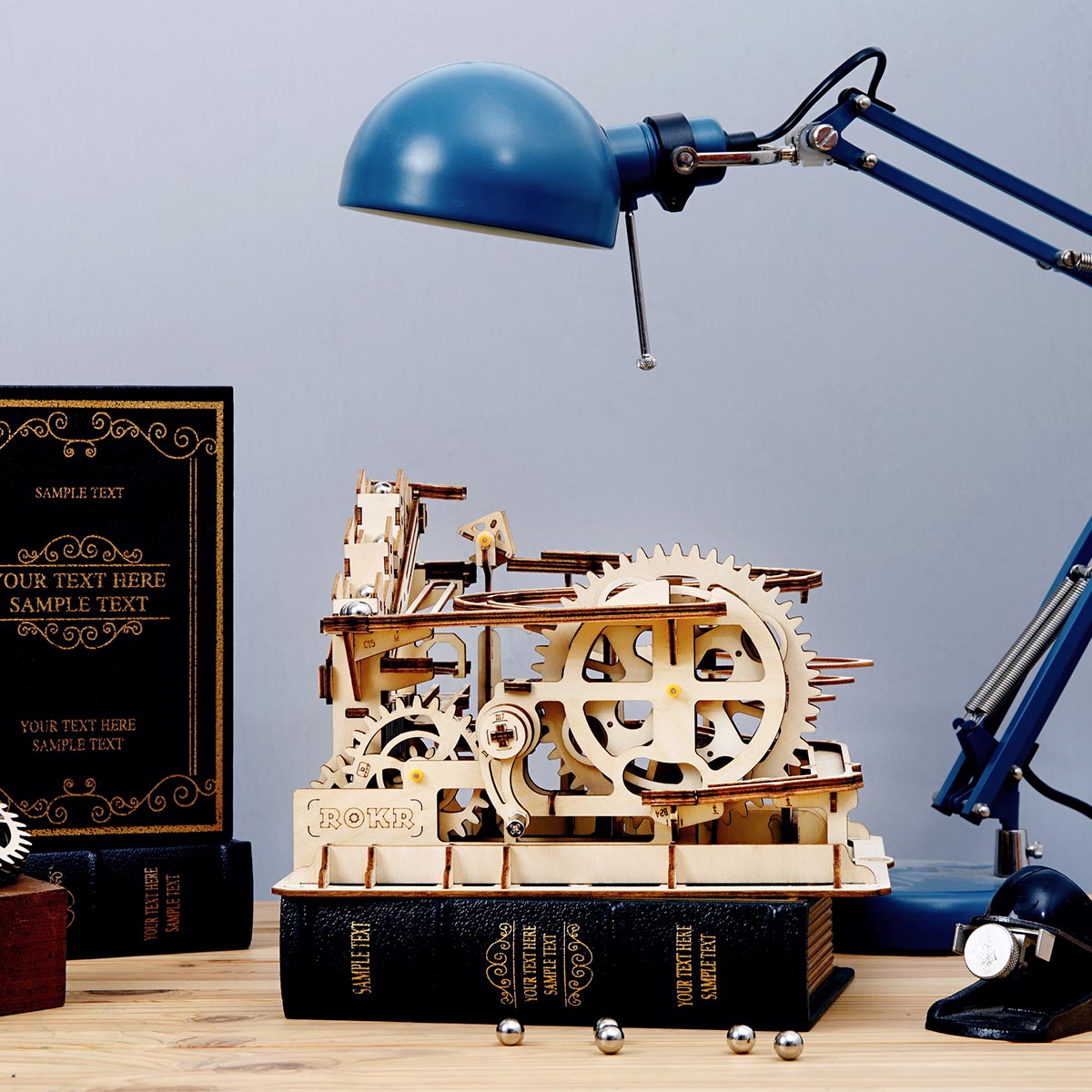 Robotime - ROKR Wooden Marble Run Series is based on great human engineering. These mechanical gears 3D wooden puzzles combine the beauty of science and machines, involving so many small gadgets. Build these wooden puzzle sets and crank the handle, watch marbles run crazy down the slopes and twisting turns.