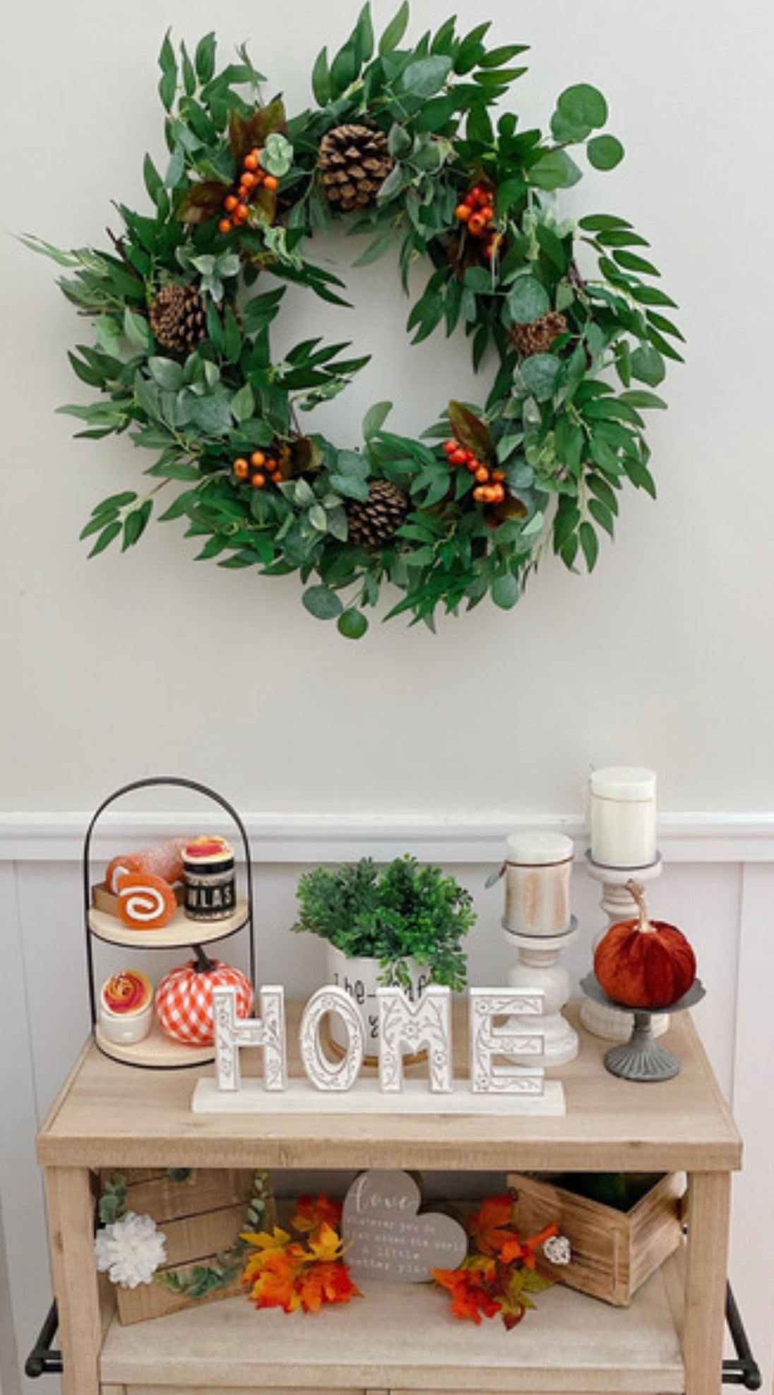 This Fall Farmhouse Wreath will bring style texture and greenery to your home. This rustic fall berry wreath functions as a front door wreath or as indoor wall decor to add greenery and texture to any room’s wall decor . Welcome family, friends, and other guest home with this simple farmhouse wreath.