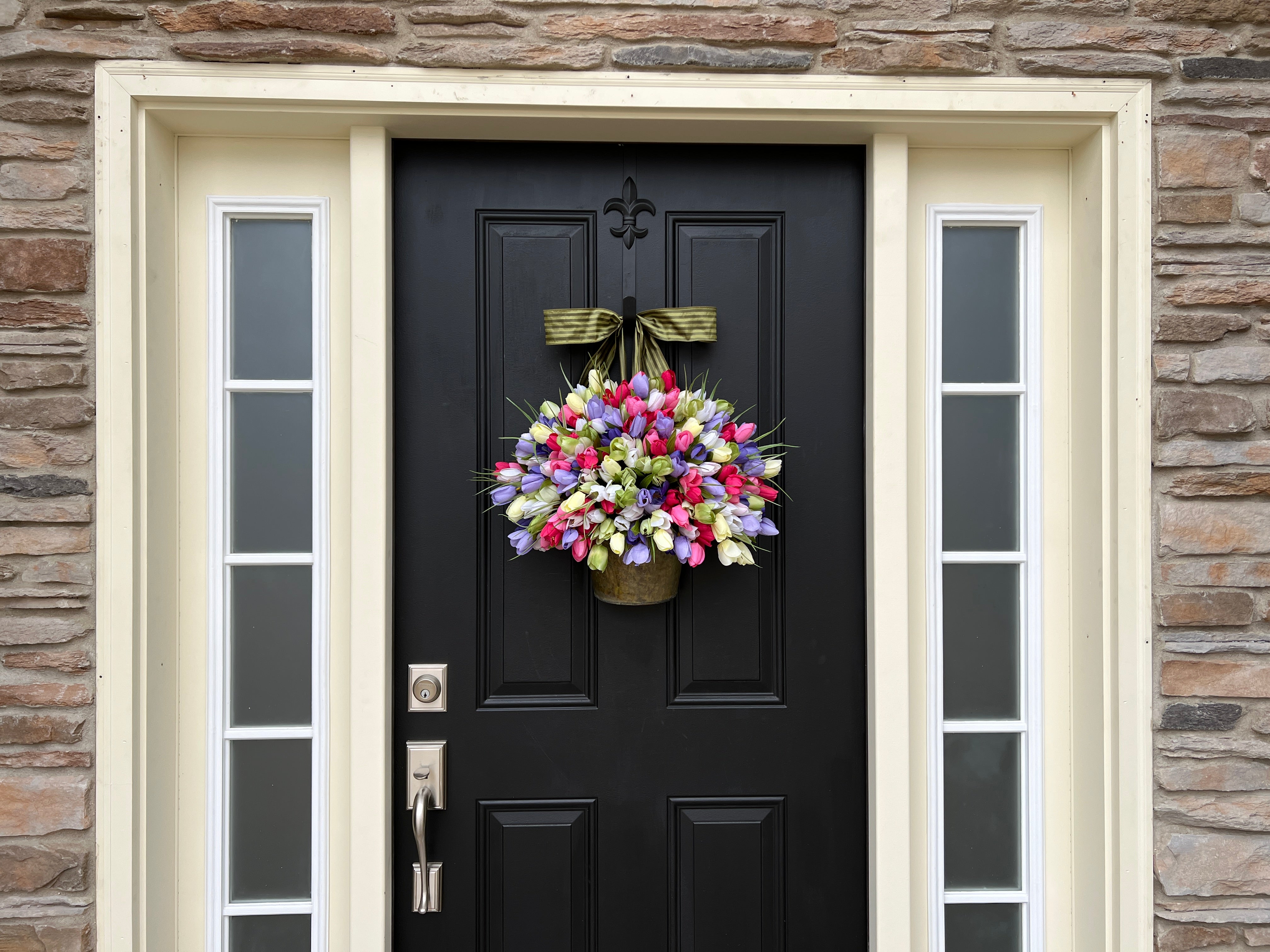 Celebration Front Door Bucket Wreath - Faux Tulip Decor for Spring