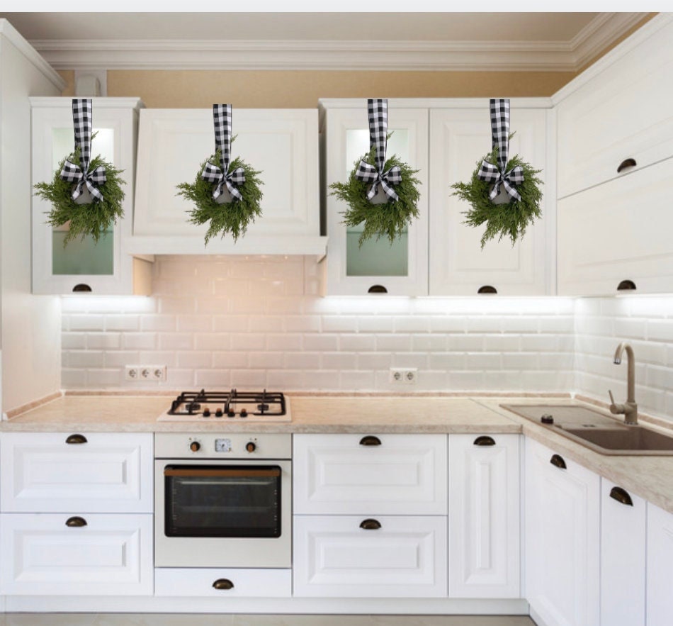 These mini winter wreaths are functional as wreaths for cabinets, wreaths for chairs, and even mini wreaths for windows. These small wreaths are the perfect farmhouse decor to give you the warm and cozy farmhouse Christmas this holiday season. the evergreen wreaths are also great as wall hangings to add a touch of greenery to any wall decor.