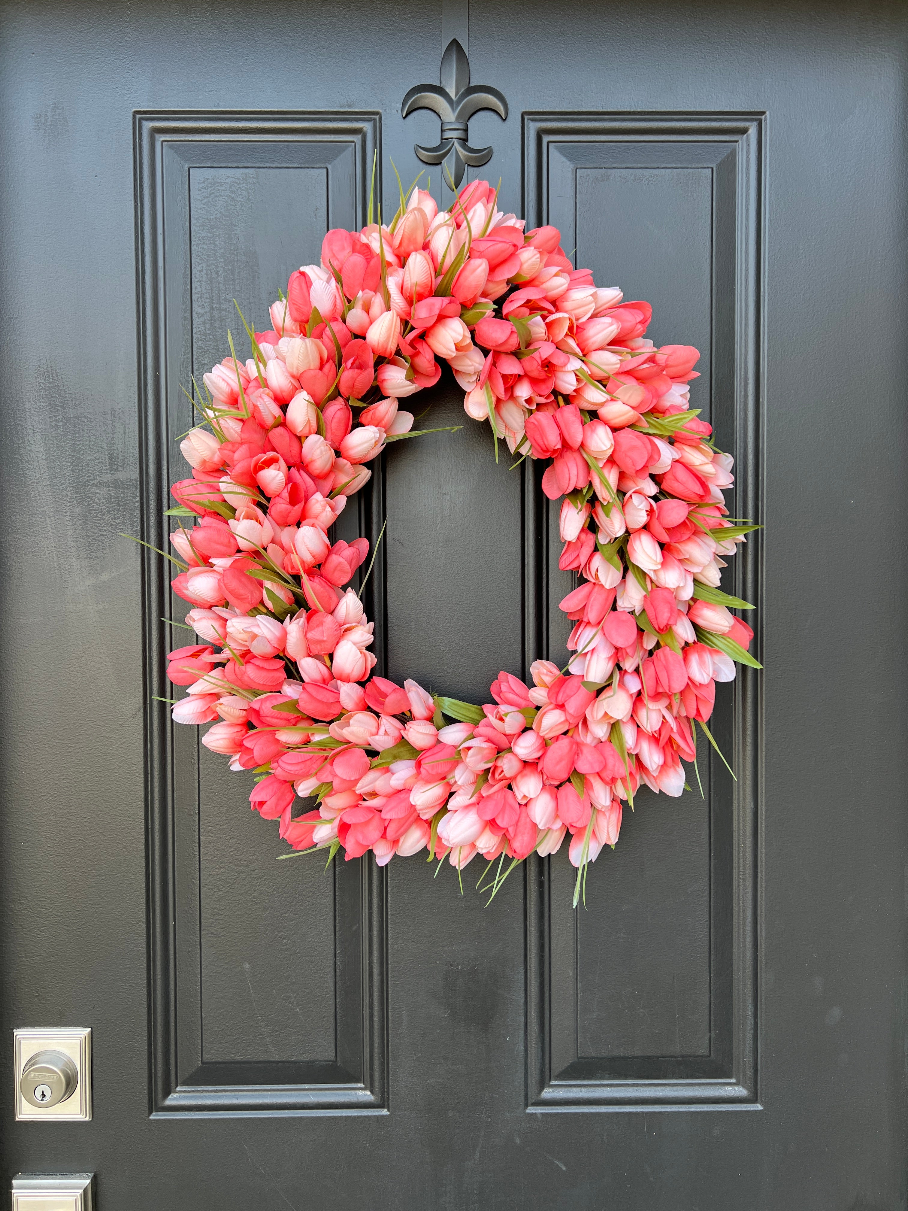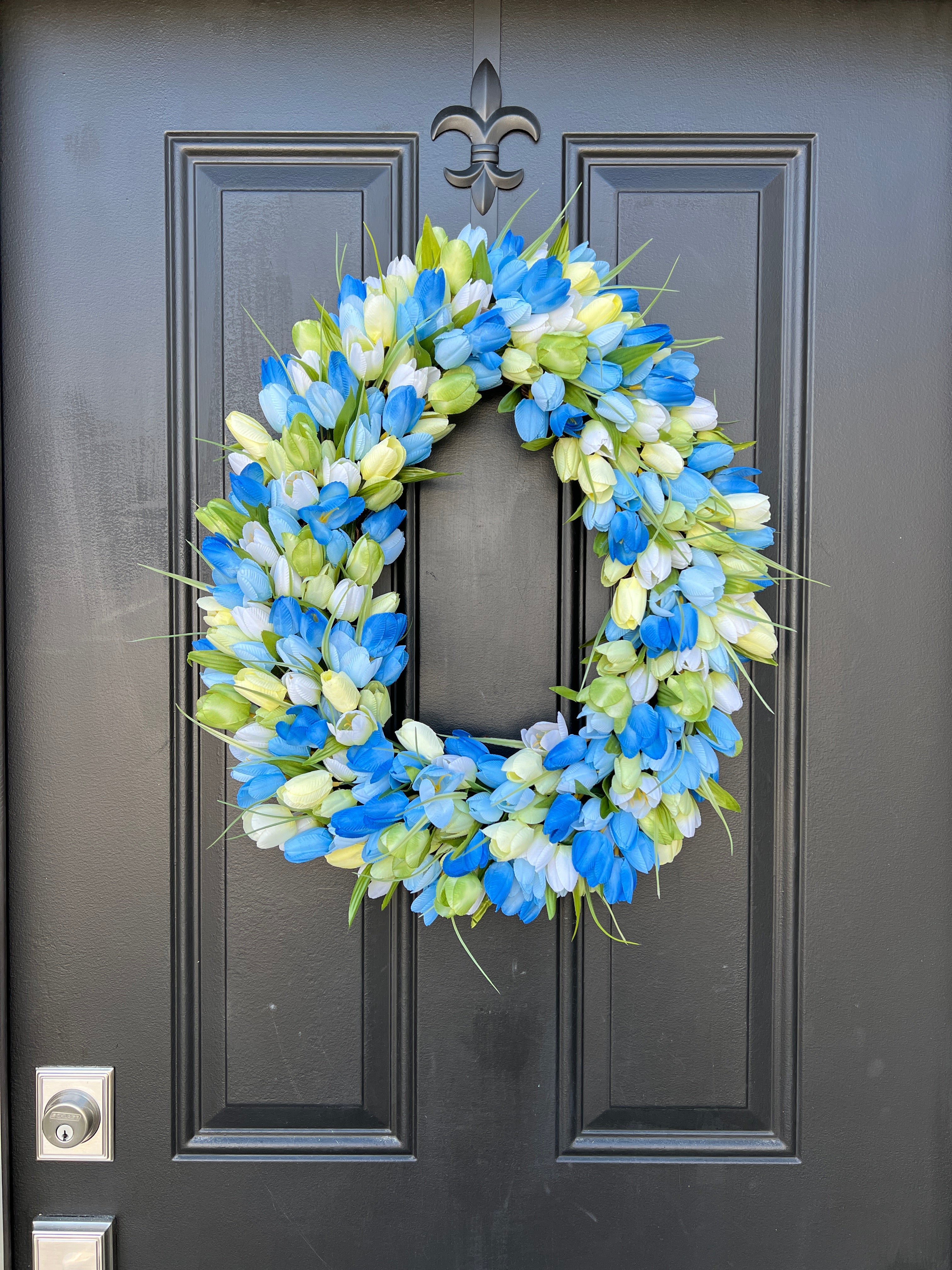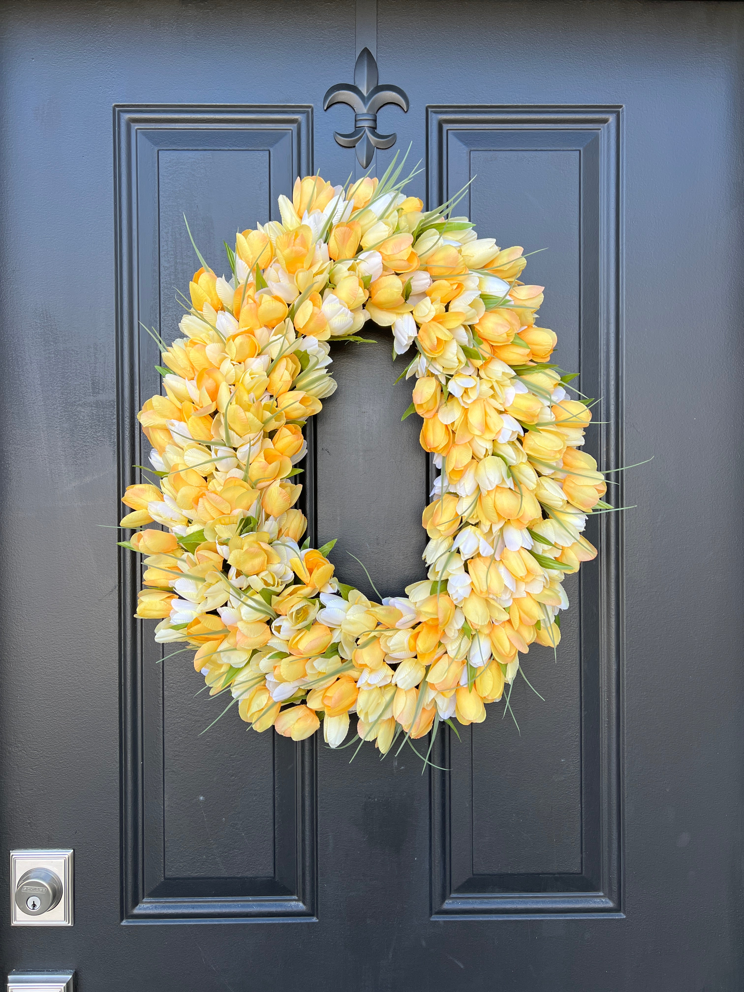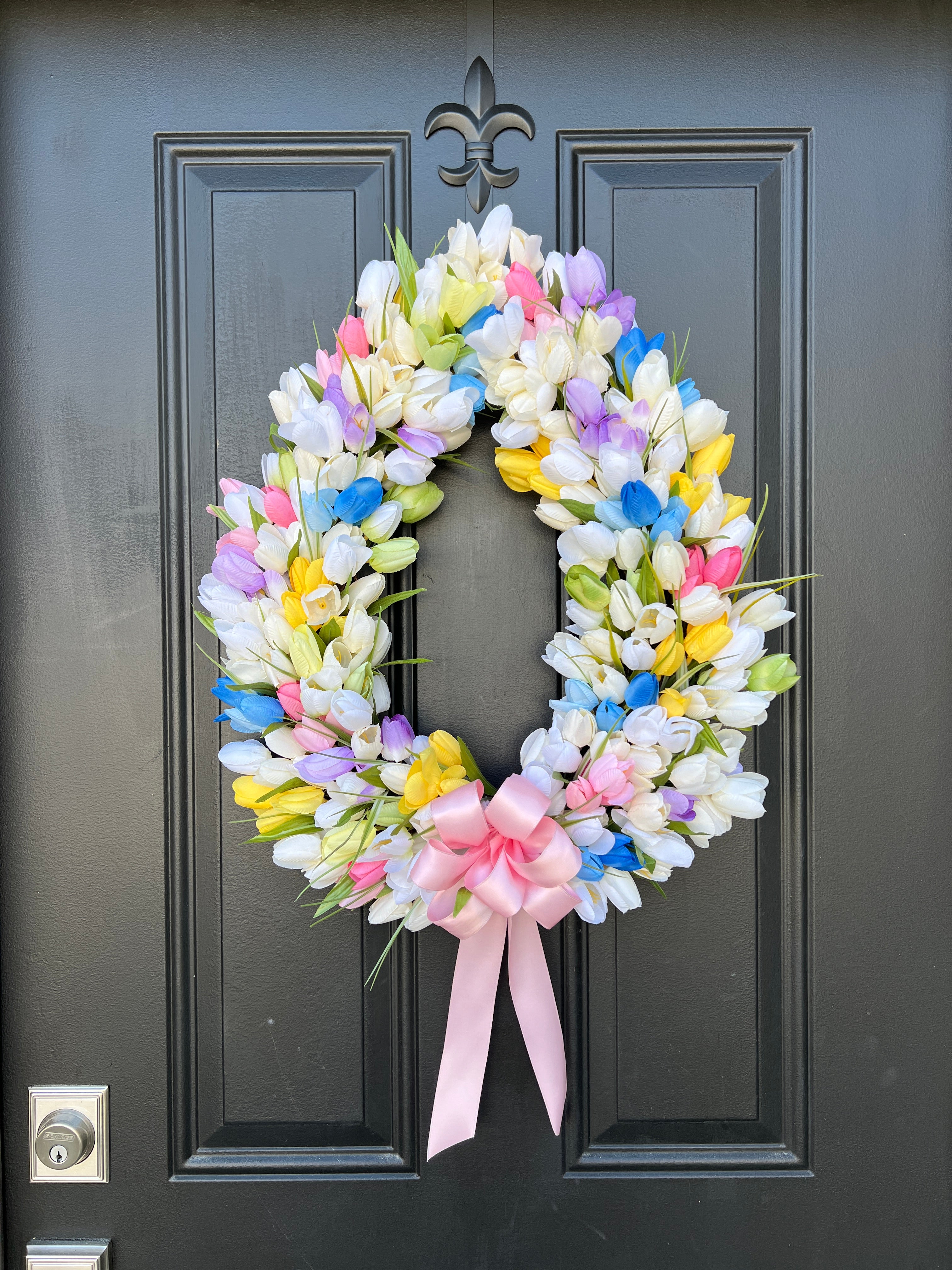 • Easter Egg Front Door Wreath - 24 Length | Handmade Faux Tulip Design