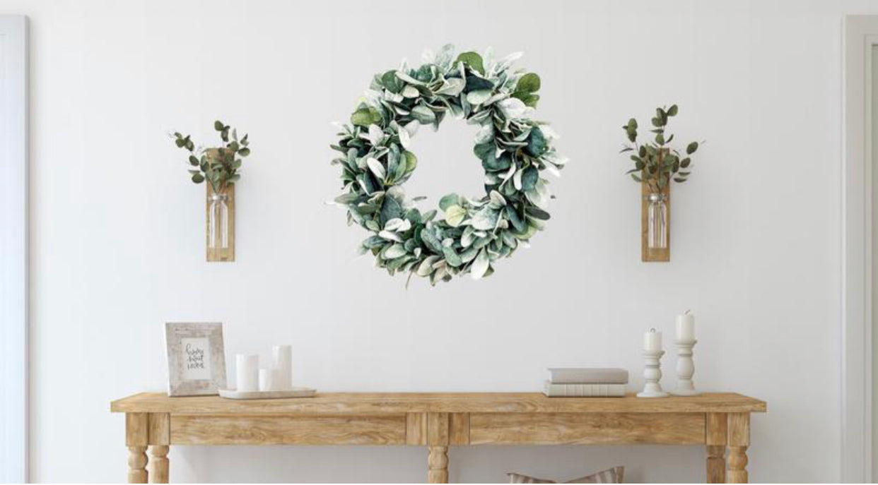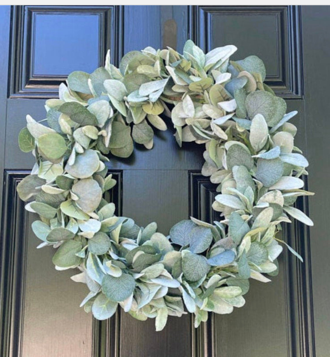 This eucalyptus and lambs ear wreath will bring style and greenery to your home. This farmhouse wreath functions as a front door wreath or as indoor wall decor to add greenery and texture to any room’s wall decor . Welcome family, friends, and other guests home with this simple farmhouse wreath.