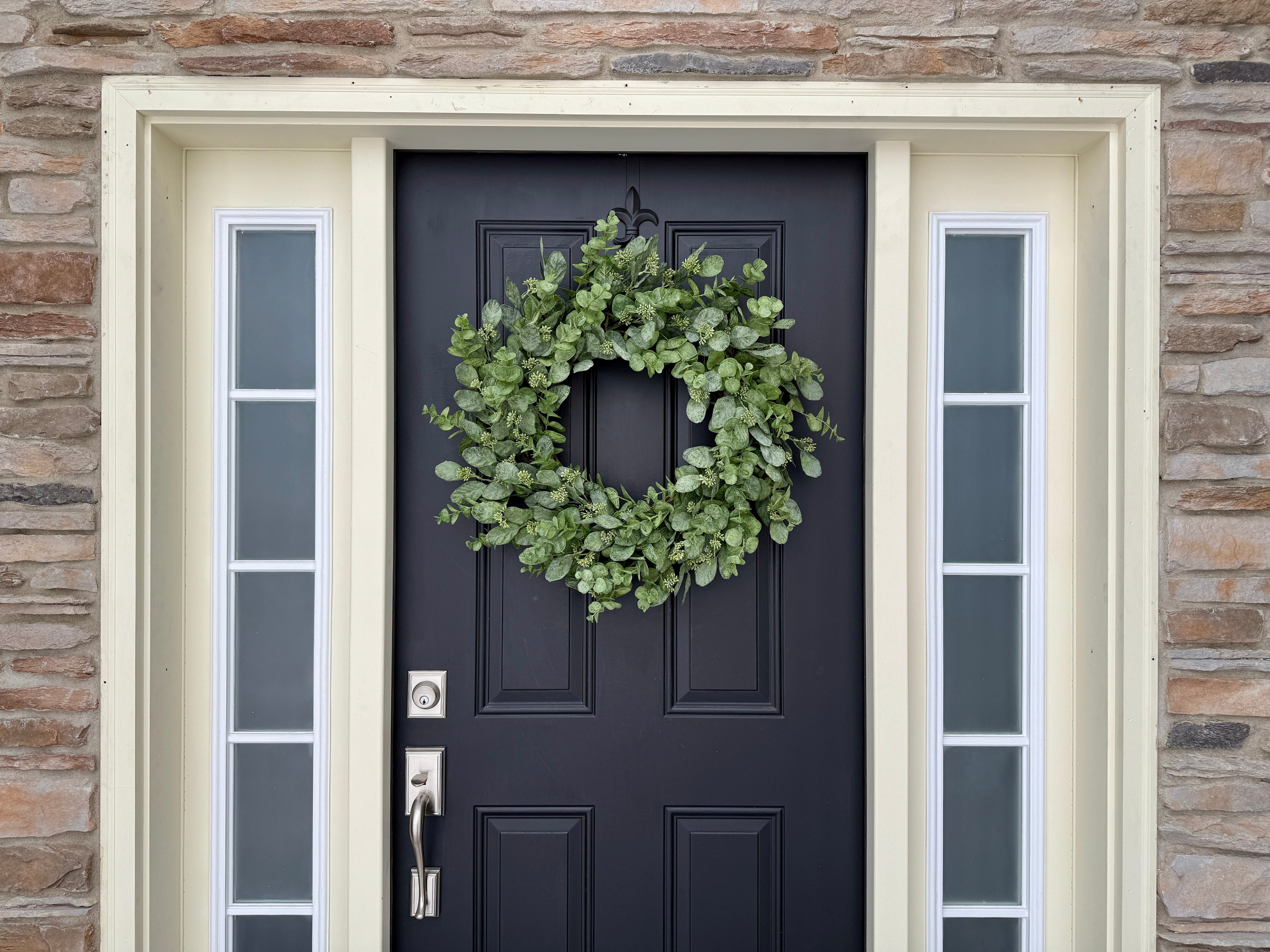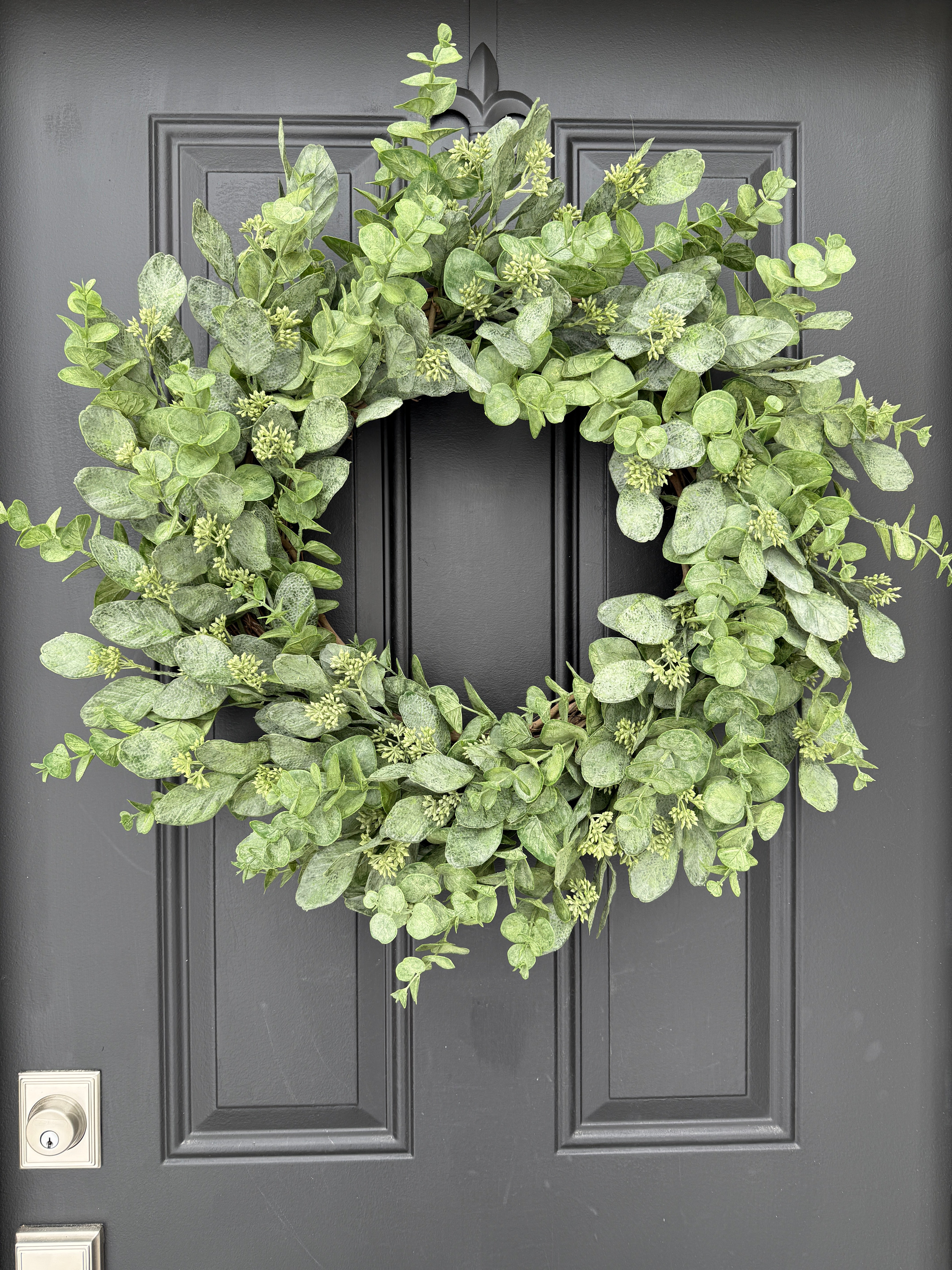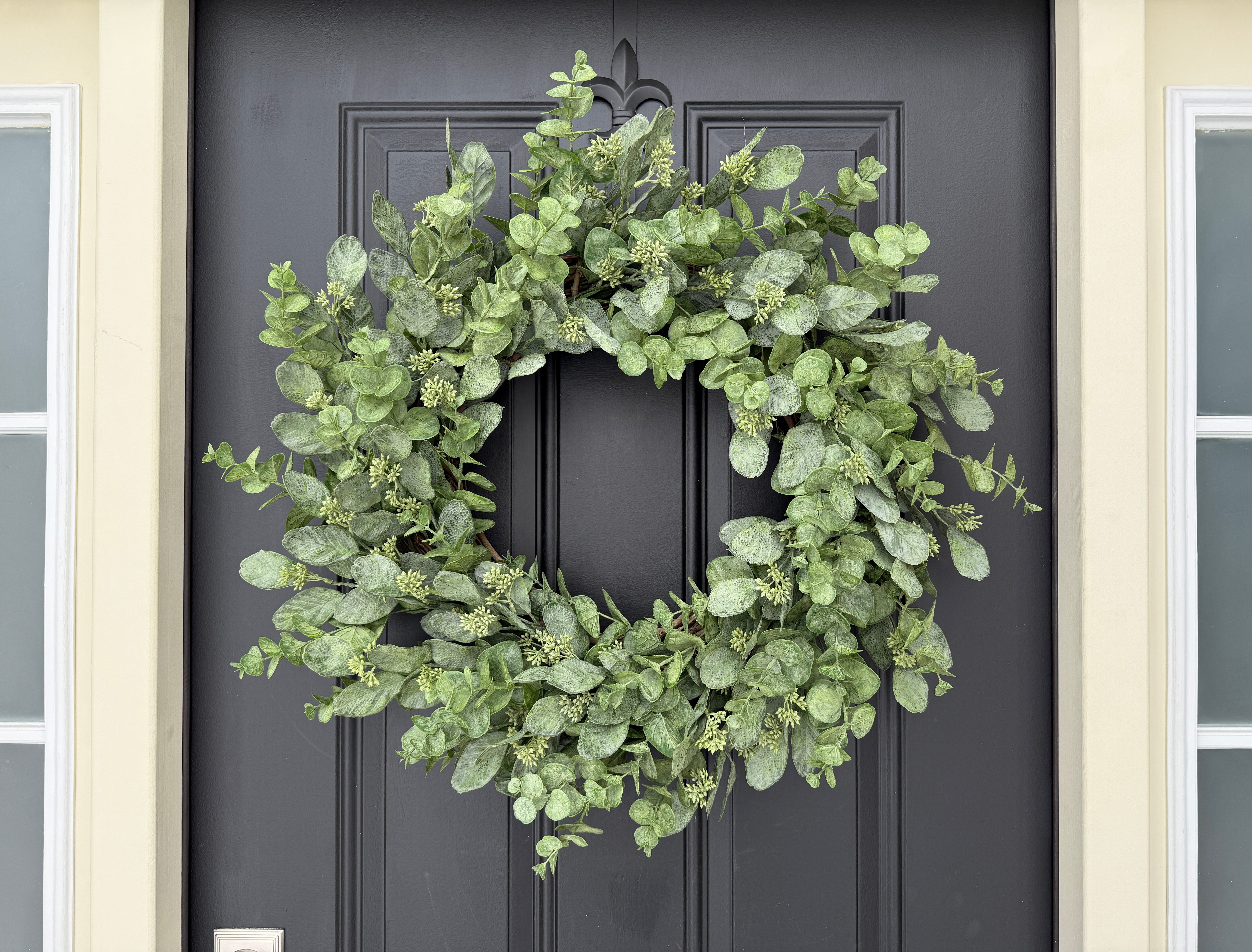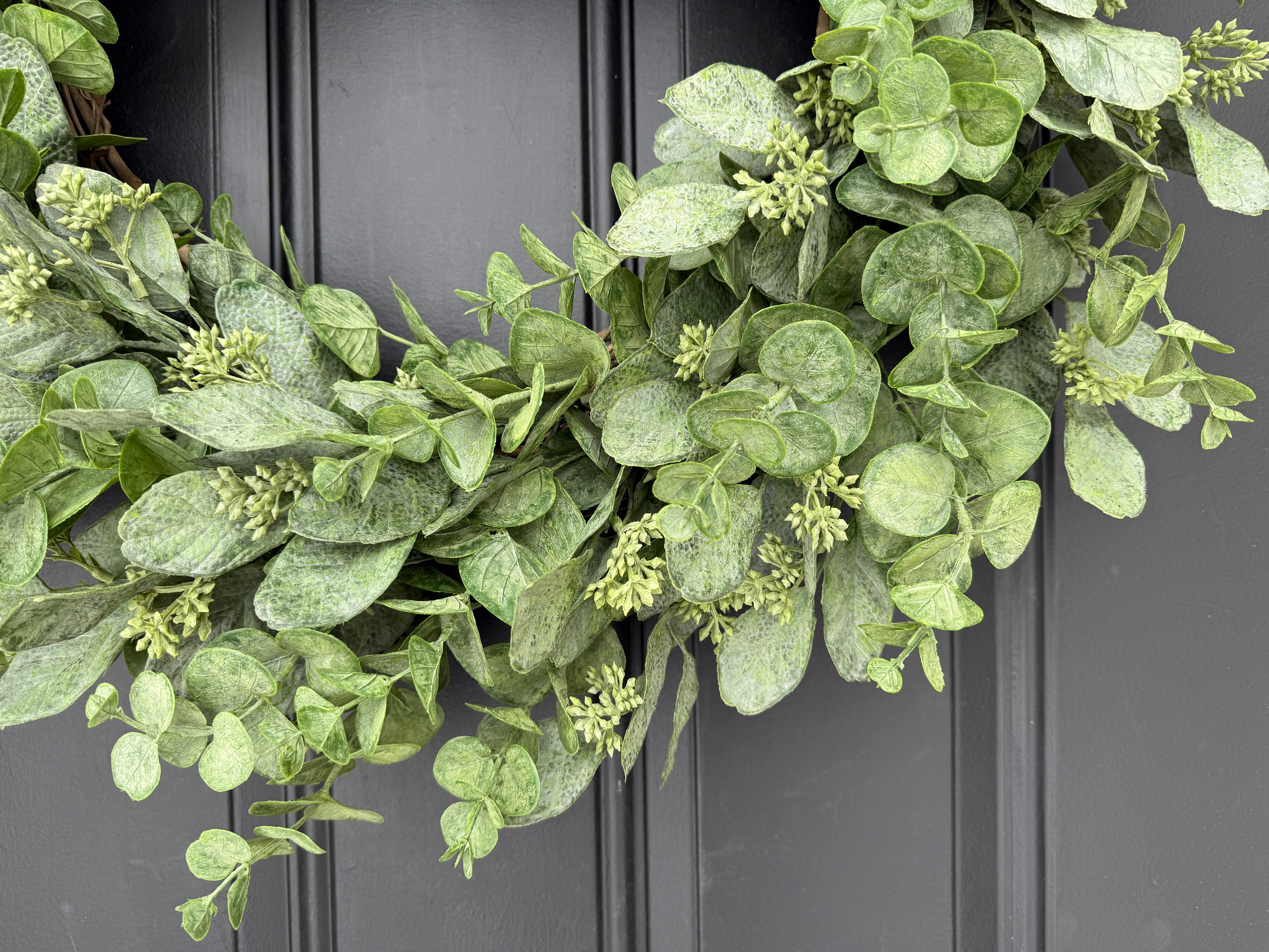 Enhance your home with the Eucalyptus Wreath – a stunning piece of everyday greenery. Featuring natural touch eucalyptus leaves, this modern, lush wreath brings a fresh touch to your front door or indoor space. Perfect for adding a simple yet sophisticated look to your decor, it works beautifully in both indoor and outdoor settings. The vibrant green leaves offer a timeless, calming aesthetic, ideal for year-round use. Celebrate nature’s beauty with this versatile and durable wreath, perfect for any home or season.