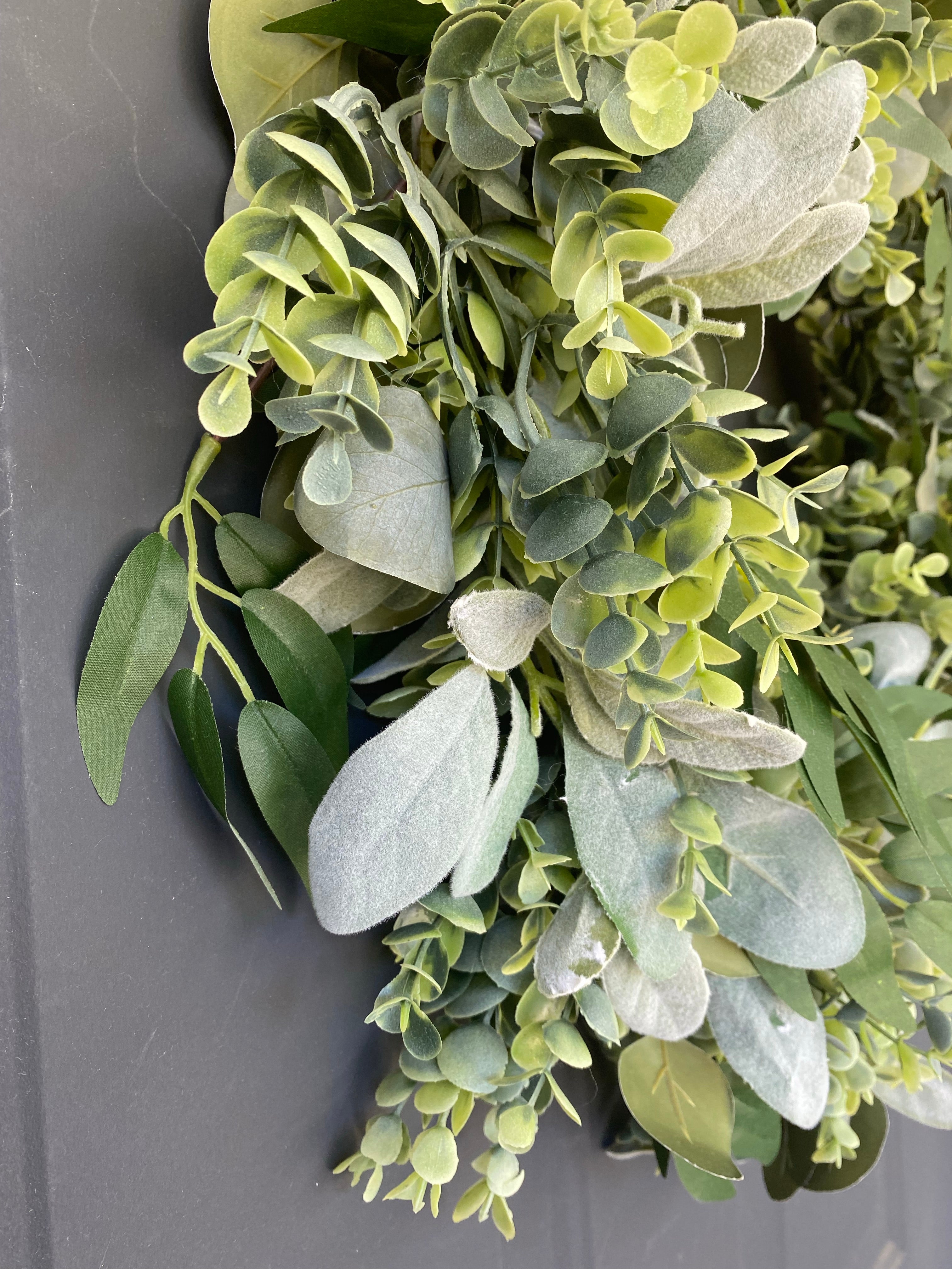 🌿This wreath is made from faux eucalyptus greenery, faux lambs ears, and faux willow greenery