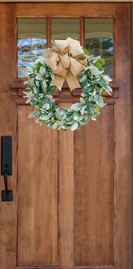 This lambs ear farmhouse wreath will bring style and greenery to your home. This wreath can be styled as a front door wreath or even as mantle decor. Accented with a simple burlap bow. This wreath functions as a front door wreath or as indoor wall decor to add greenery to any room. Welcome family, friends, and other guest home with this simple farmhouse wreath.