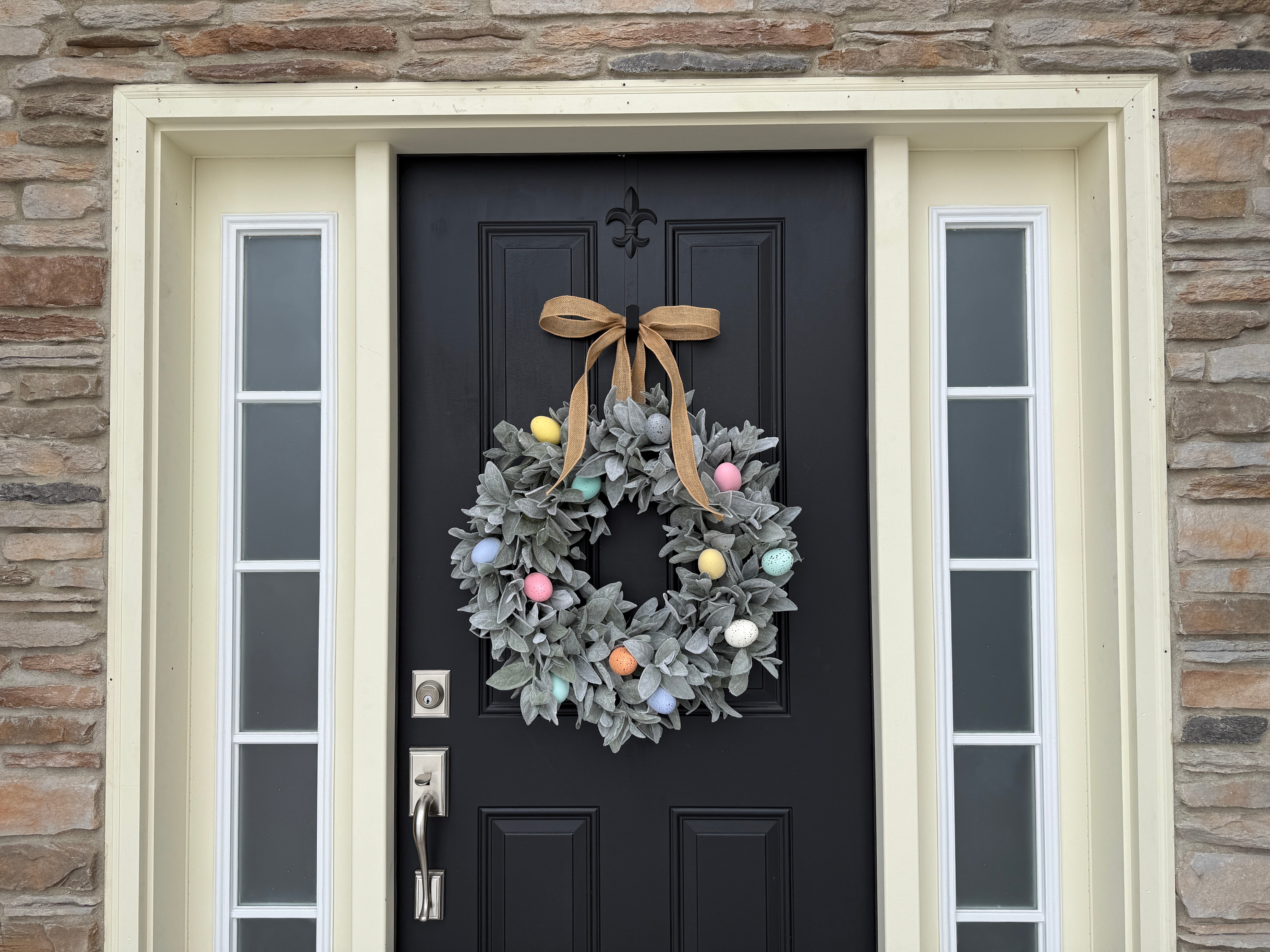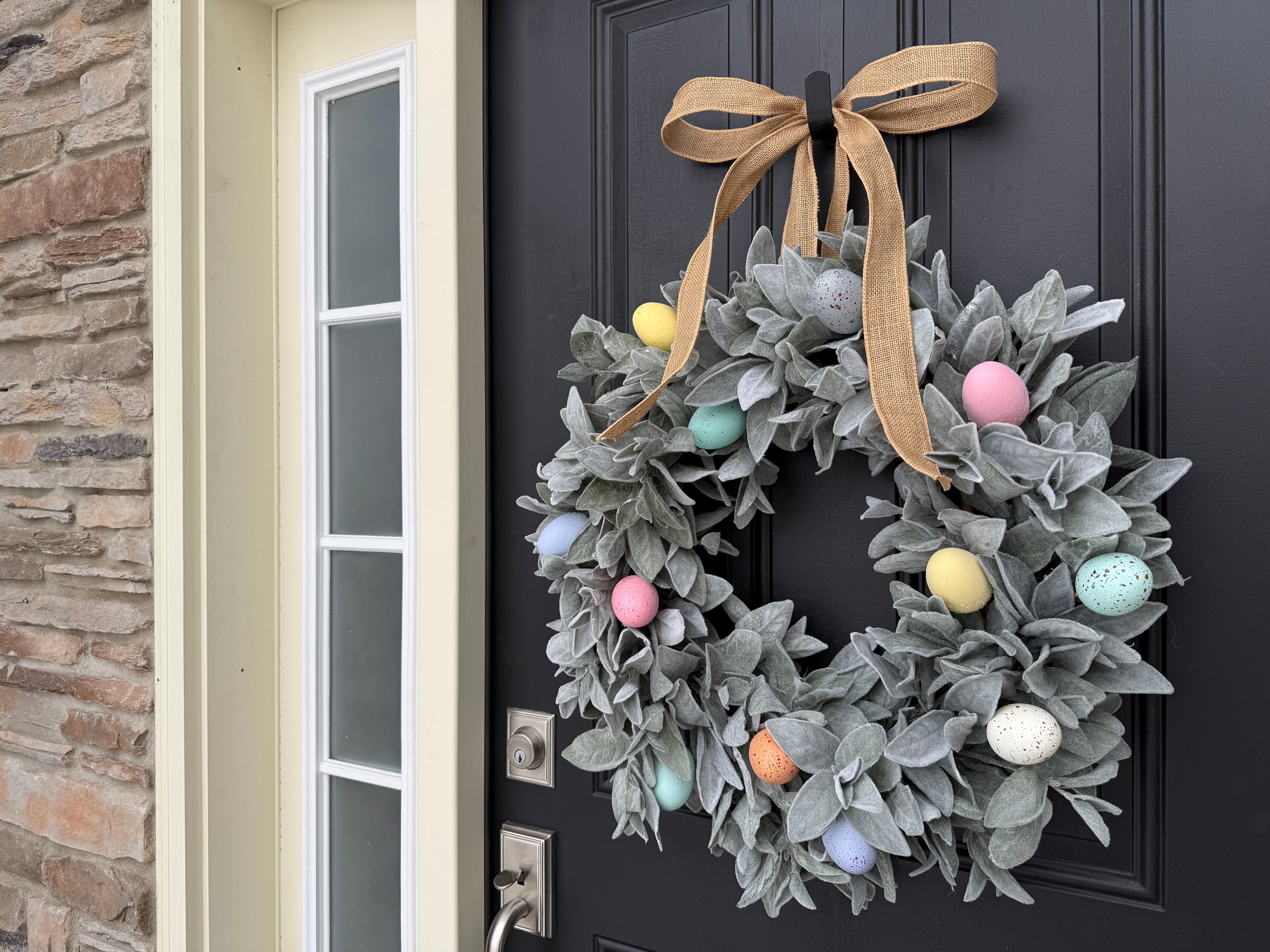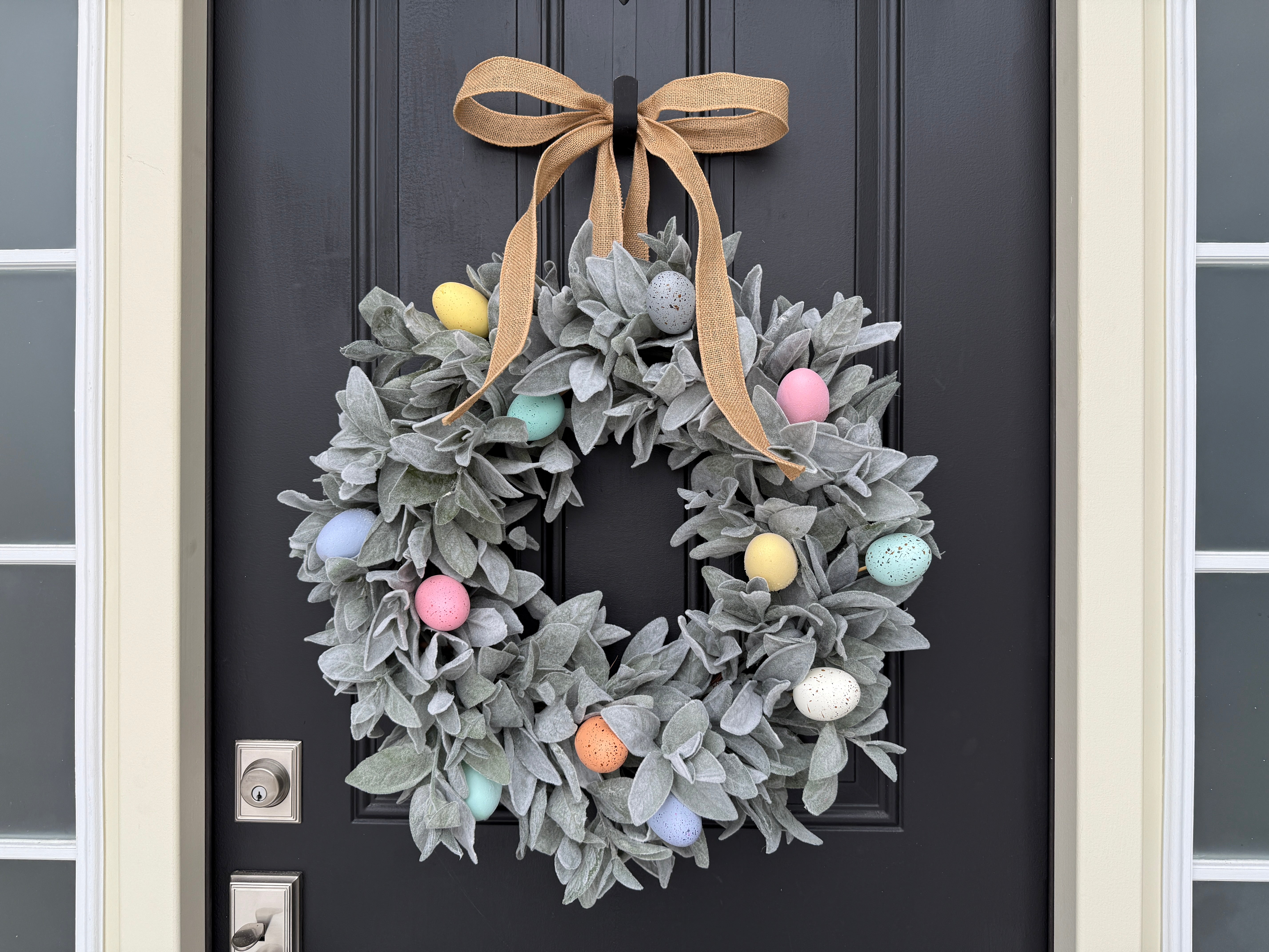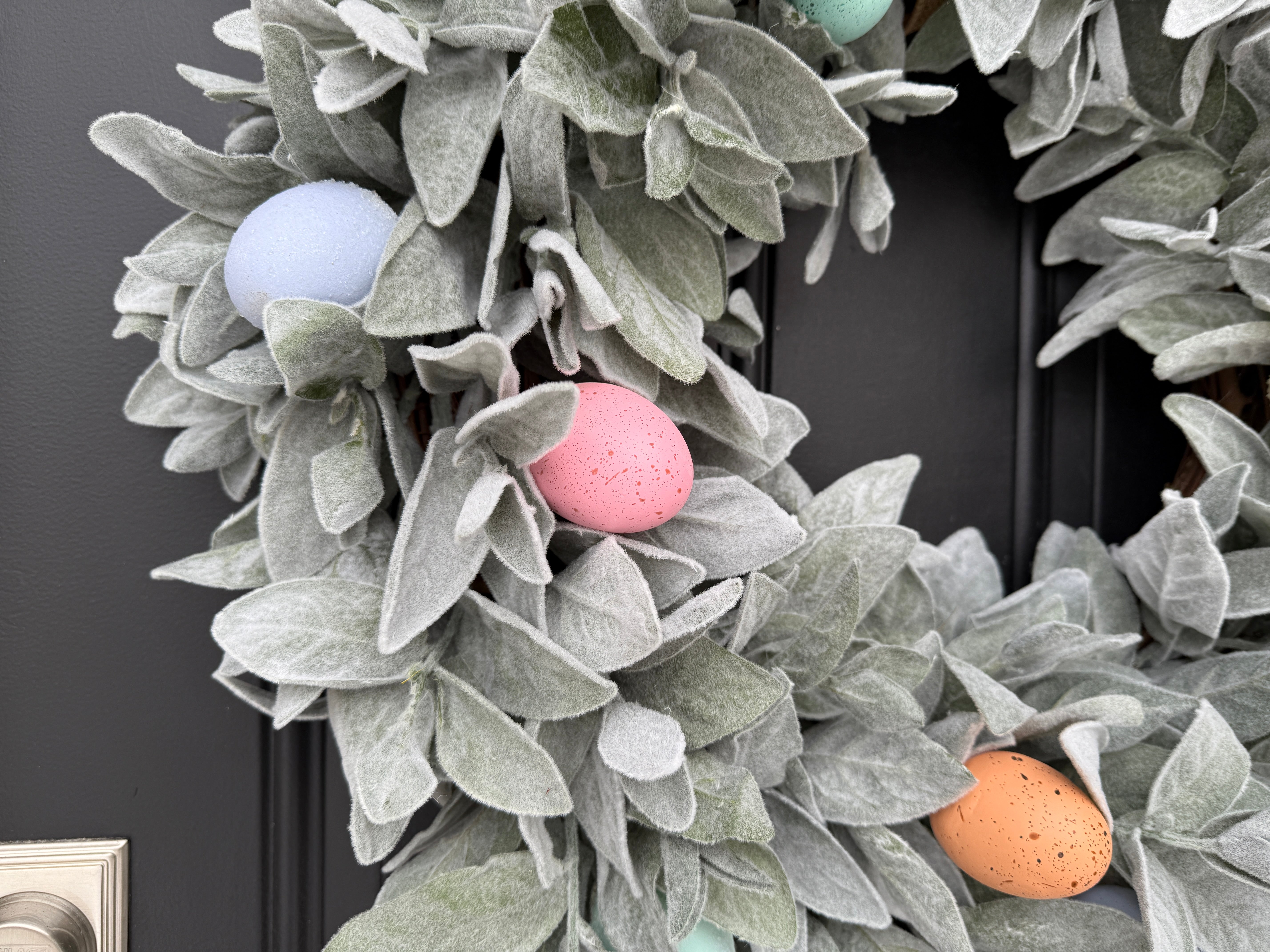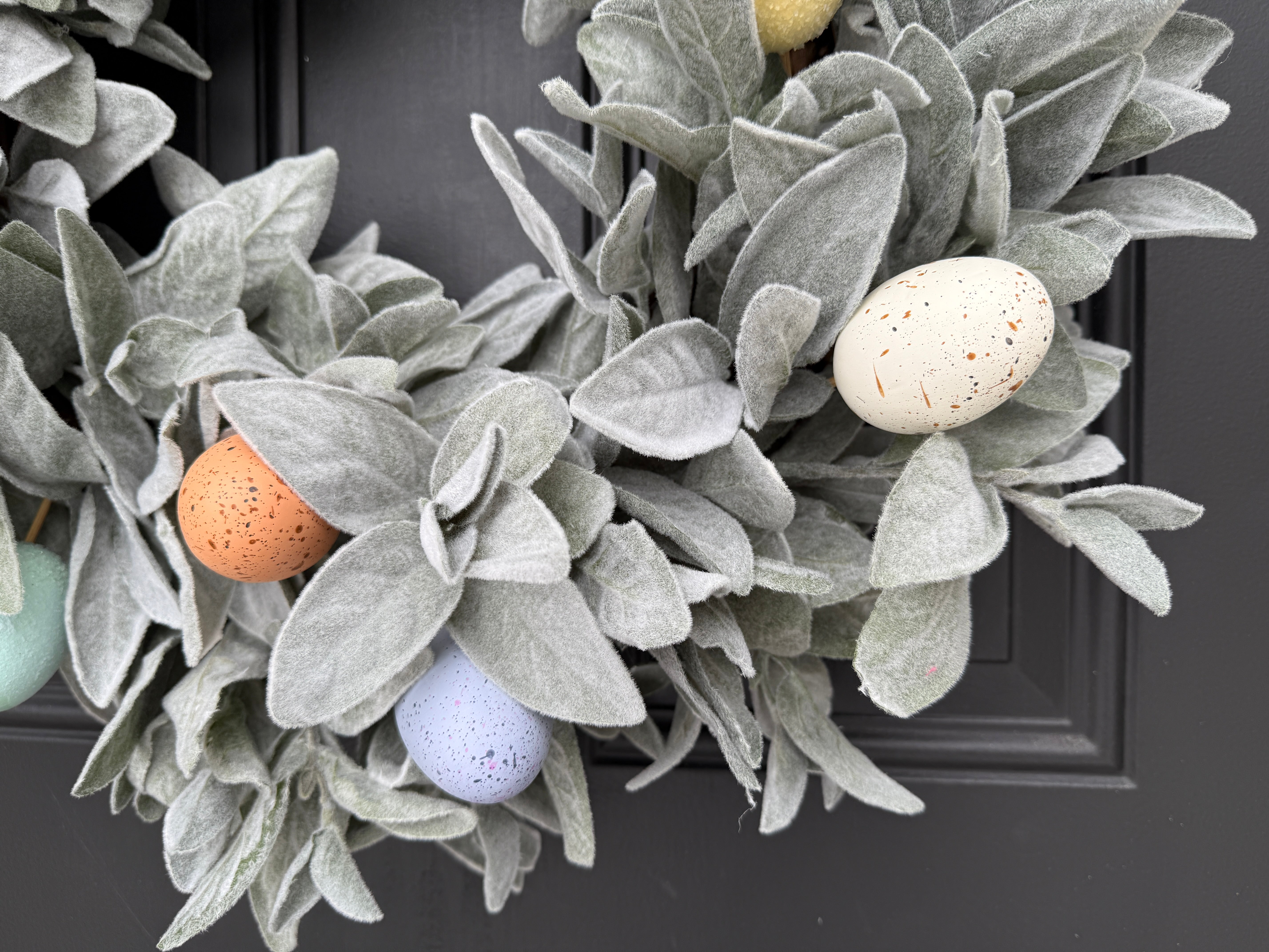 Add a touch of spring to your home with this Pastel Easter Egg Wreath with Lamb's Ear, a perfect blend of soft pastel colors and lush greenery. Nestled in the lush faux Lamb's Ear, our realistic Easter eggs are waiting for you to find them! This wreath brings a fresh and festive touch to any door, wall, or mantel for Easter.