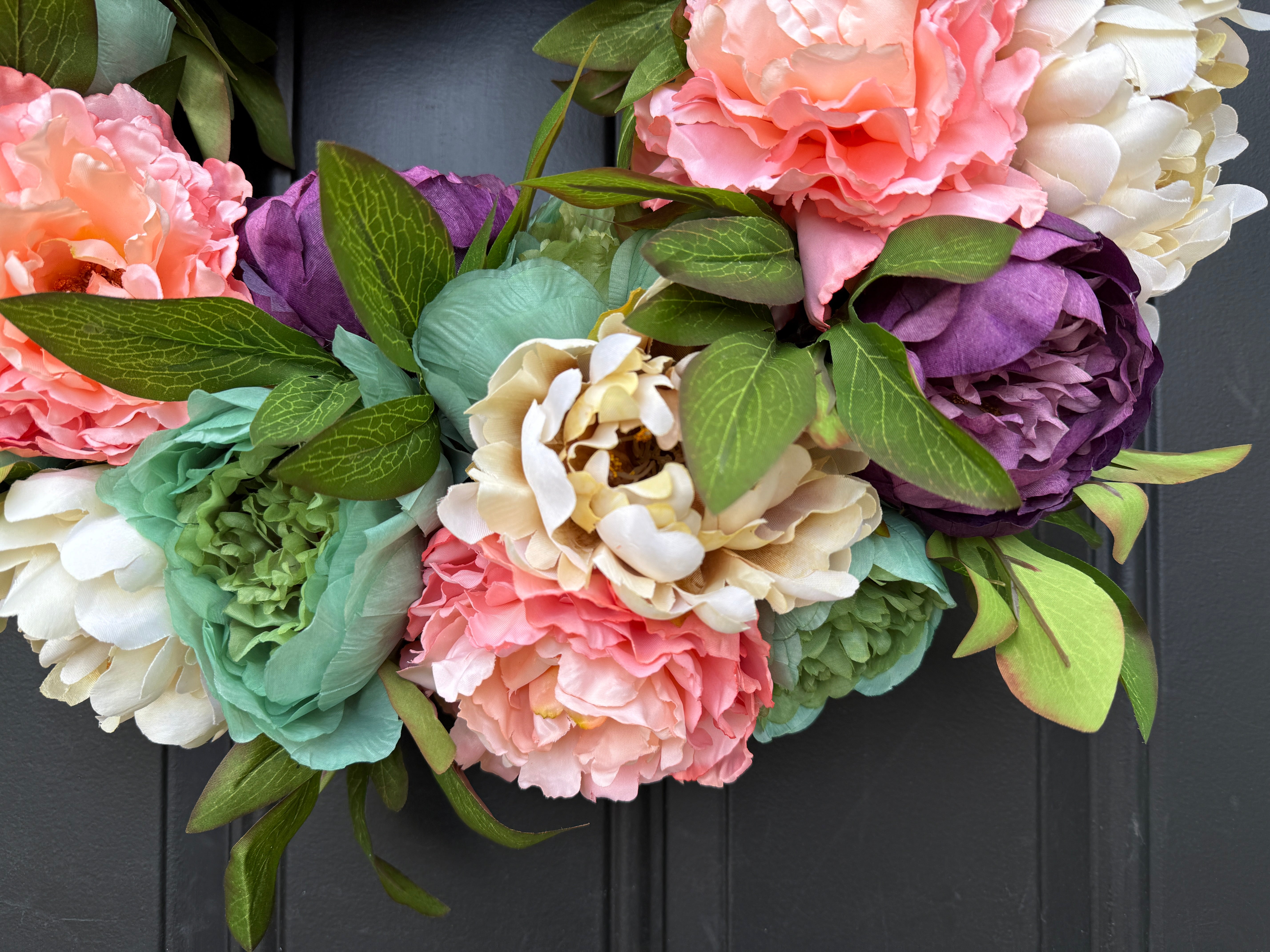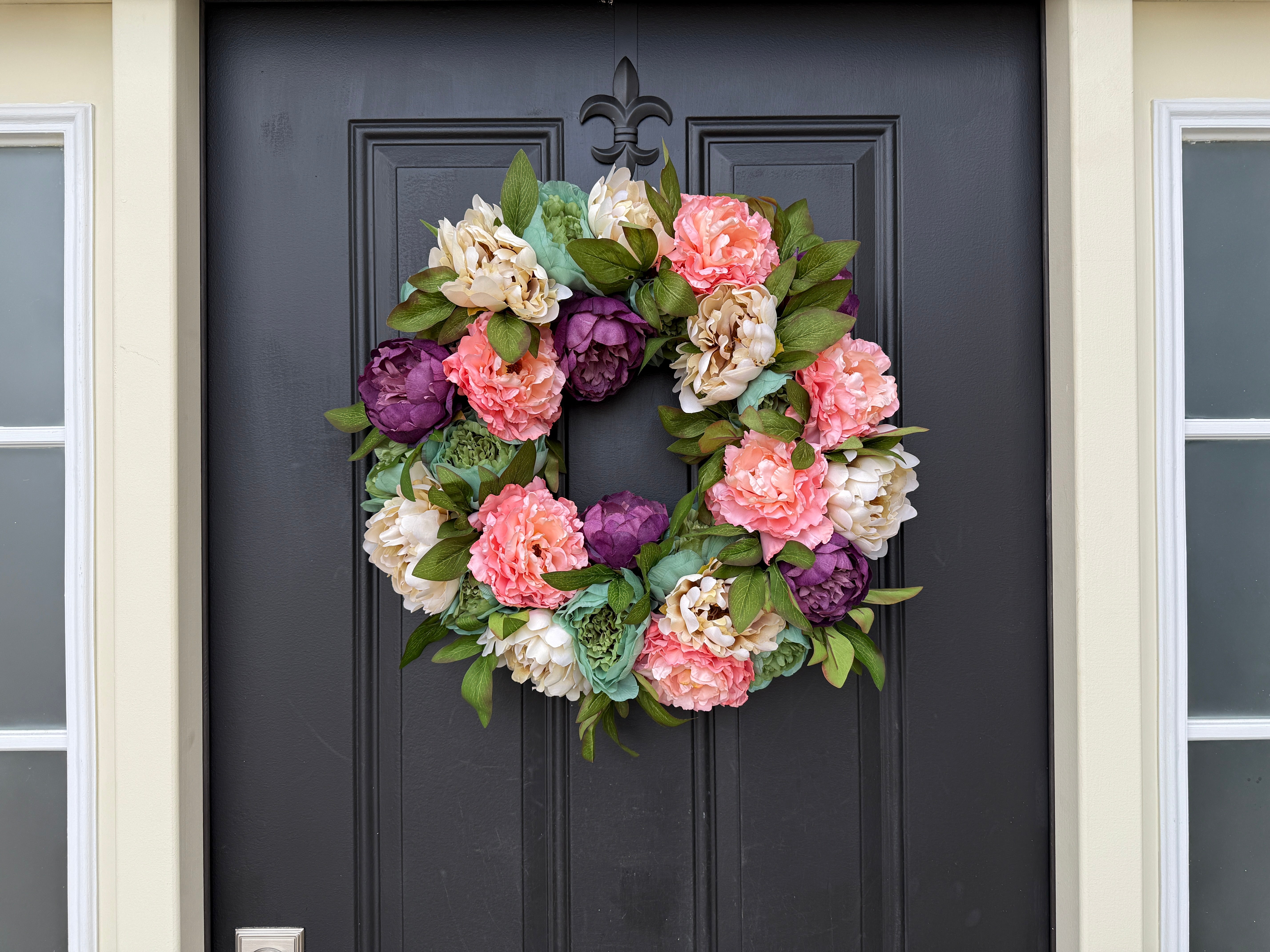 Celebrate the season of renewal with our Peony Spring Wreath. Designed for your front door, this beautiful wreath features vibrant, realistic peony blooms in purple, coral and cream, perfect for adding a touch of elegance and color to your entrance. Whether you're decorating for spring or enhancing your outdoor decor, this wreath brings fresh, natural beauty to your home’s exterior.