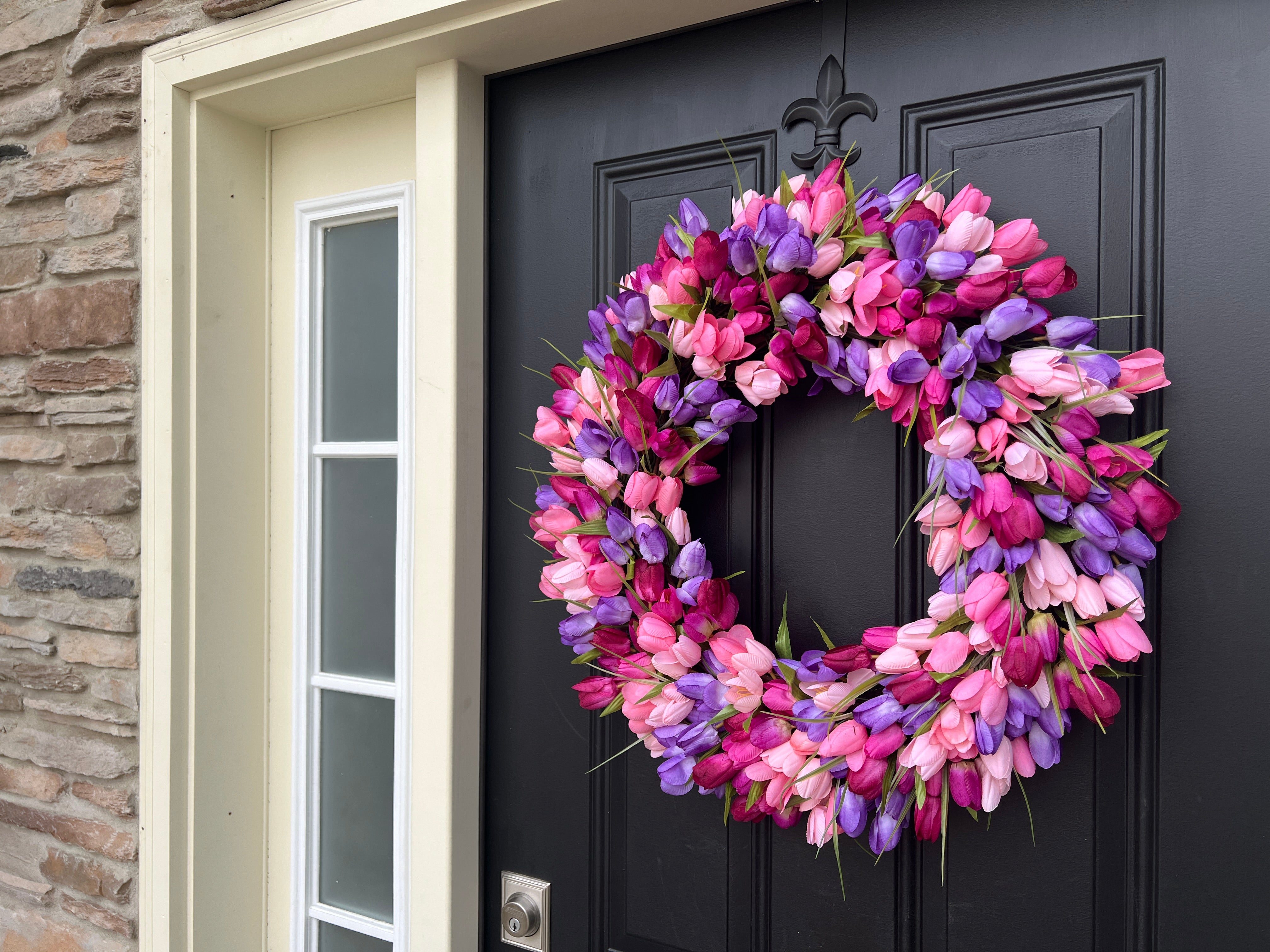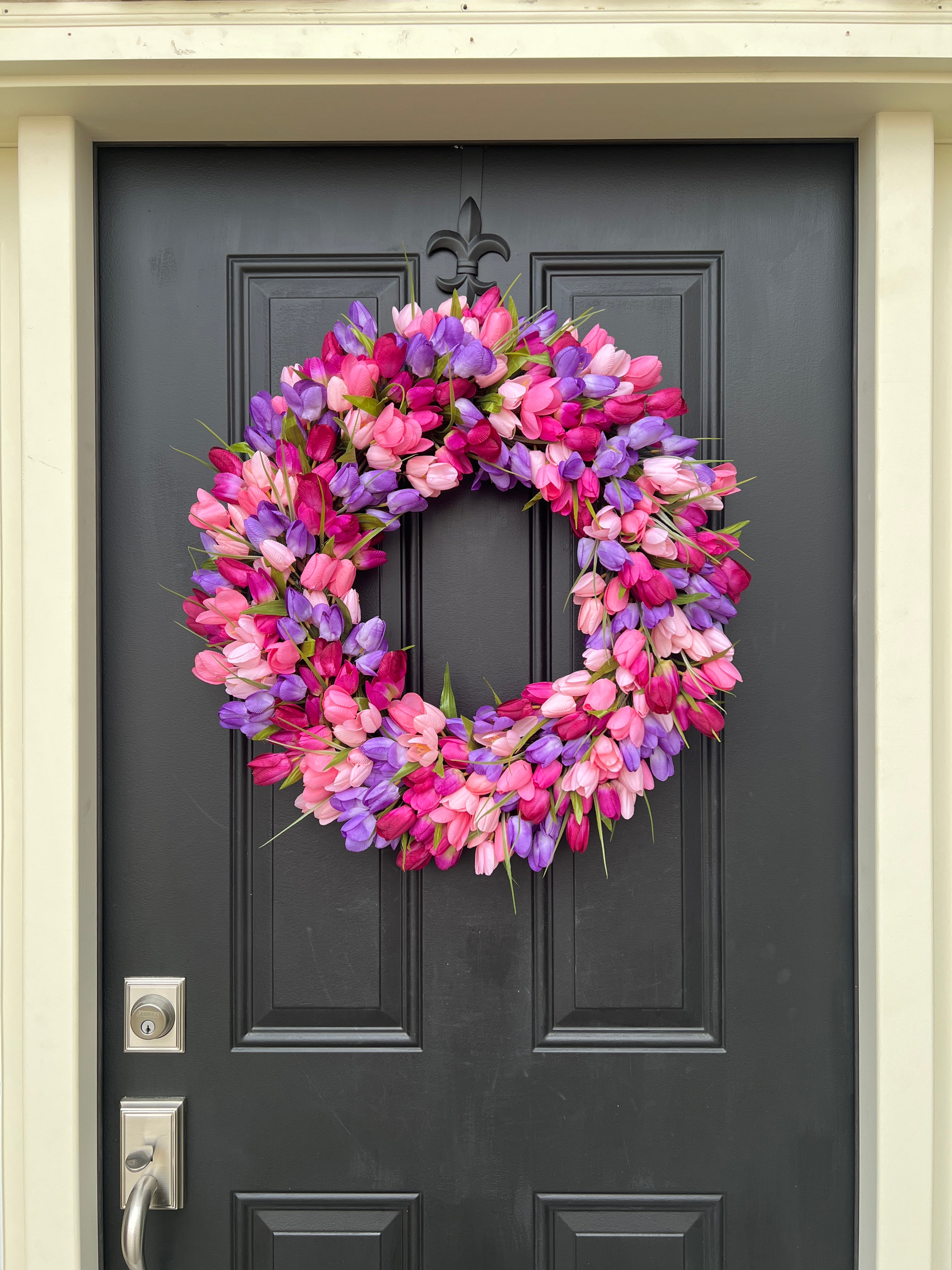 Pink and Purple Tulip Wreath for Spring, Front Door Wreath with Tulips