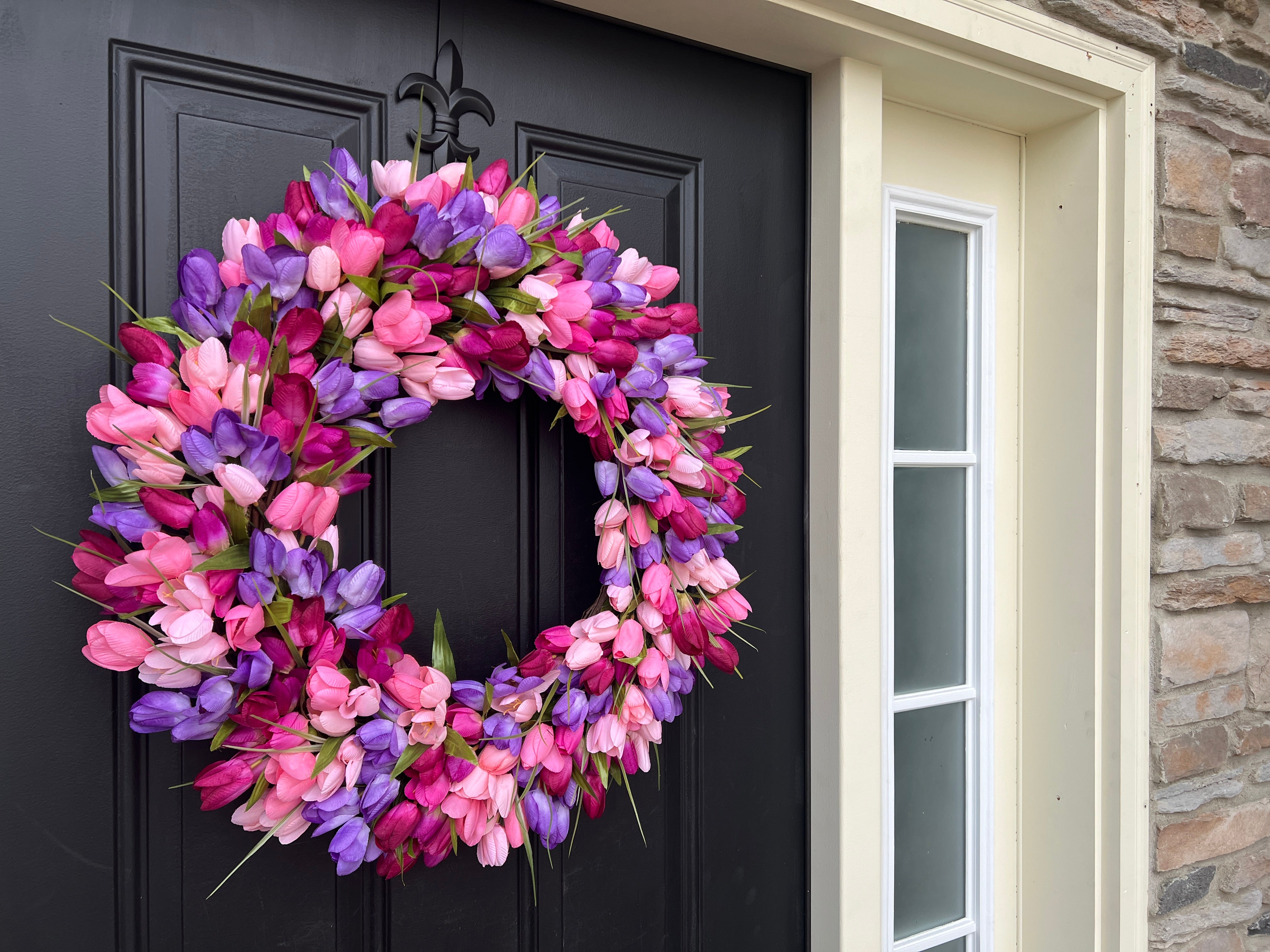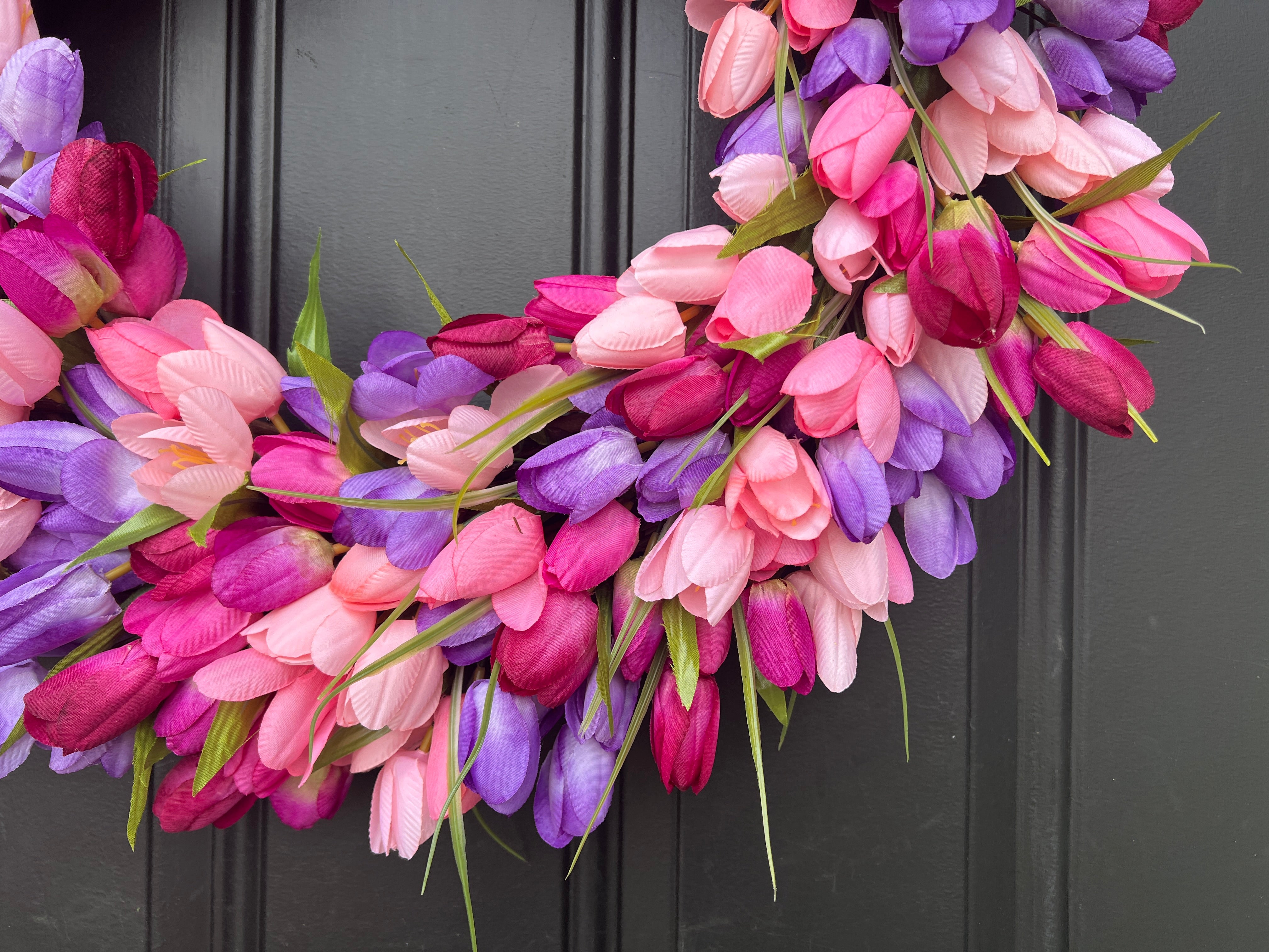 Pink and Purple Tulip Wreath for Spring, Front Door Wreath with Tulips