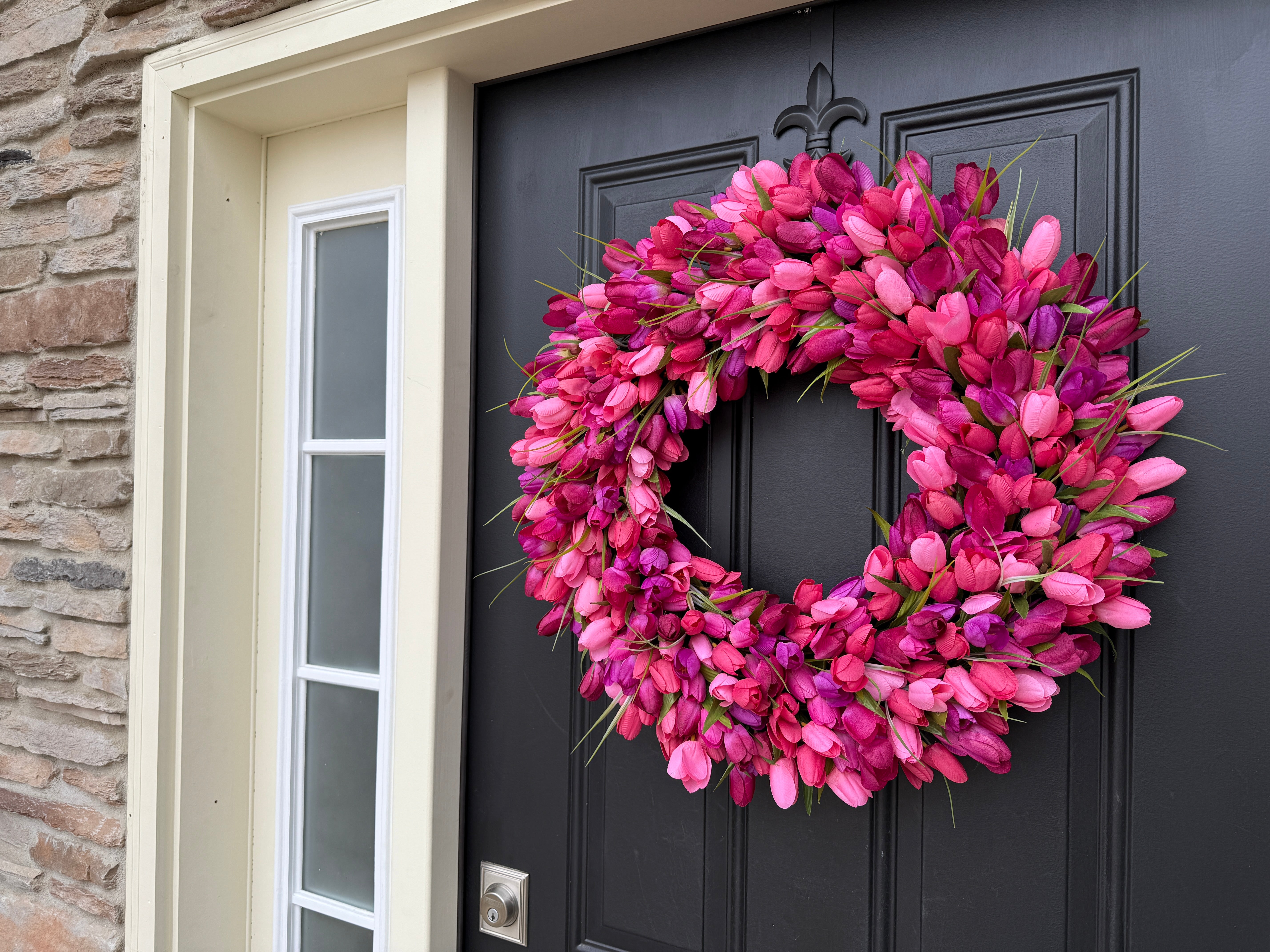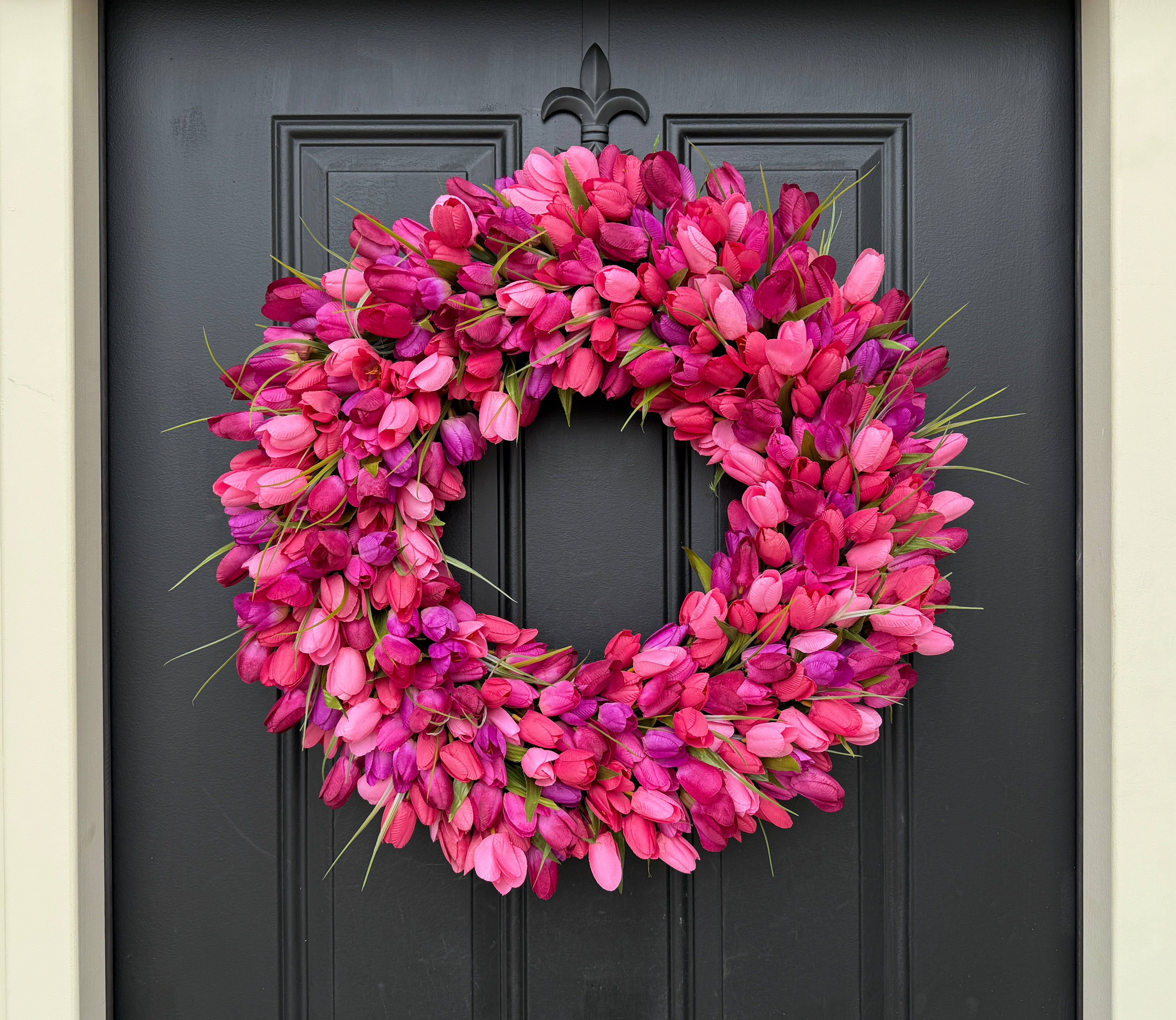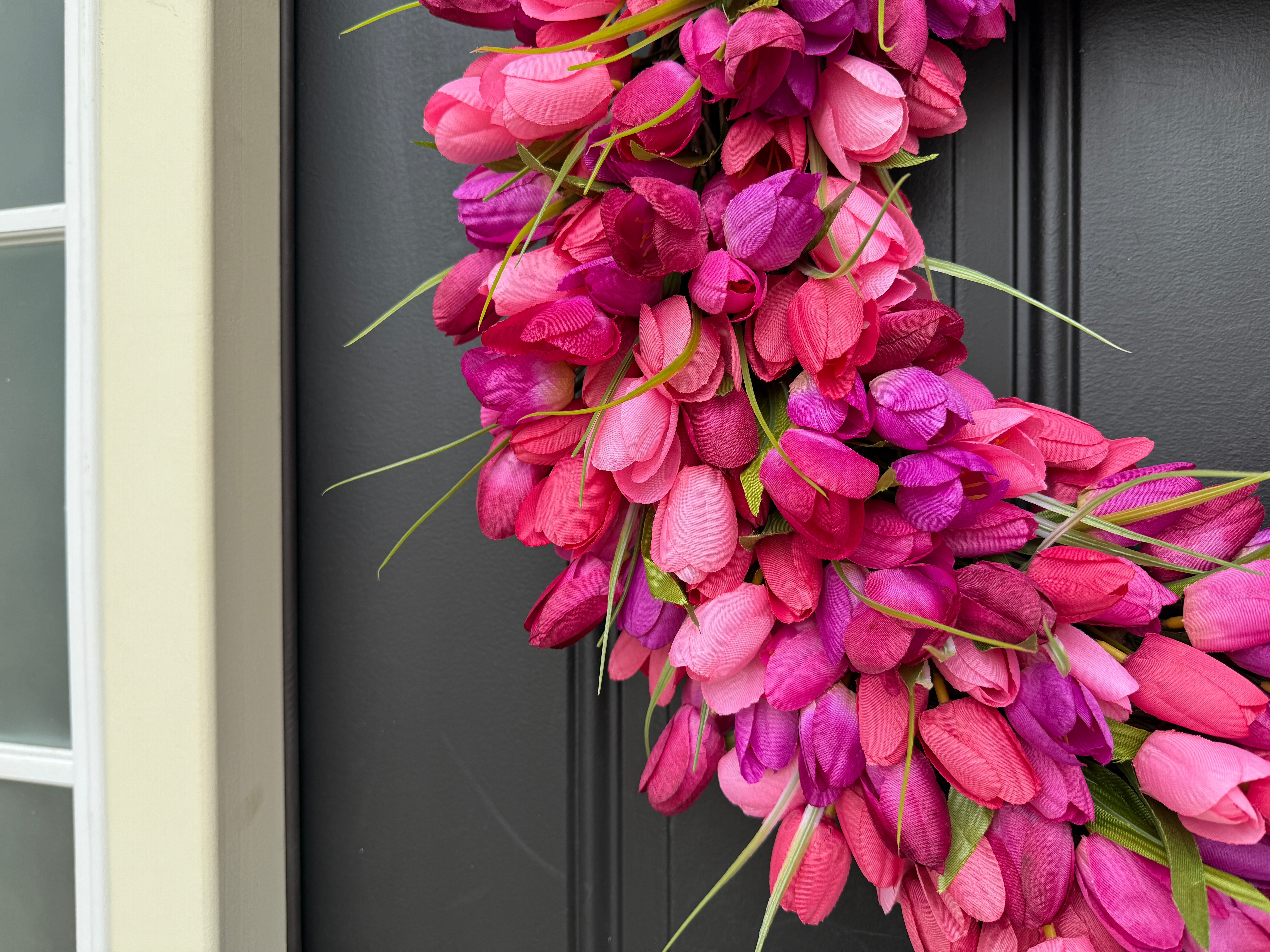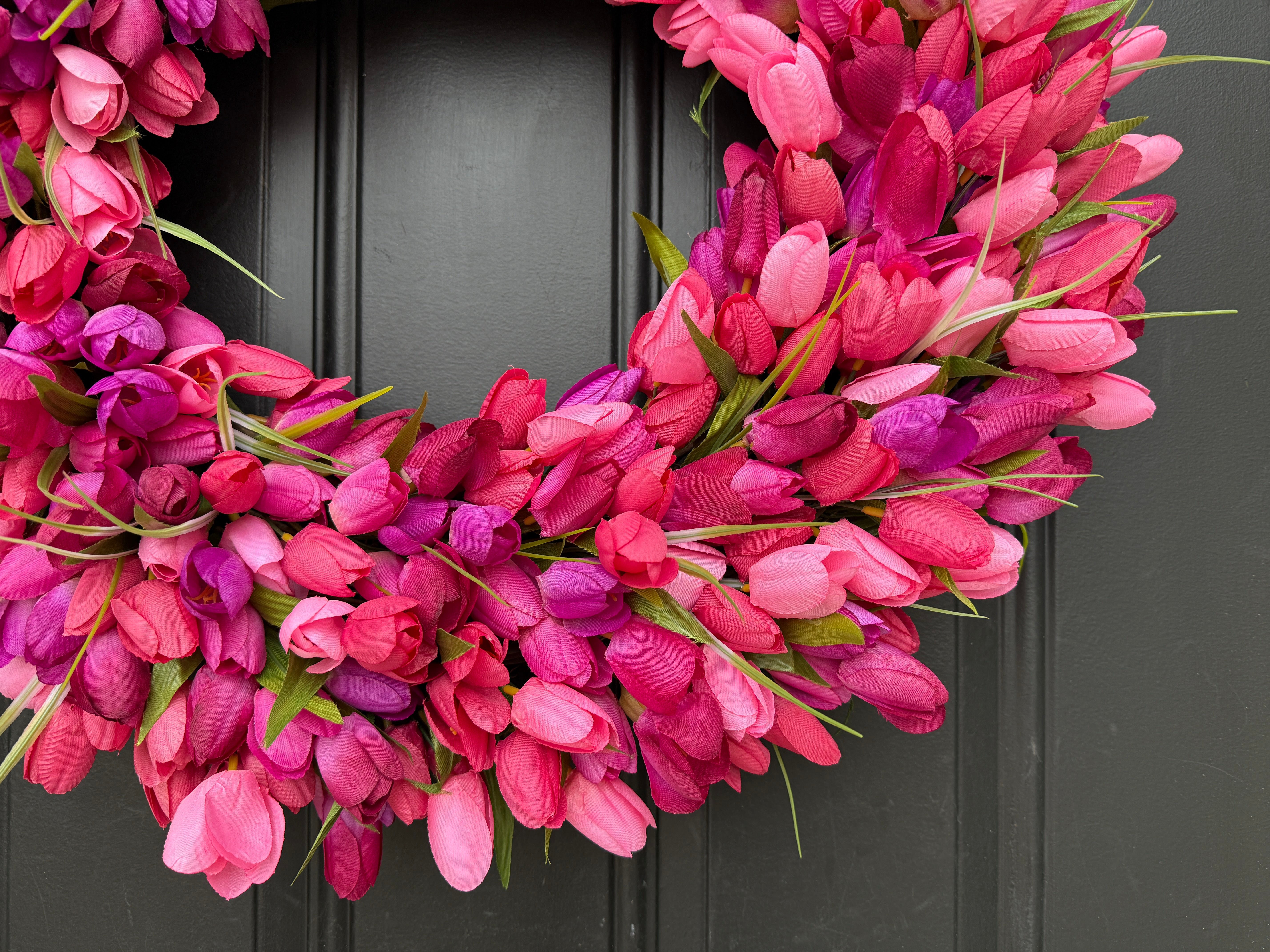 Pink and Purple Tulip Wreath - Spring Tulips Door Wreath