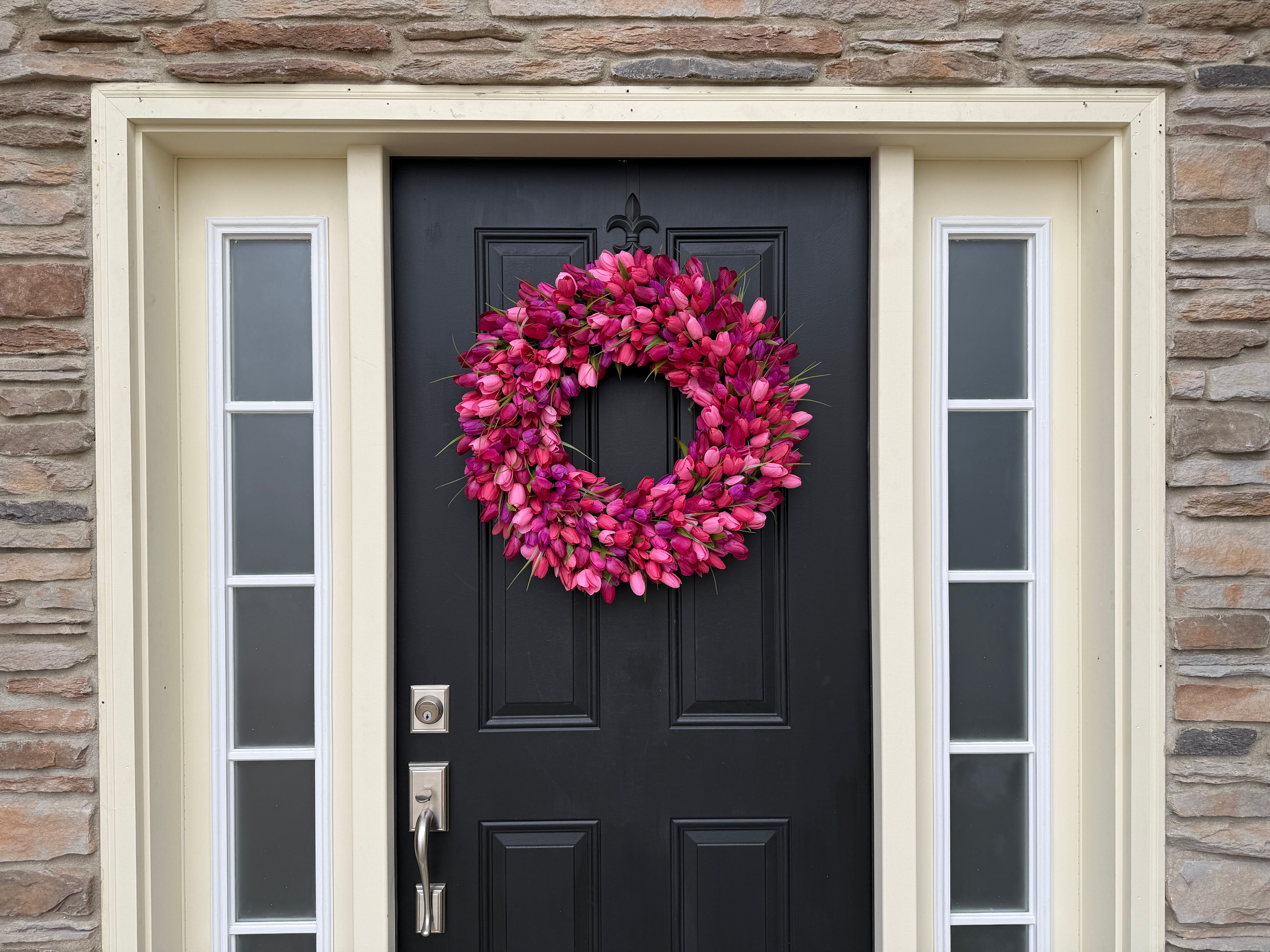 Brighten your home with the Pink and Purple Tulip Wreath. This stunning spring door wreath features vibrant pink and purple tulips, bringing a fresh, colorful touch to your front door. Perfect for welcoming the season, it combines bold, beautiful blooms with greenery to create a cheerful, nature-inspired decor piece. Ideal for spring celebrations, Easter, or Mother's Day, this wreath adds elegance and charm to both indoor and outdoor spaces. Durable and eye-catching, it’s the perfect way to celebrate the beauty of spring and add a welcoming vibe to your home.