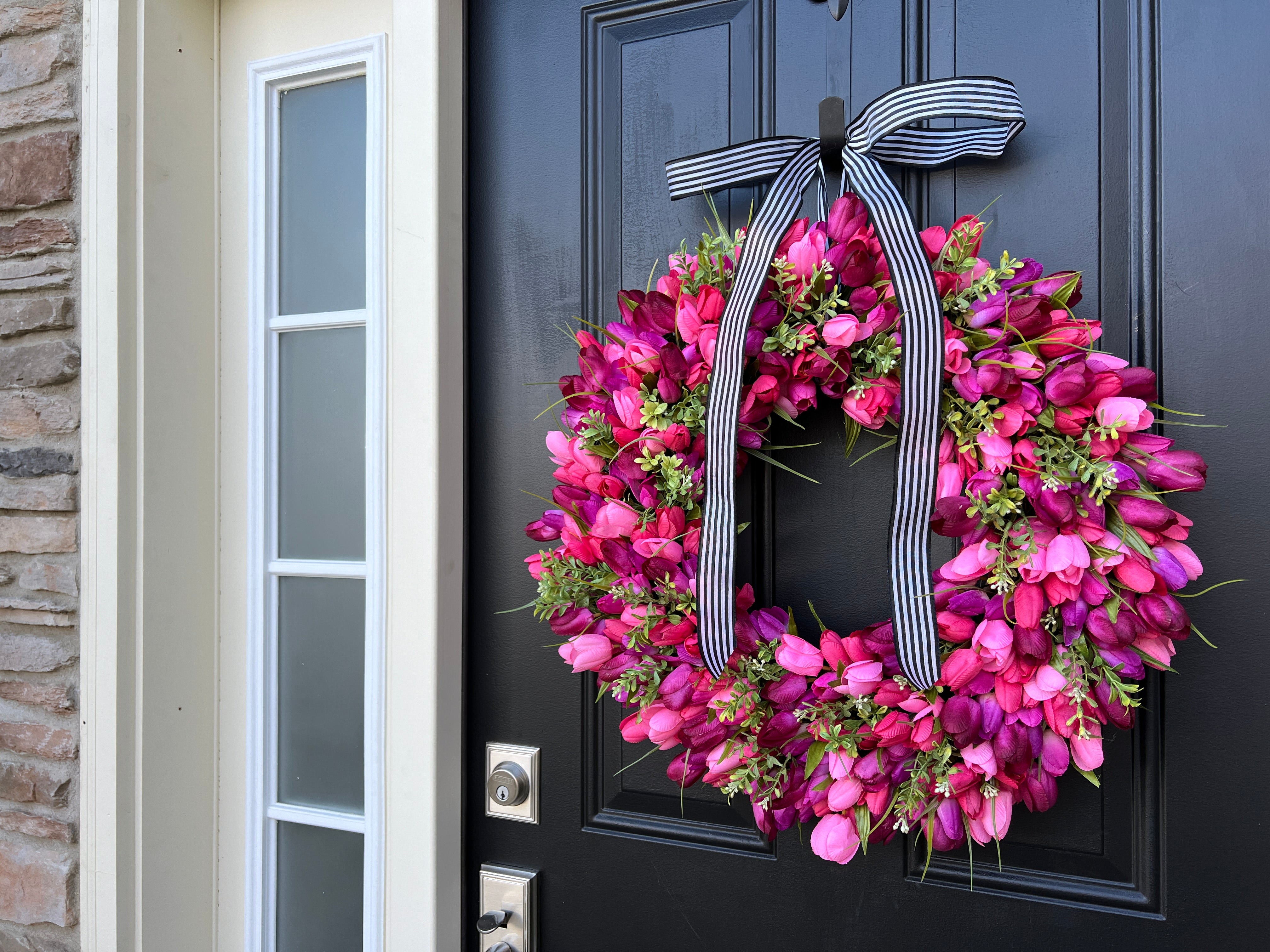 Welcome the beauty of spring with our Poppy Pink Tulip Wreath, designed to brighten your front door with vibrant hues and natural elegance. Featuring stunning faux poppy pink tulips paired with lush boxwood greenery, this wreath creates a new, inviting look for your home. Perfect for spring decor, it’s ideal for front doors, porches, or as a cheerful indoor accent.